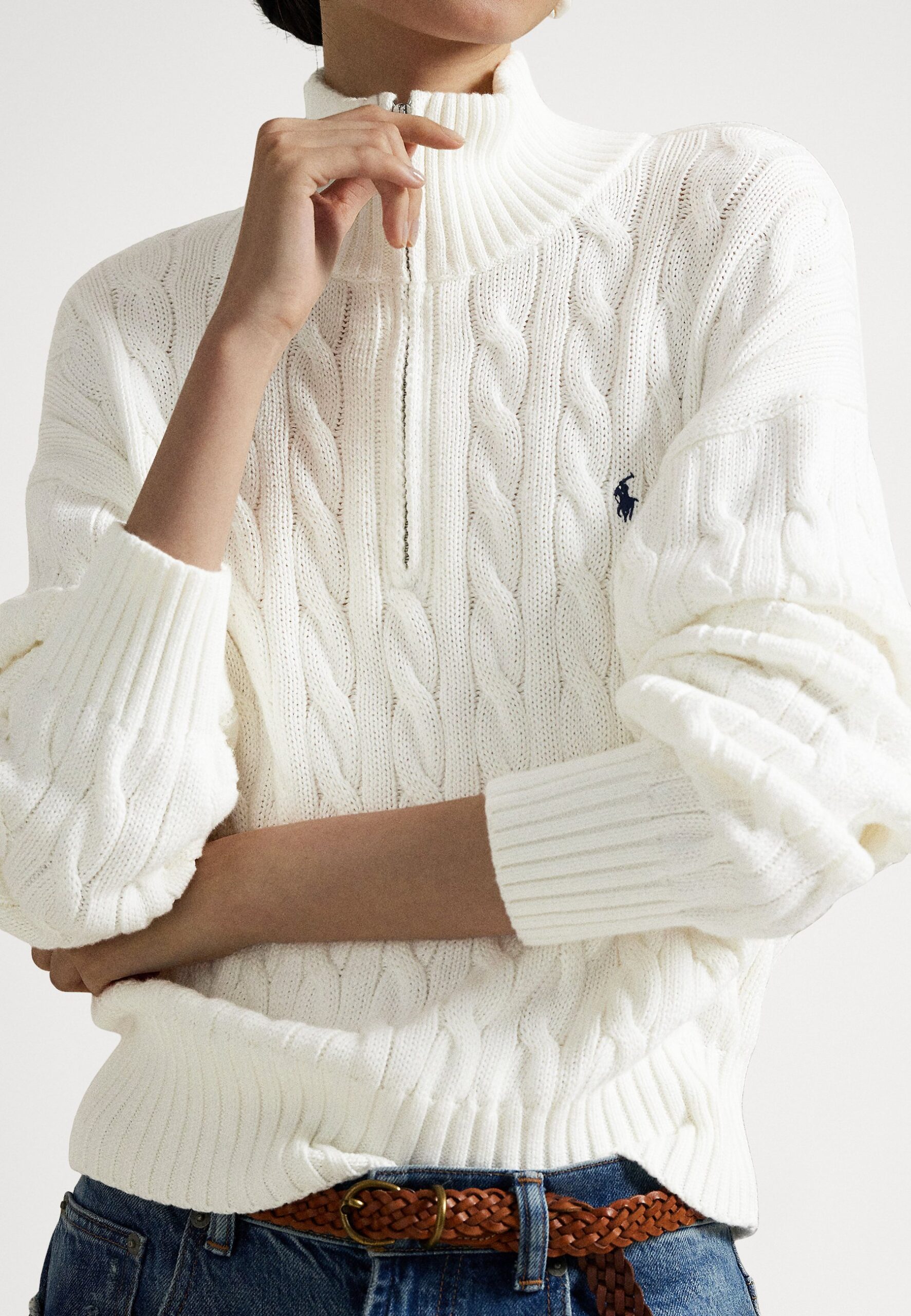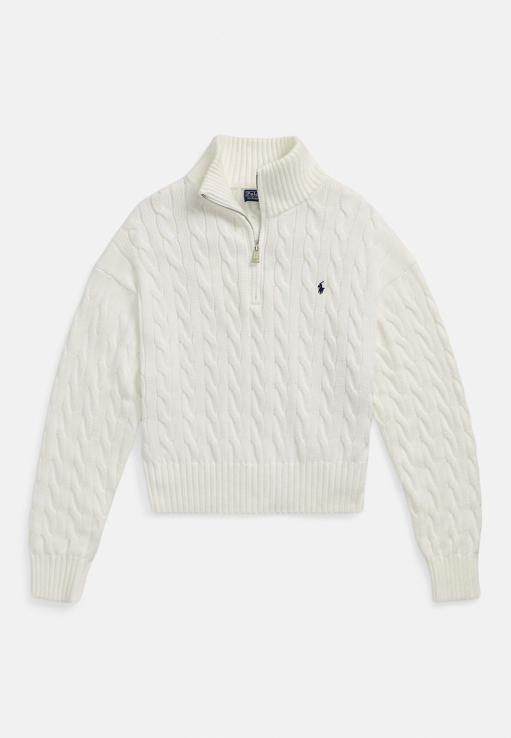 CABLE-KNIT COTTON QUARTER-ZIP SWEATER – Jumper – white