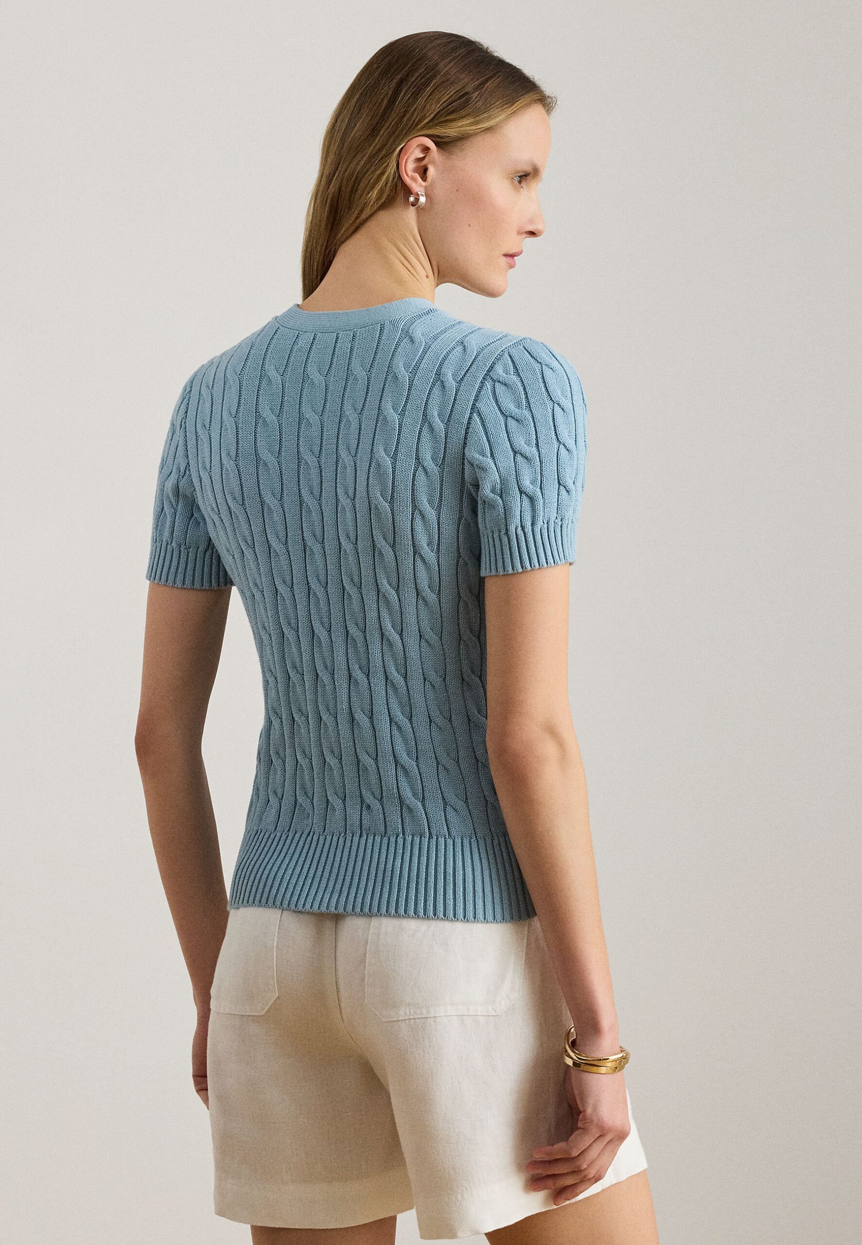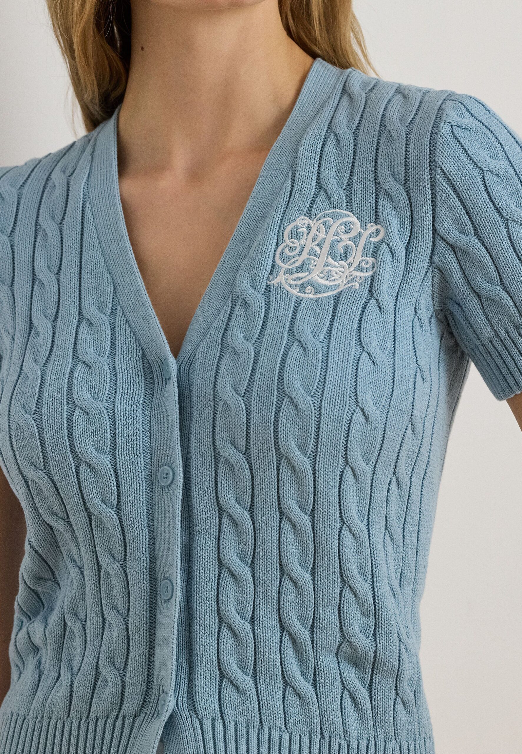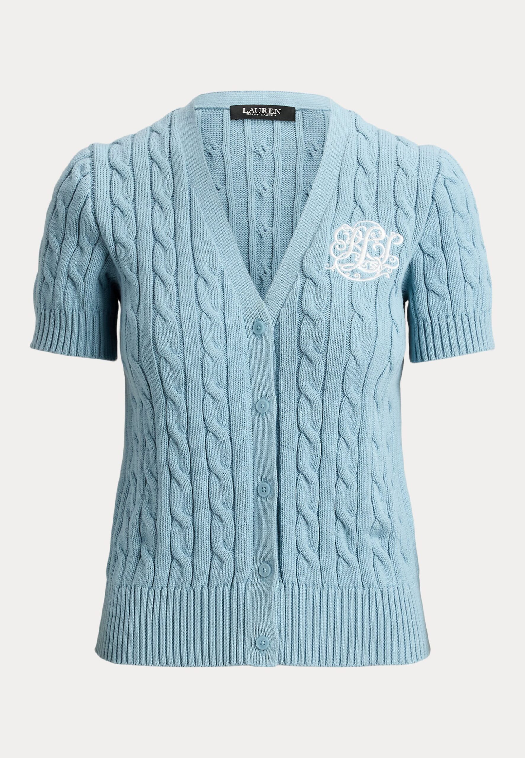 CABLE-KNIT COTTON SHORT-SLEEVE CARDIGAN – Cardigan – blue note