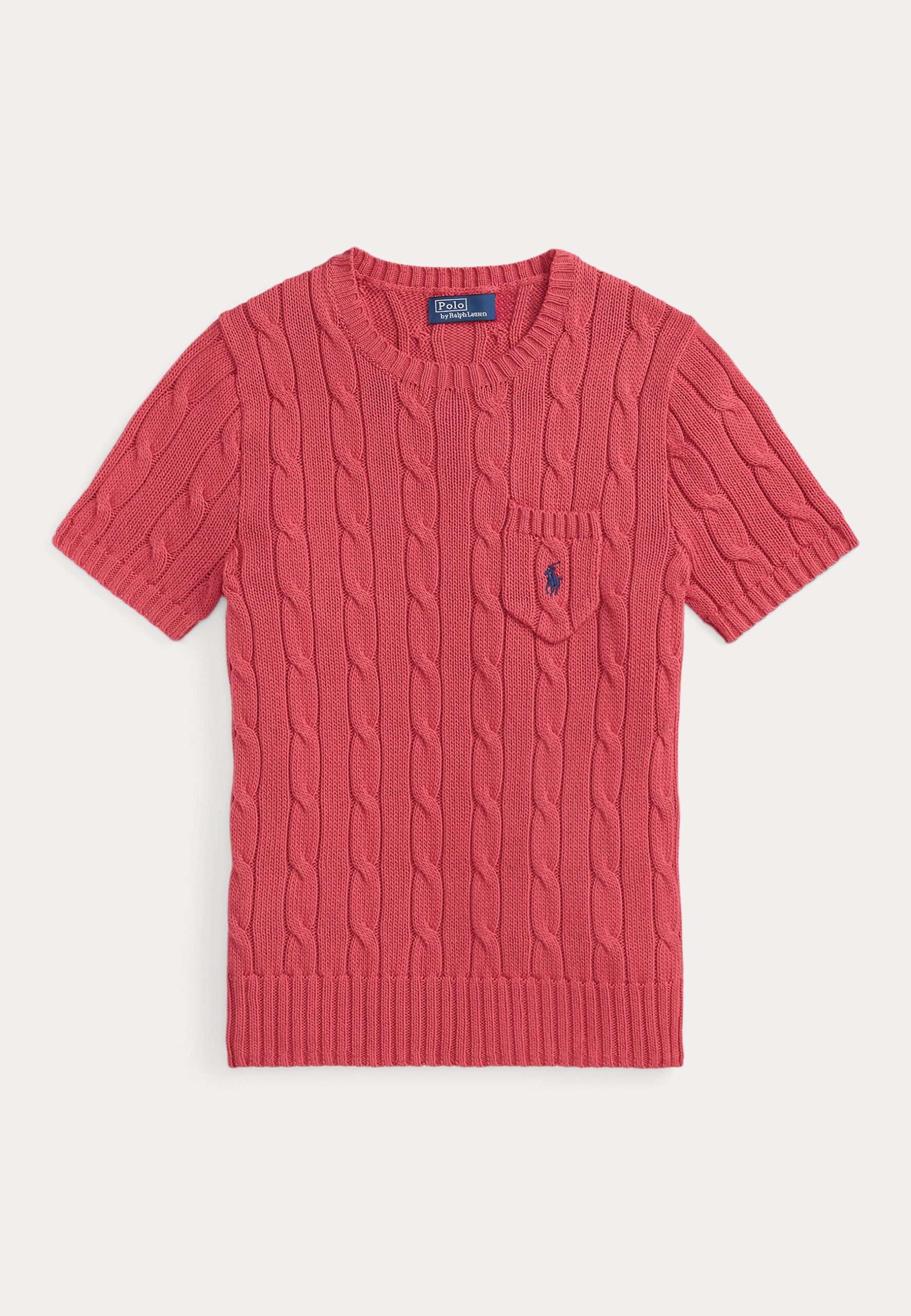 CABLE-KNIT COTTON SHORT-SLEEVE SWEATER – Basic T-shirt – nantucket red