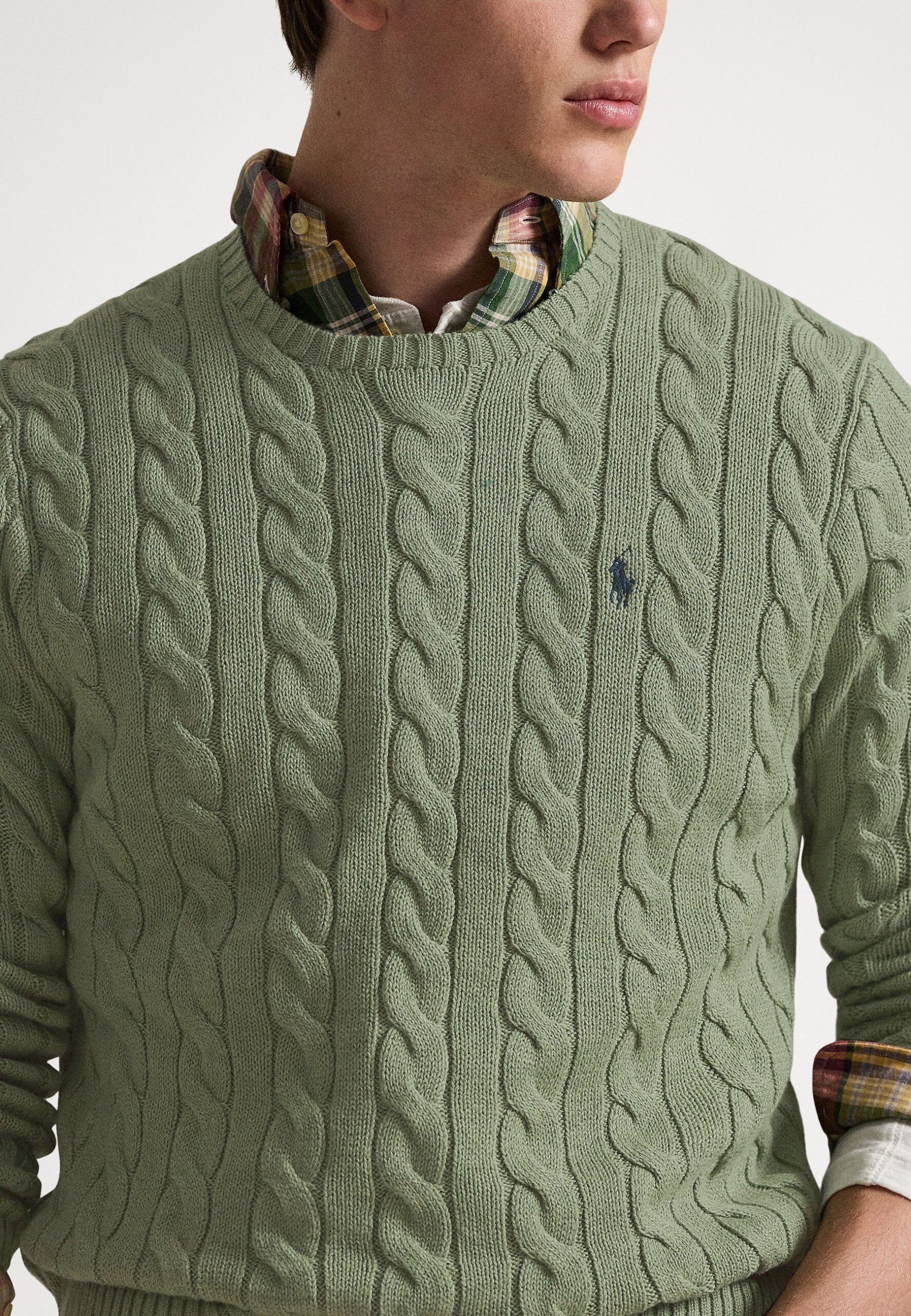 CABLE-KNIT COTTON SWEATER – Jumper – fern green heather