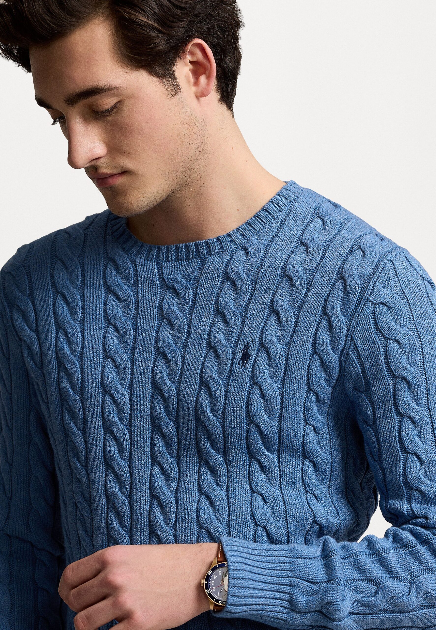 CABLE KNIT COTTON SWEATER – Jumper – lake heather