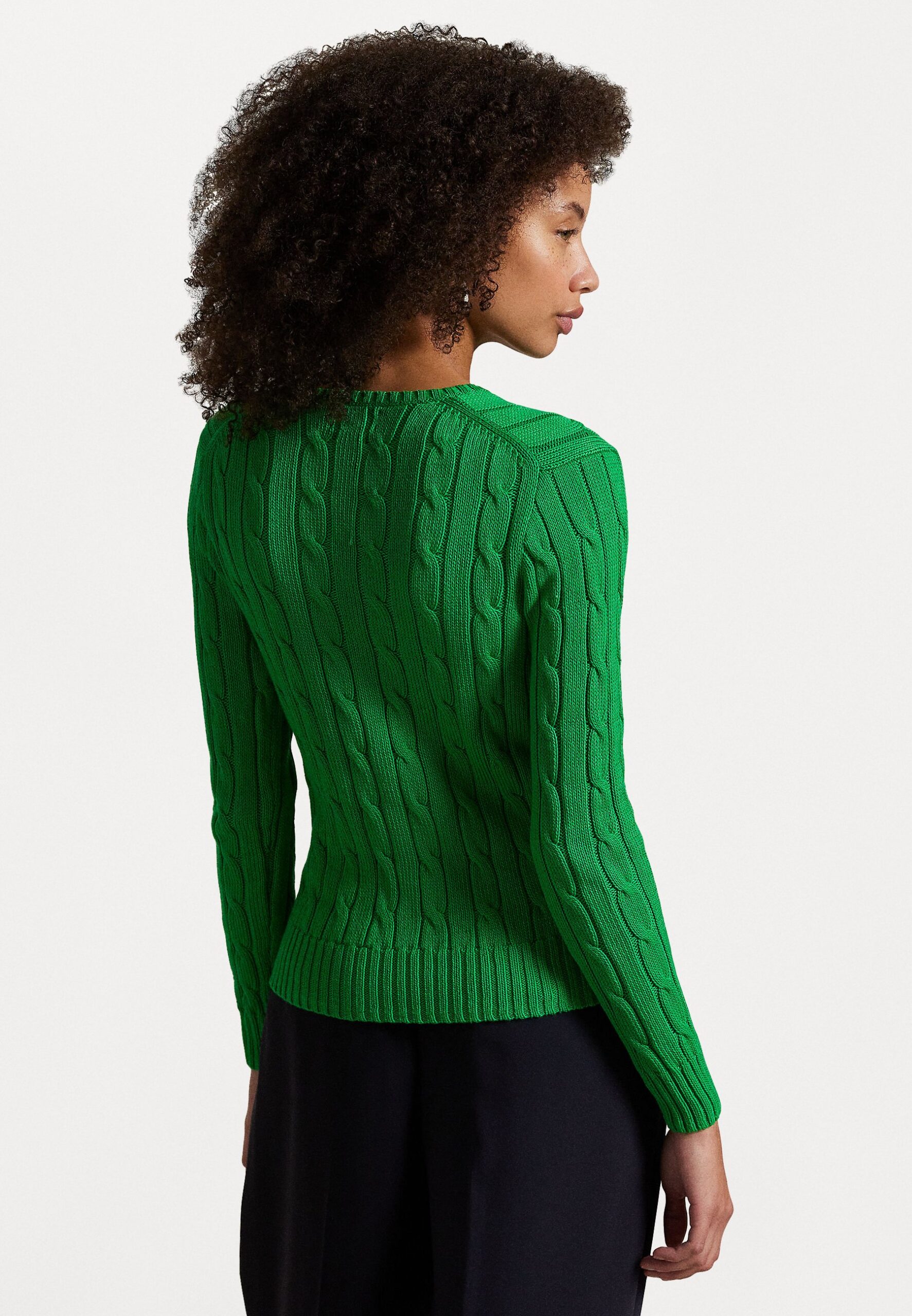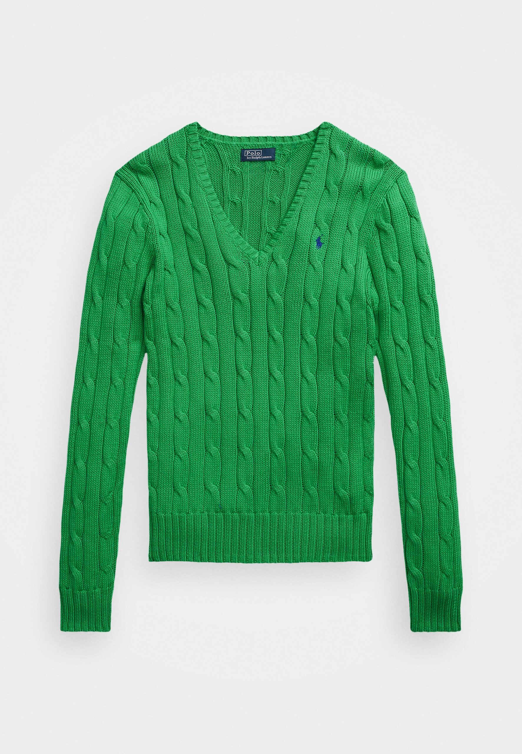 CABLE-KNIT COTTON V-NECK SWEATER – Jumper – preppy green