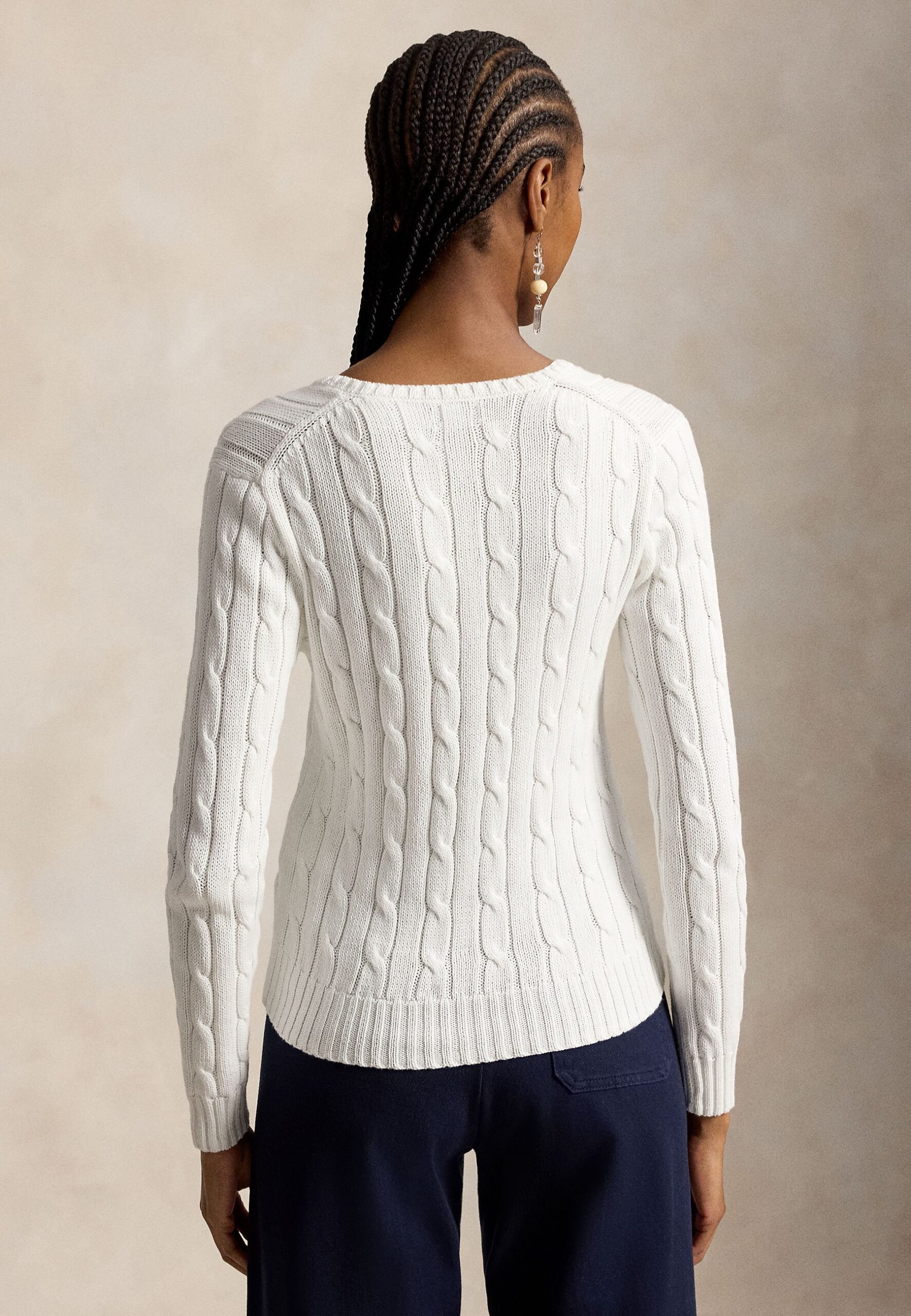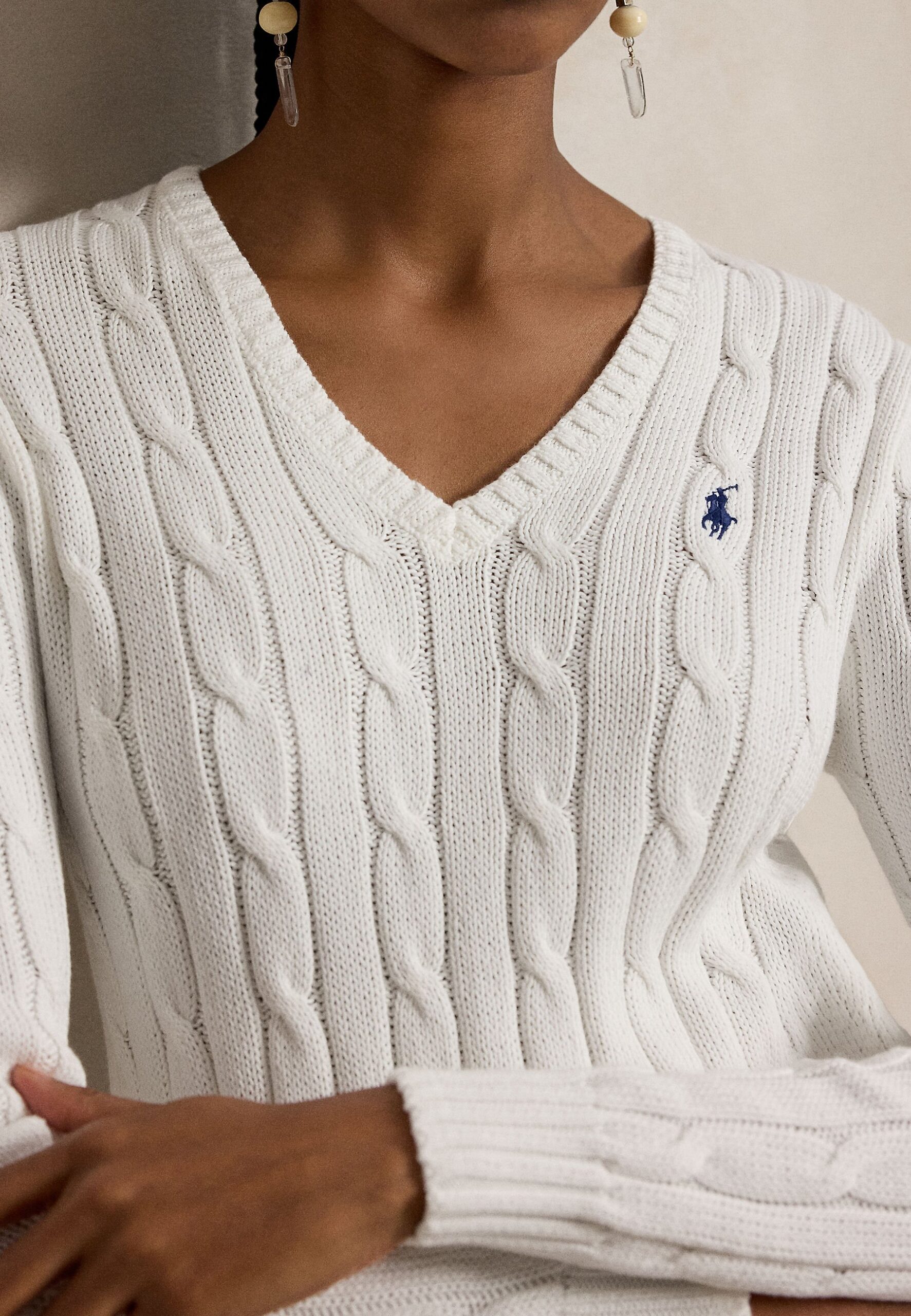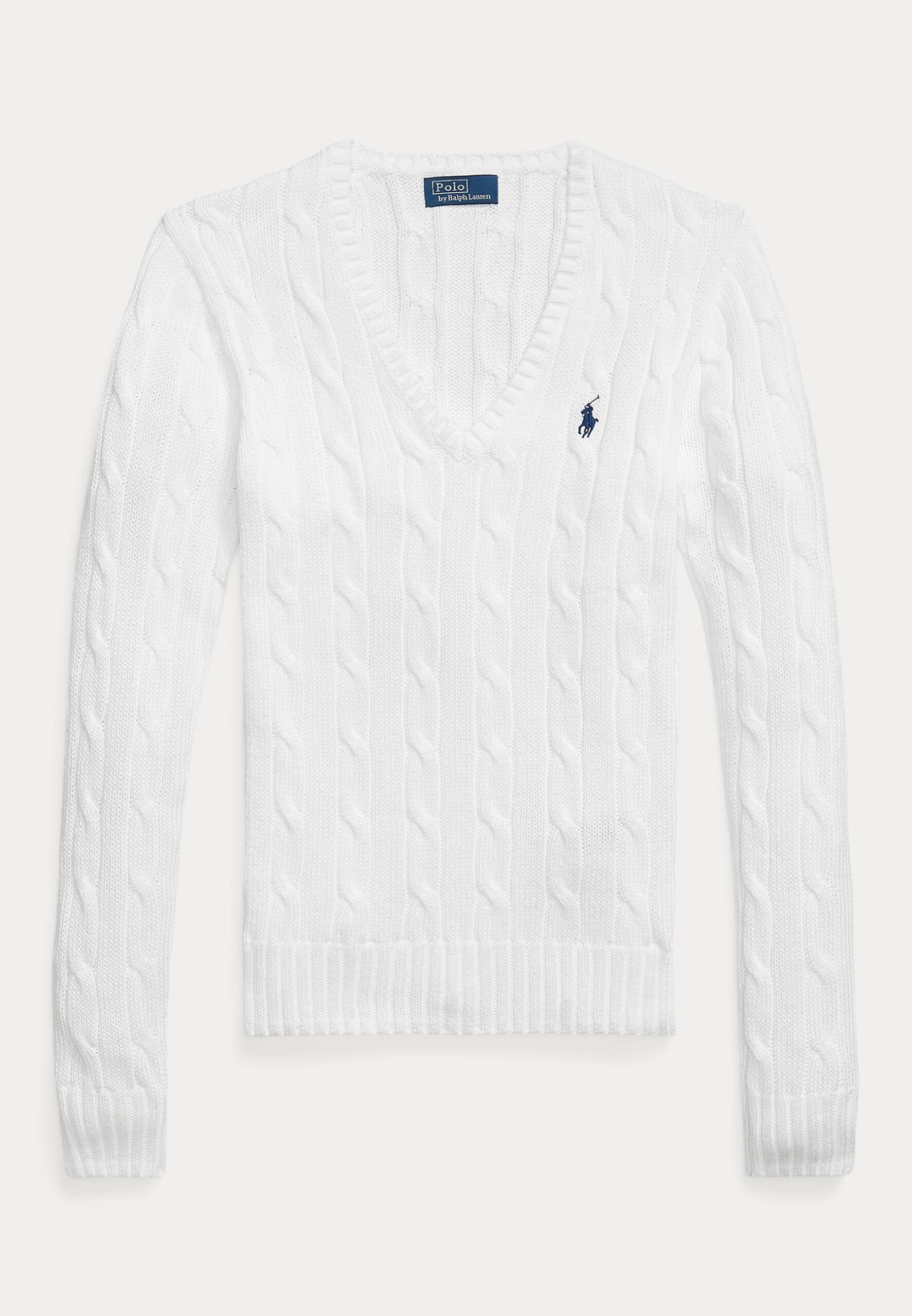 CABLE-KNIT COTTON V-NECK SWEATER – Jumper – white