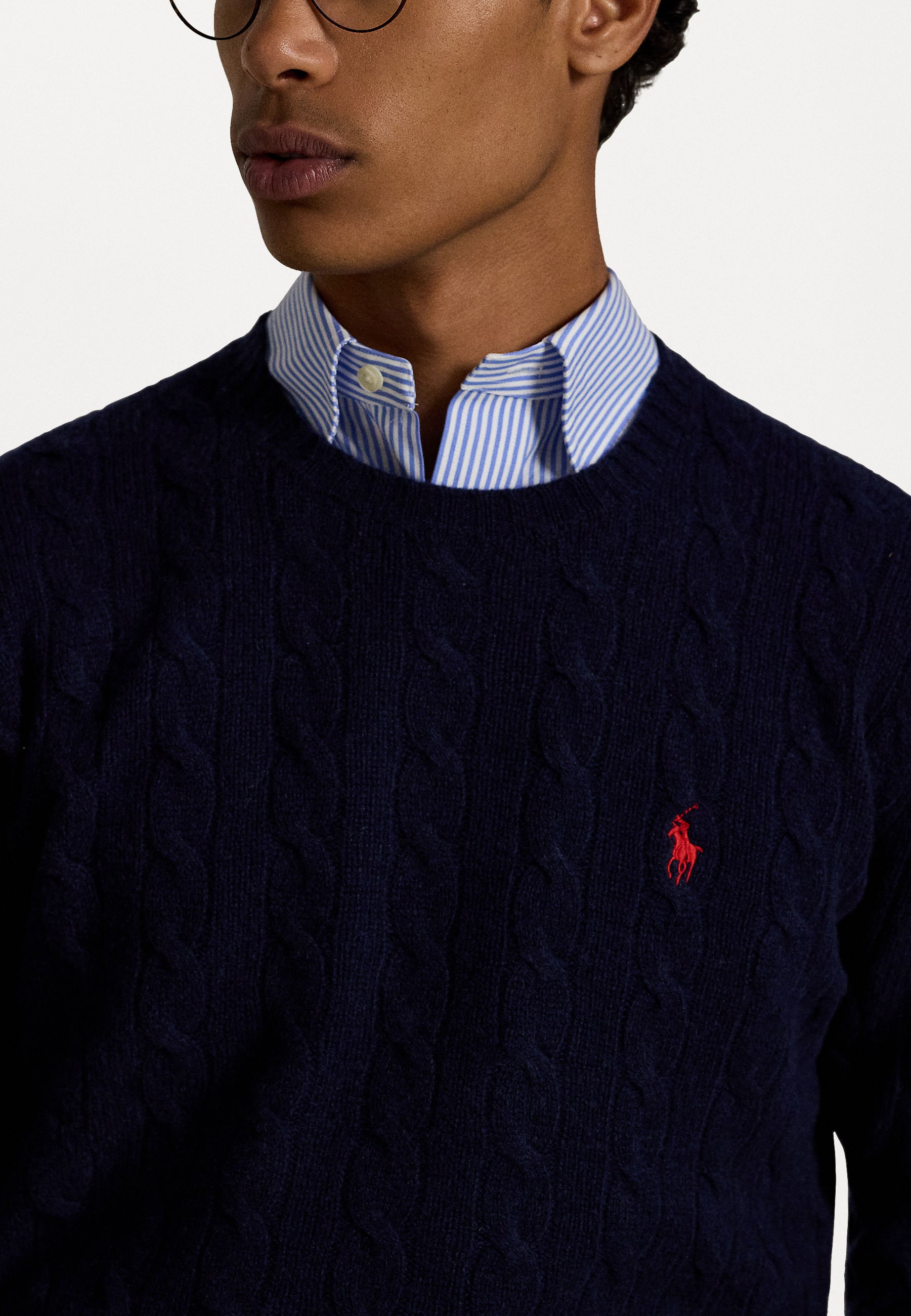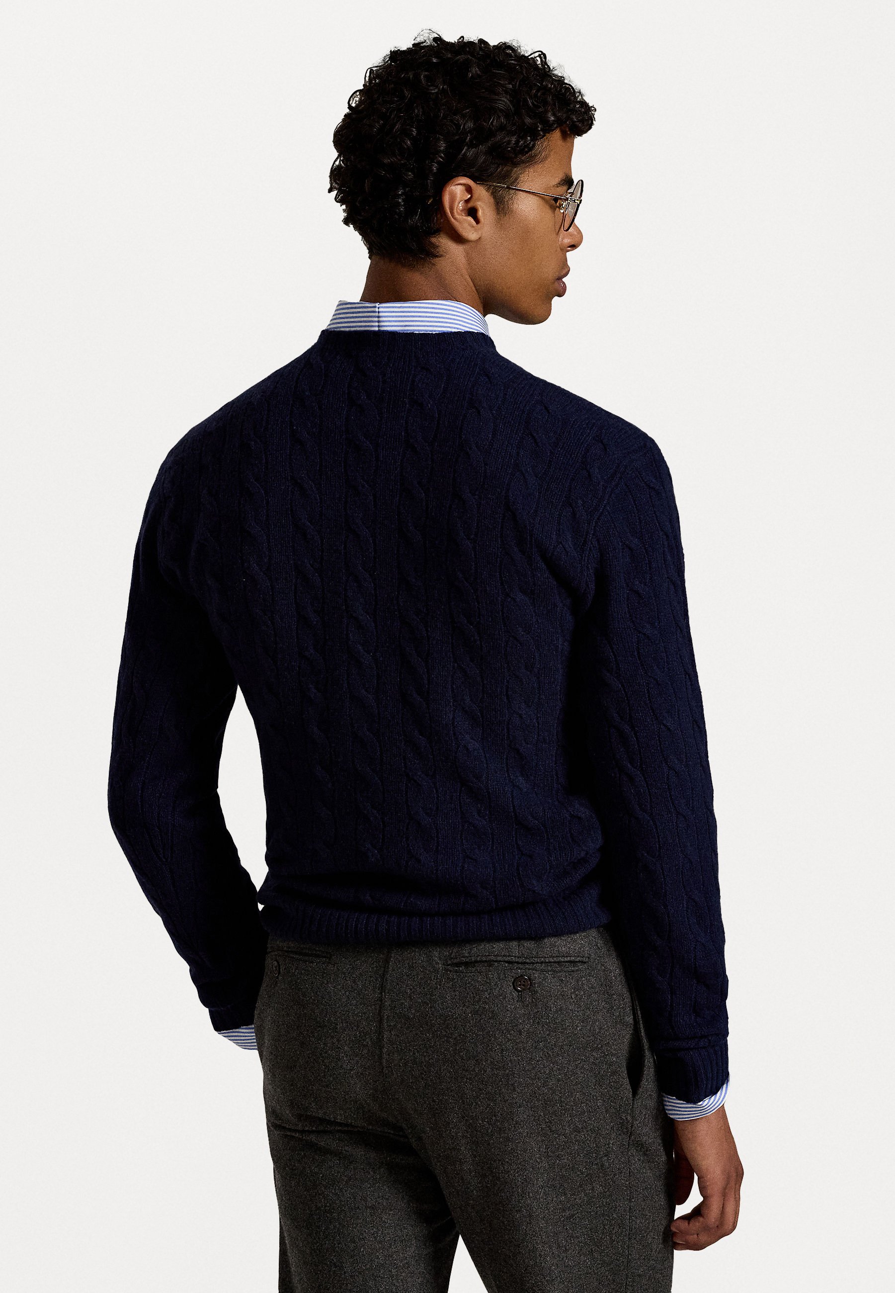CABLE KNIT WOOL CASHMERE JUMPER – Jumper – hunter navy