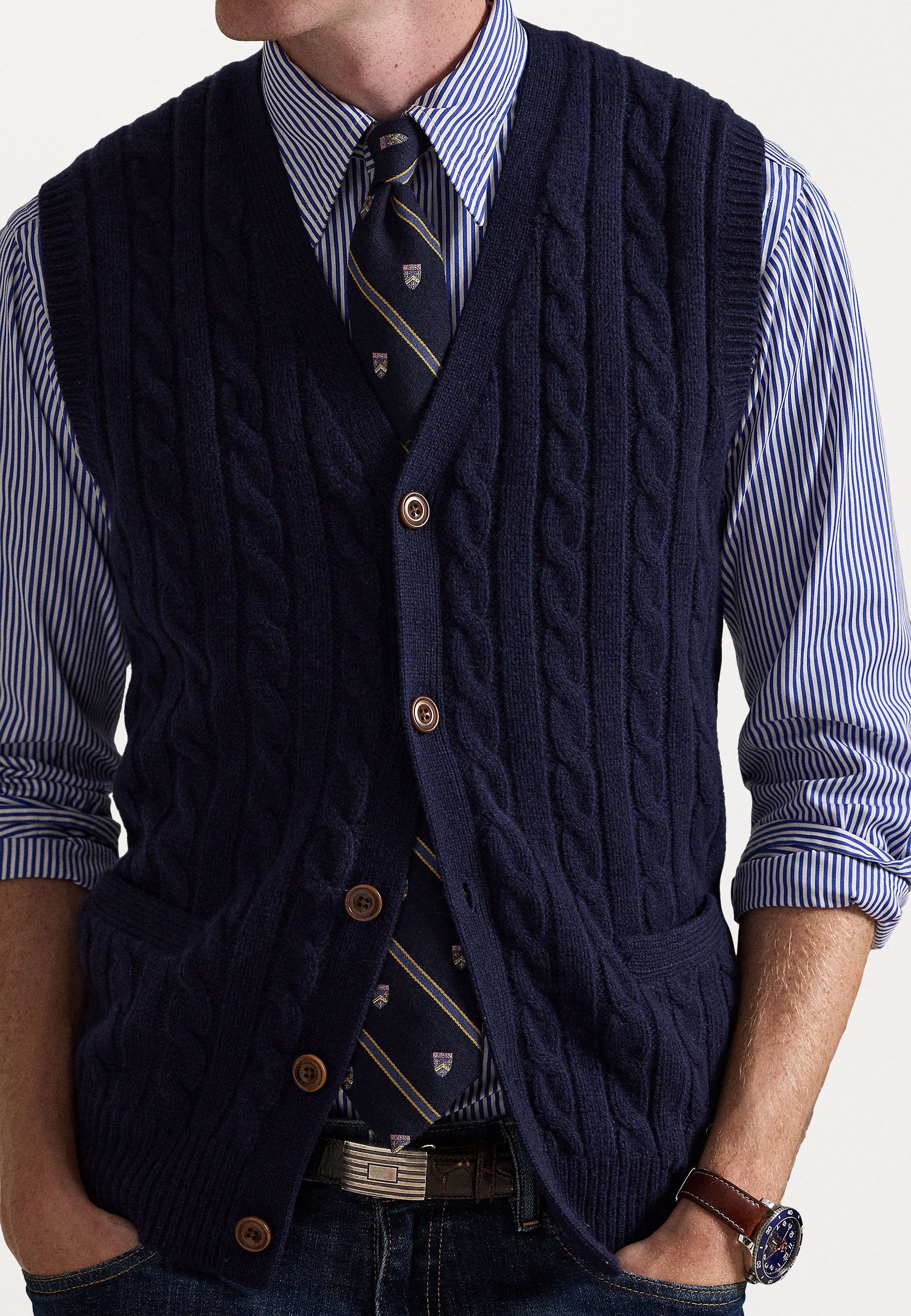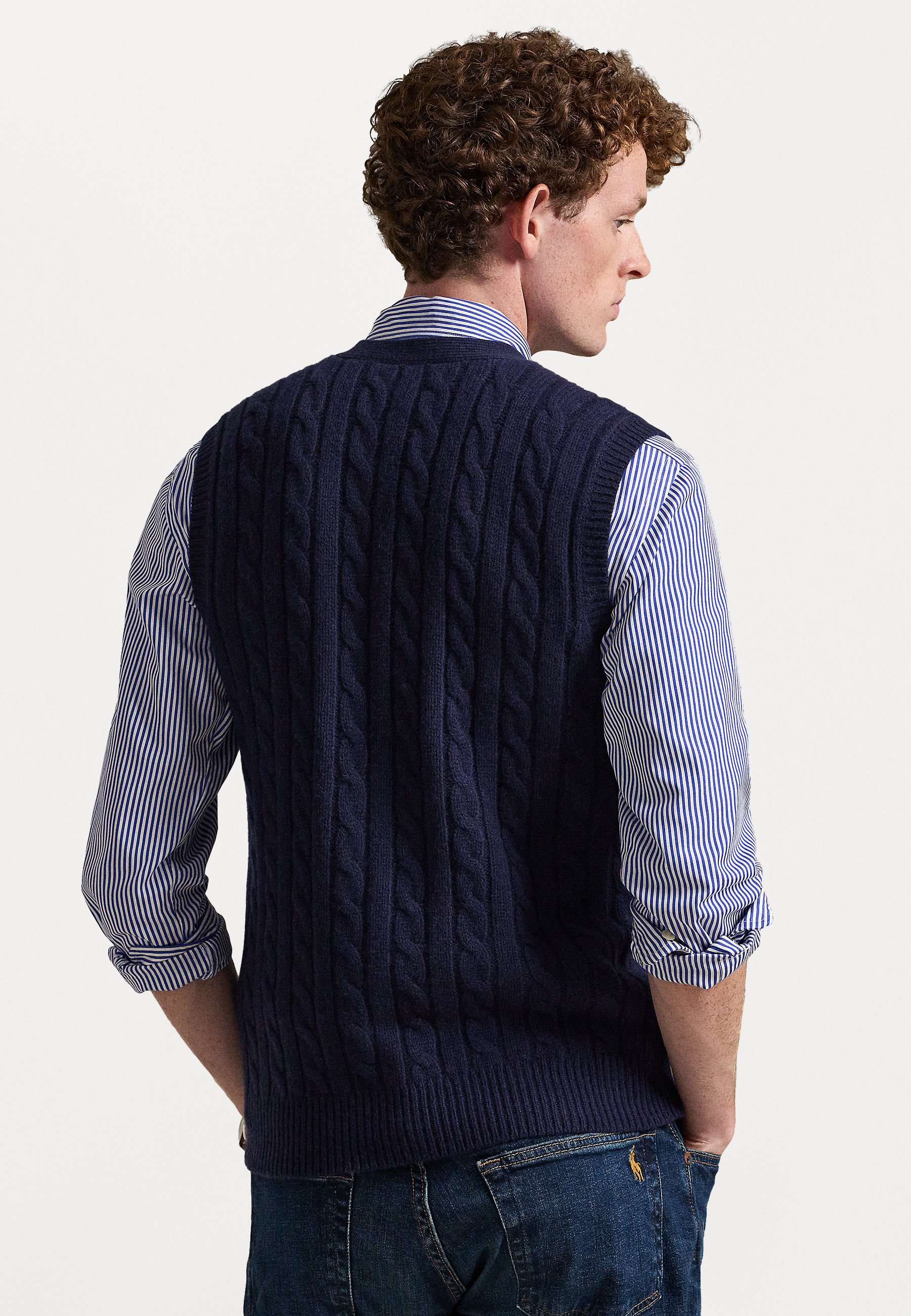 CABLE KNIT WOOL CASHMERE SWEATER VEST – Waistcoat – hunter navy