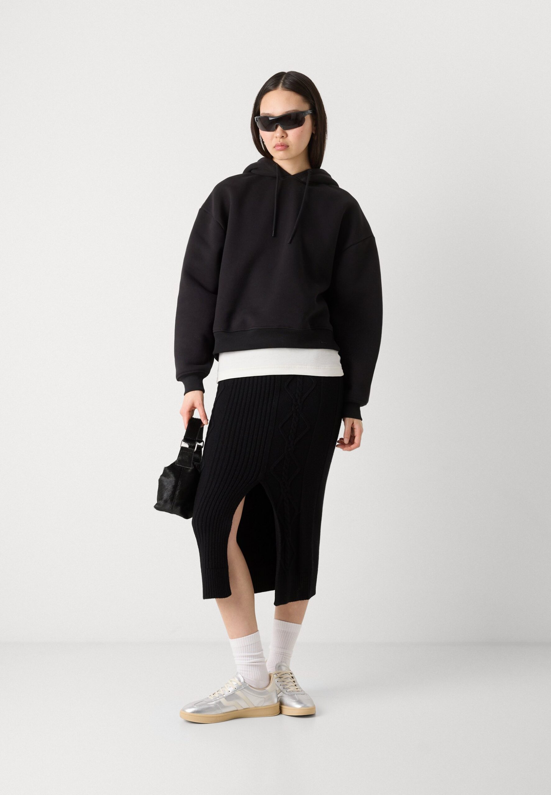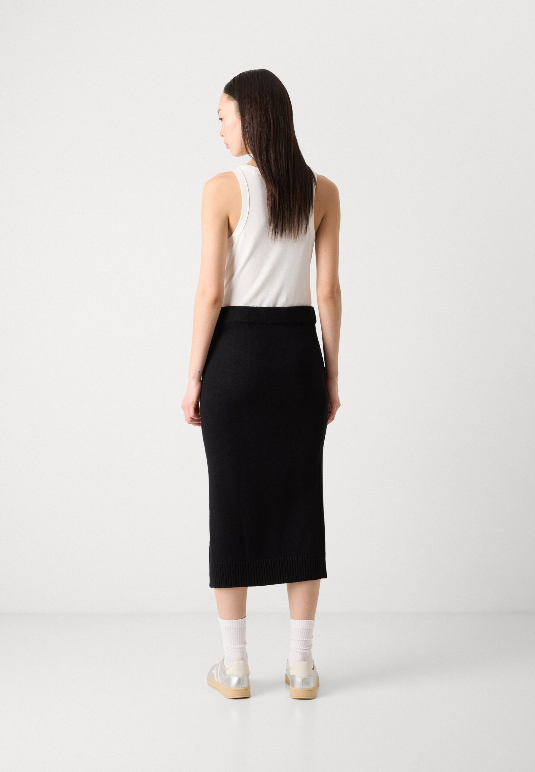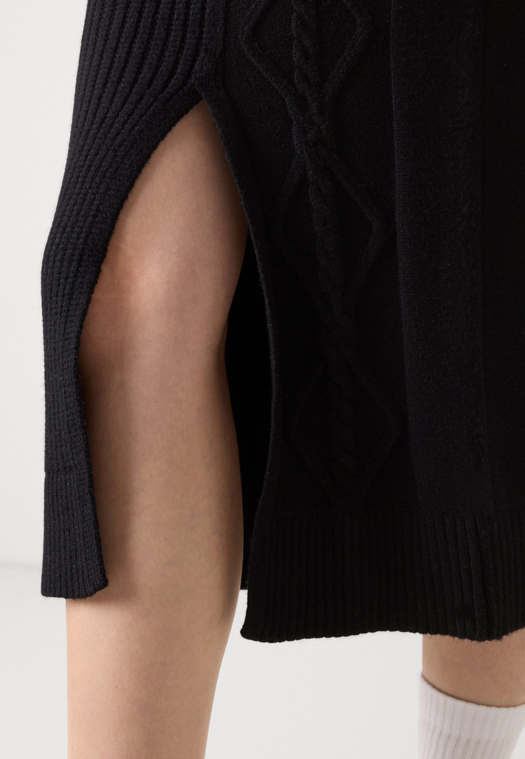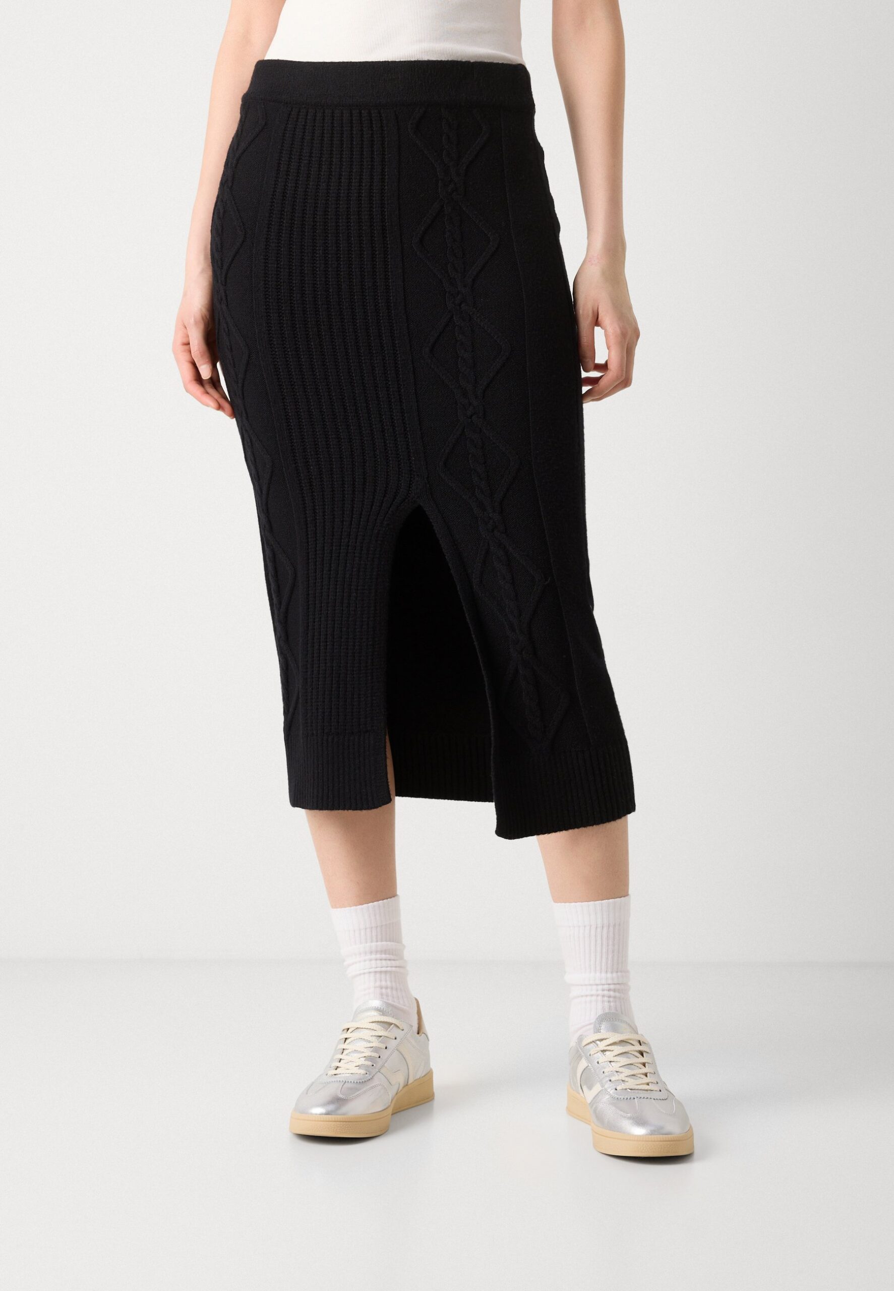 CABLE MIDI SKIRT WITH VENT AT FRONT BODY – Pencil skirt – black