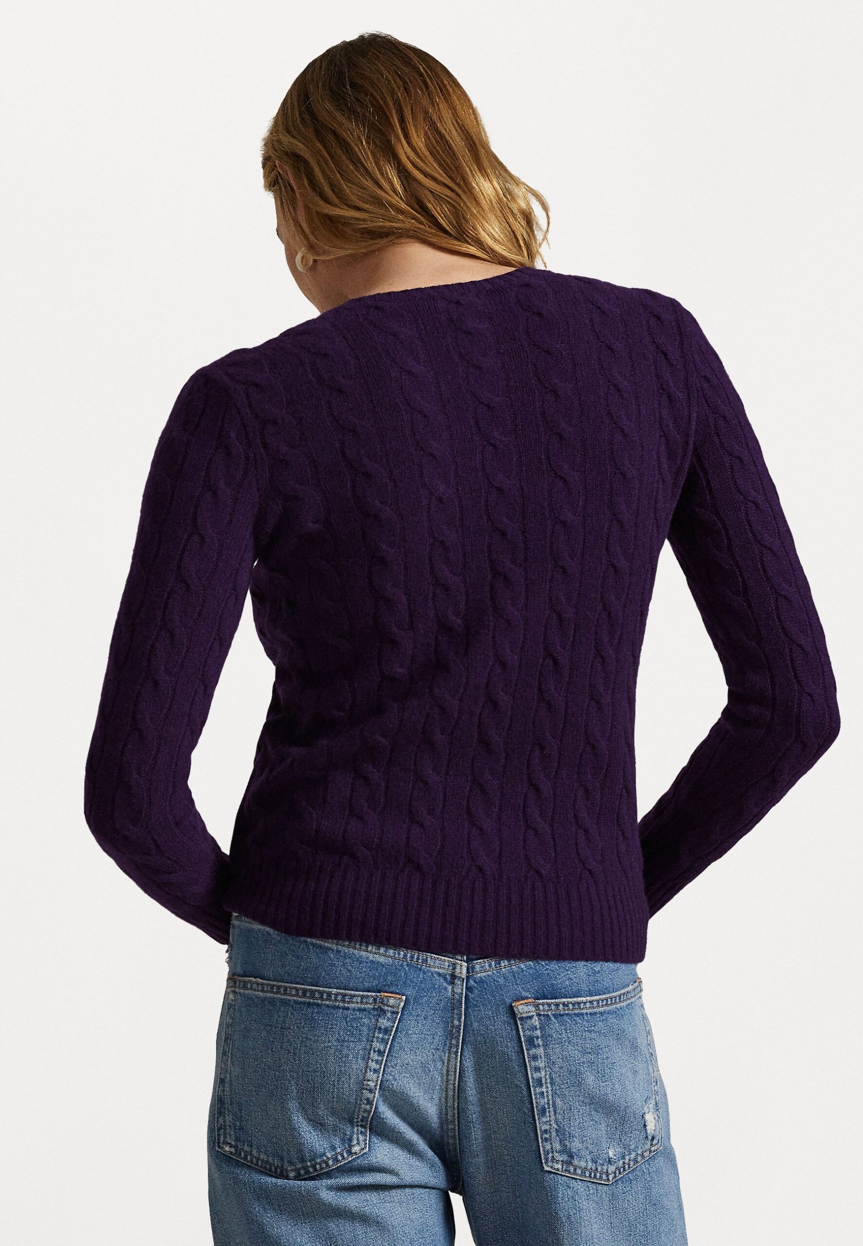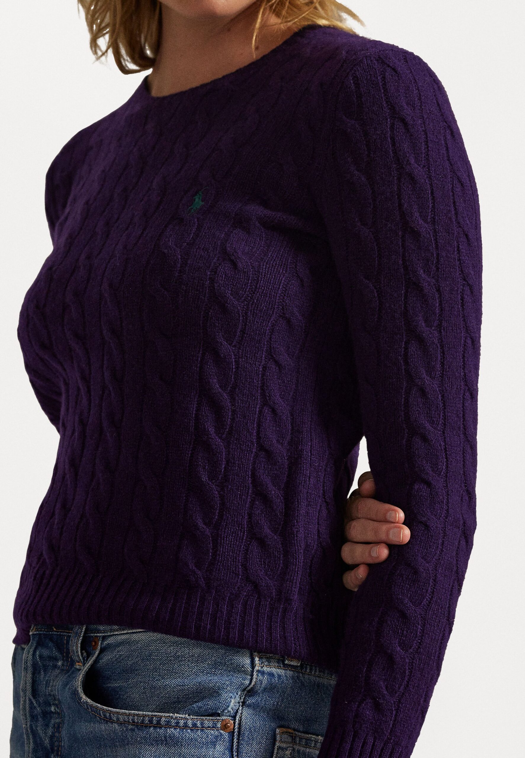 CABLE WOOL CASHMERE CREWNECK JUMPER – Jumper – midnight purple