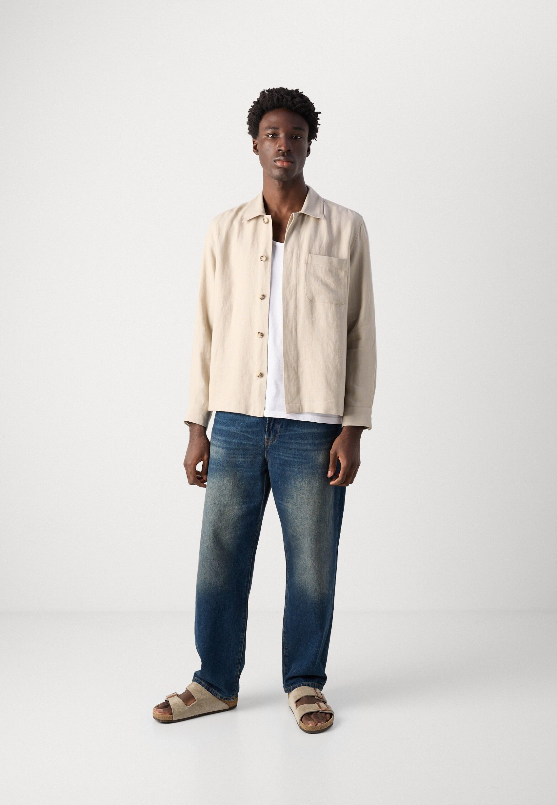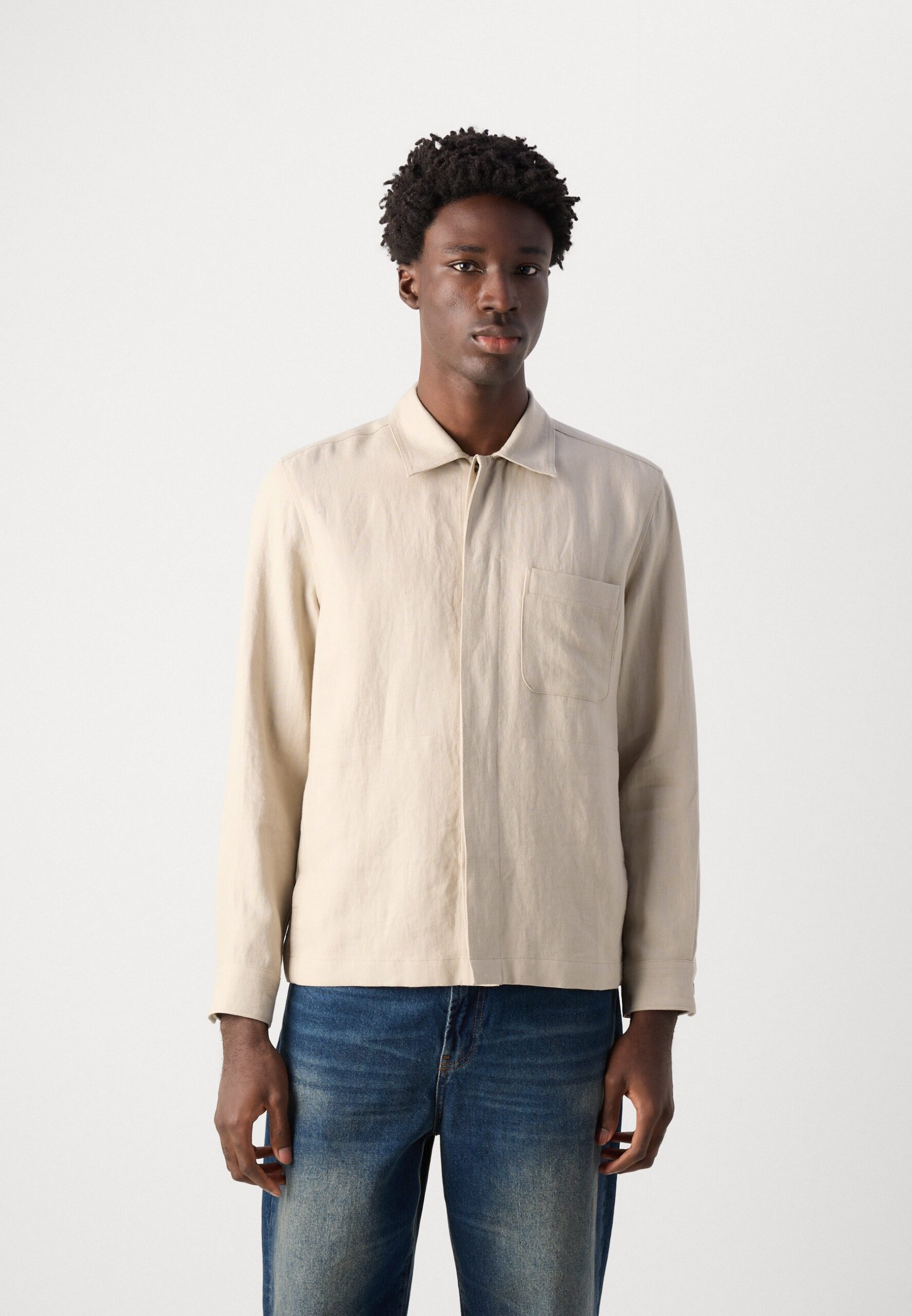 CAMP COLLAR OVERSHIRT ONE CHEST AND SIDESEAM POCKET STRAIGHT HEM – Light jacket – beige