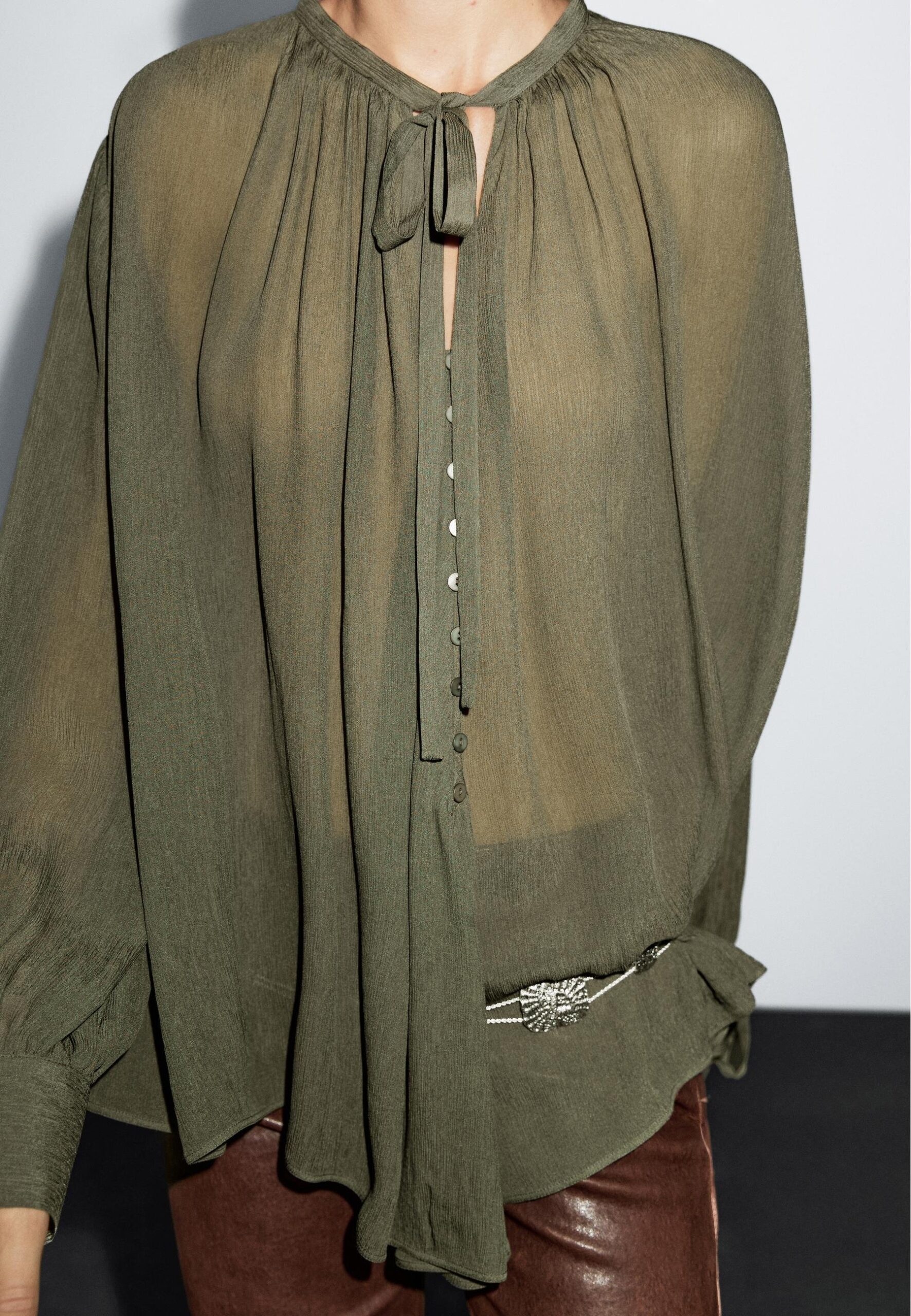 CAPE GARMENT WITH TIES – Blouse – dark green