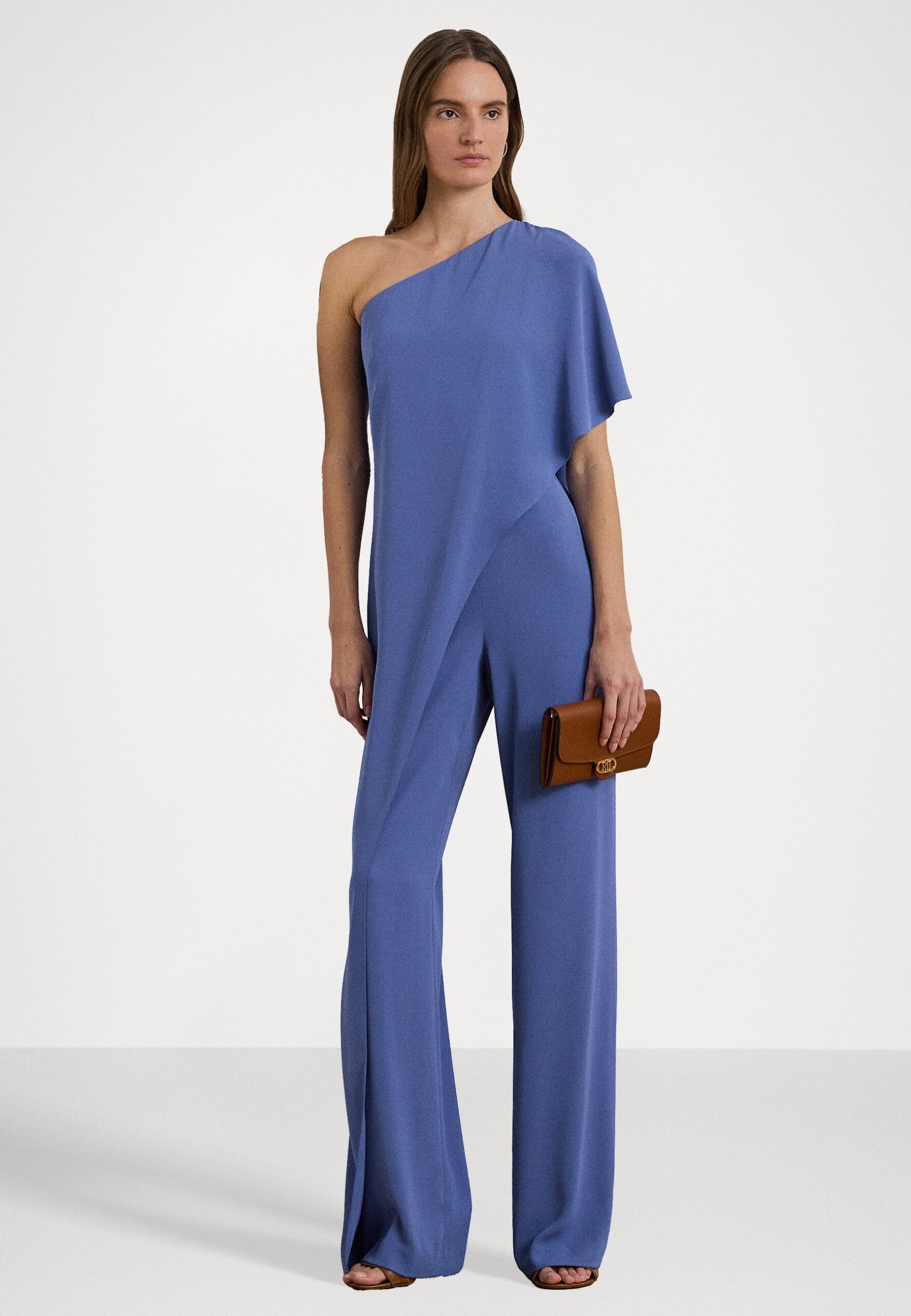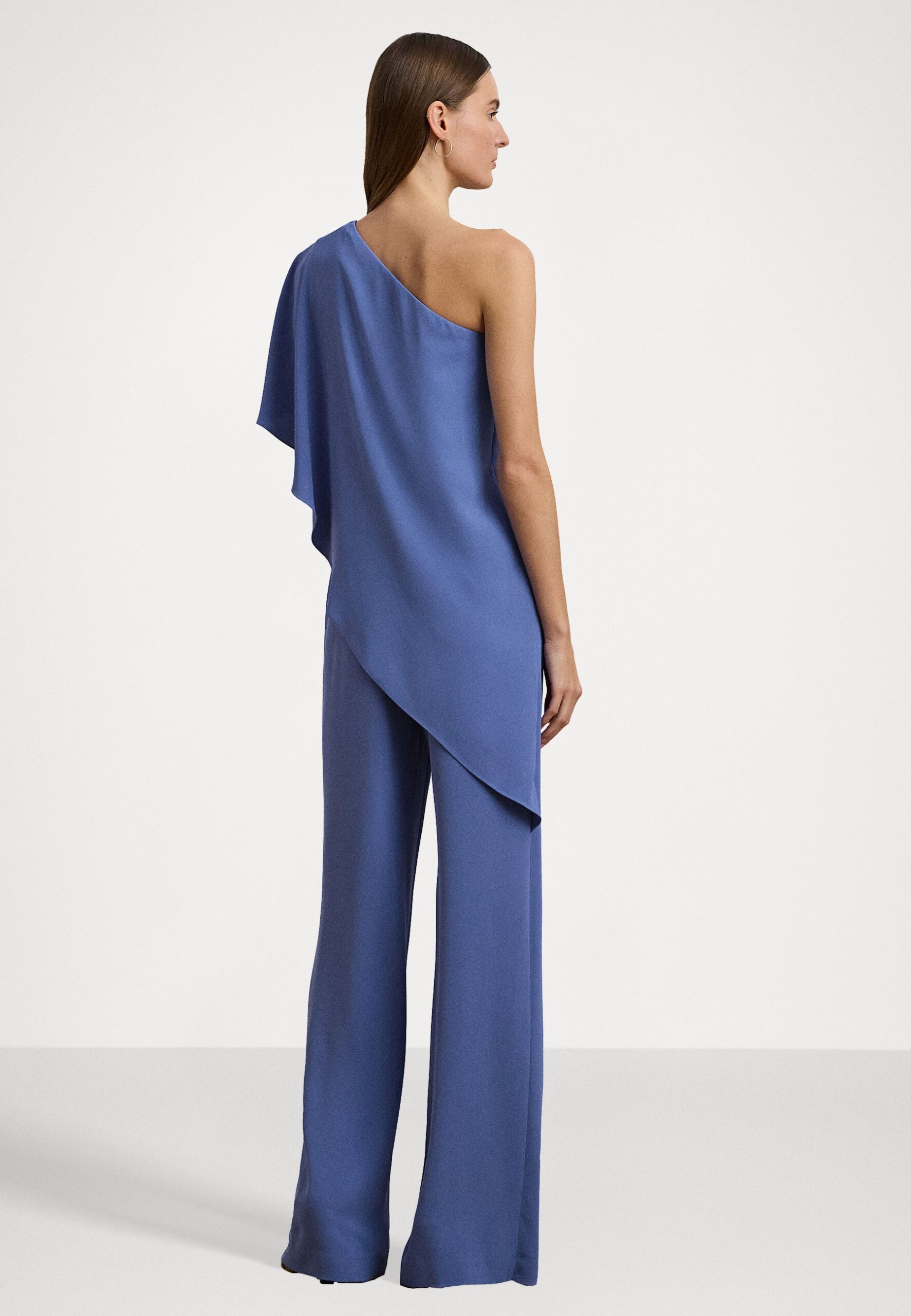 CAPE GEORGETTE ONE-SHOULDER JUMPSUIT – Jumpsuit – soft lazuli