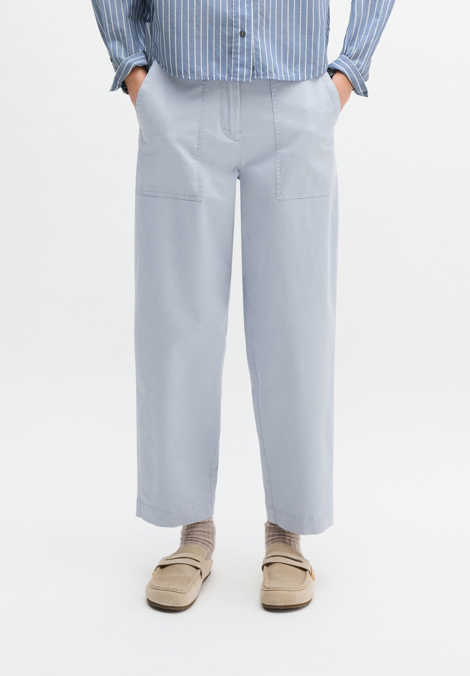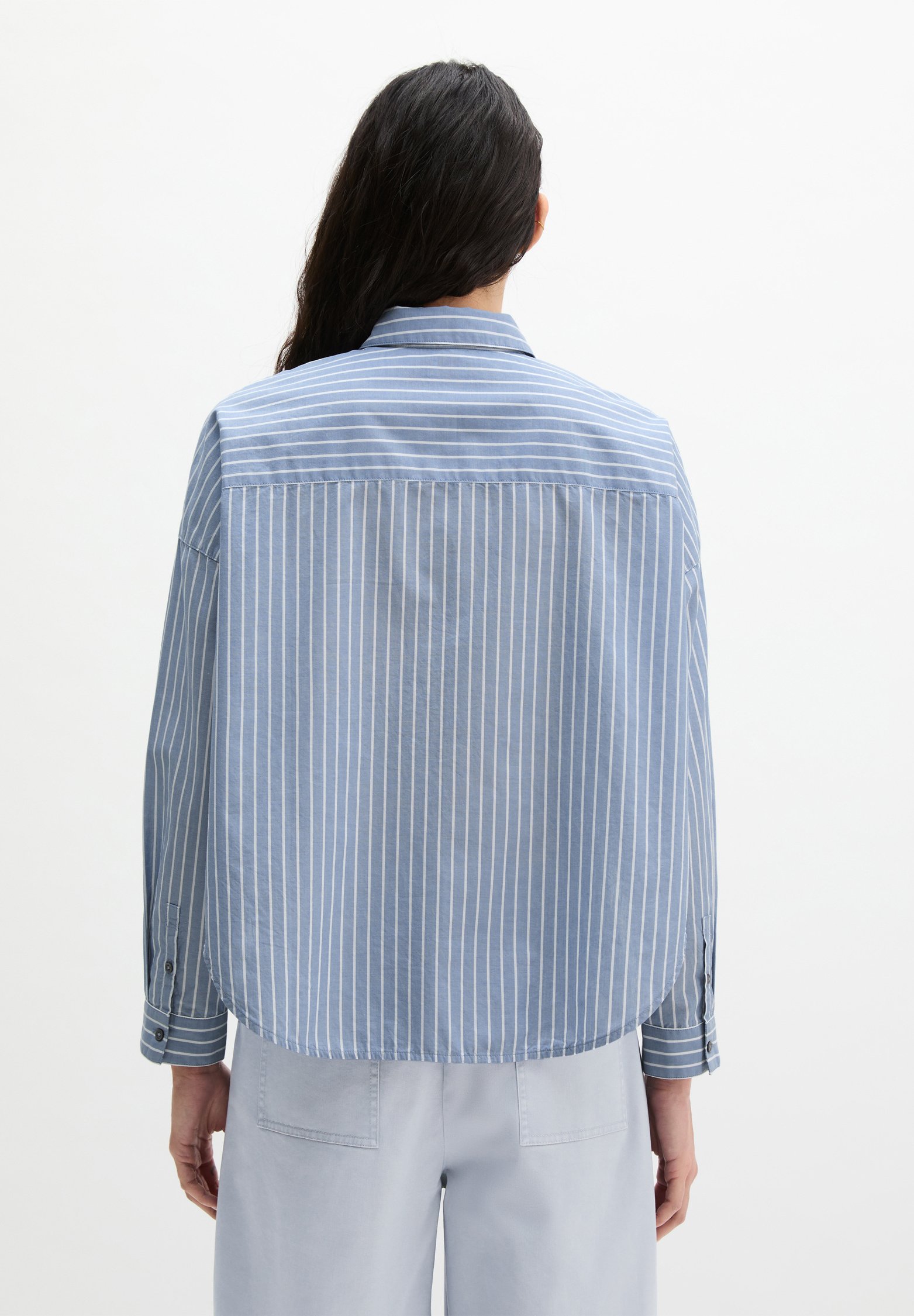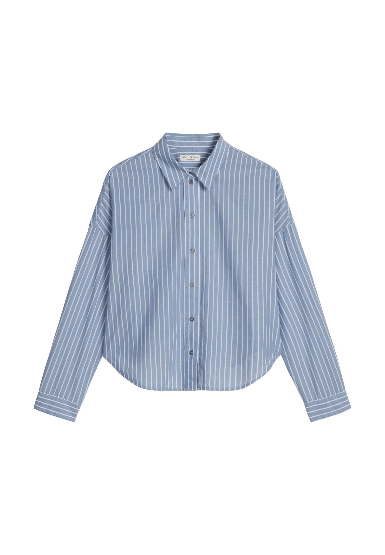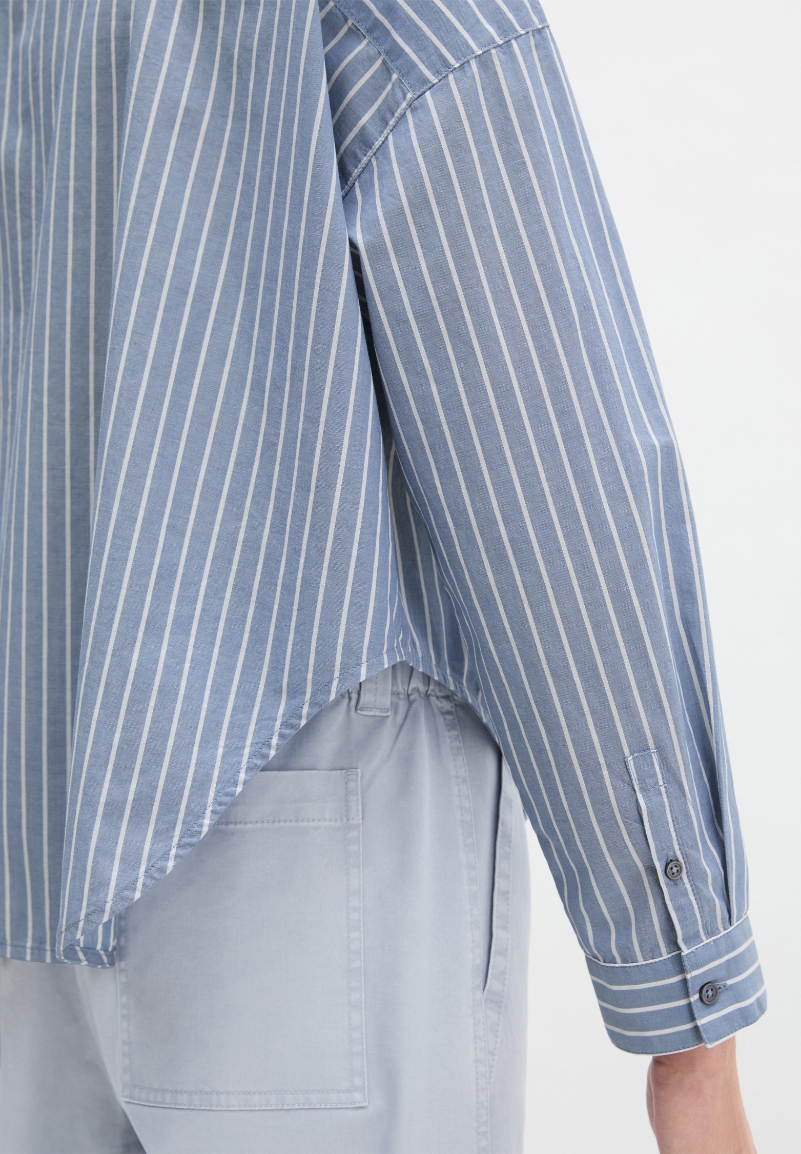 CAPE SHAPE LONG SLEEVE KENT COLLAR STRIPED CHAMBRAY – Button-down blouse – multi/ fall sky