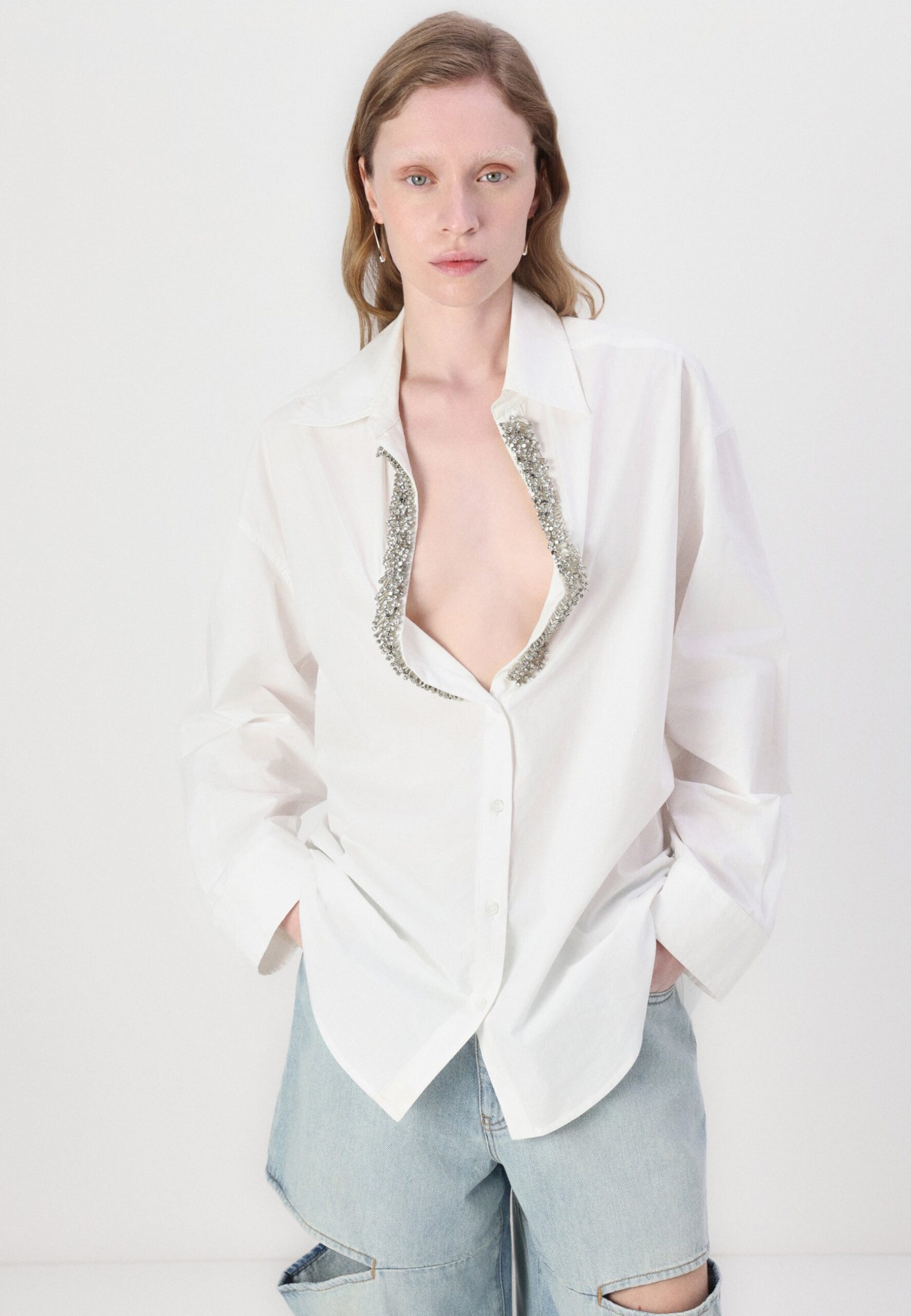 CAPIRAI CON RICAMO A MANO – Button-down blouse – radiant white