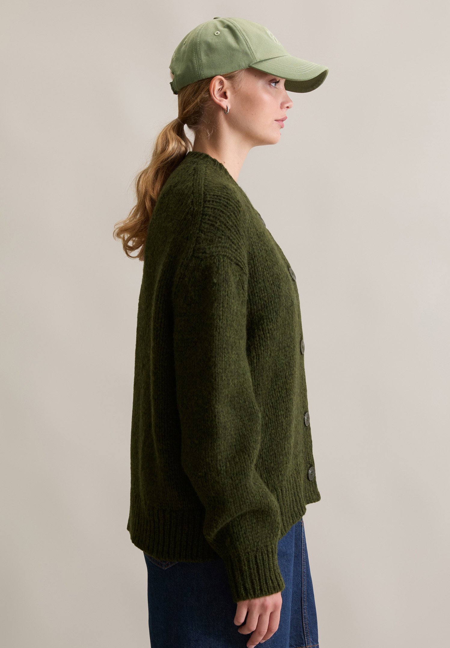CARDIGAN LONG SLEEVE CREW NECK – Cardigan – dark green melange