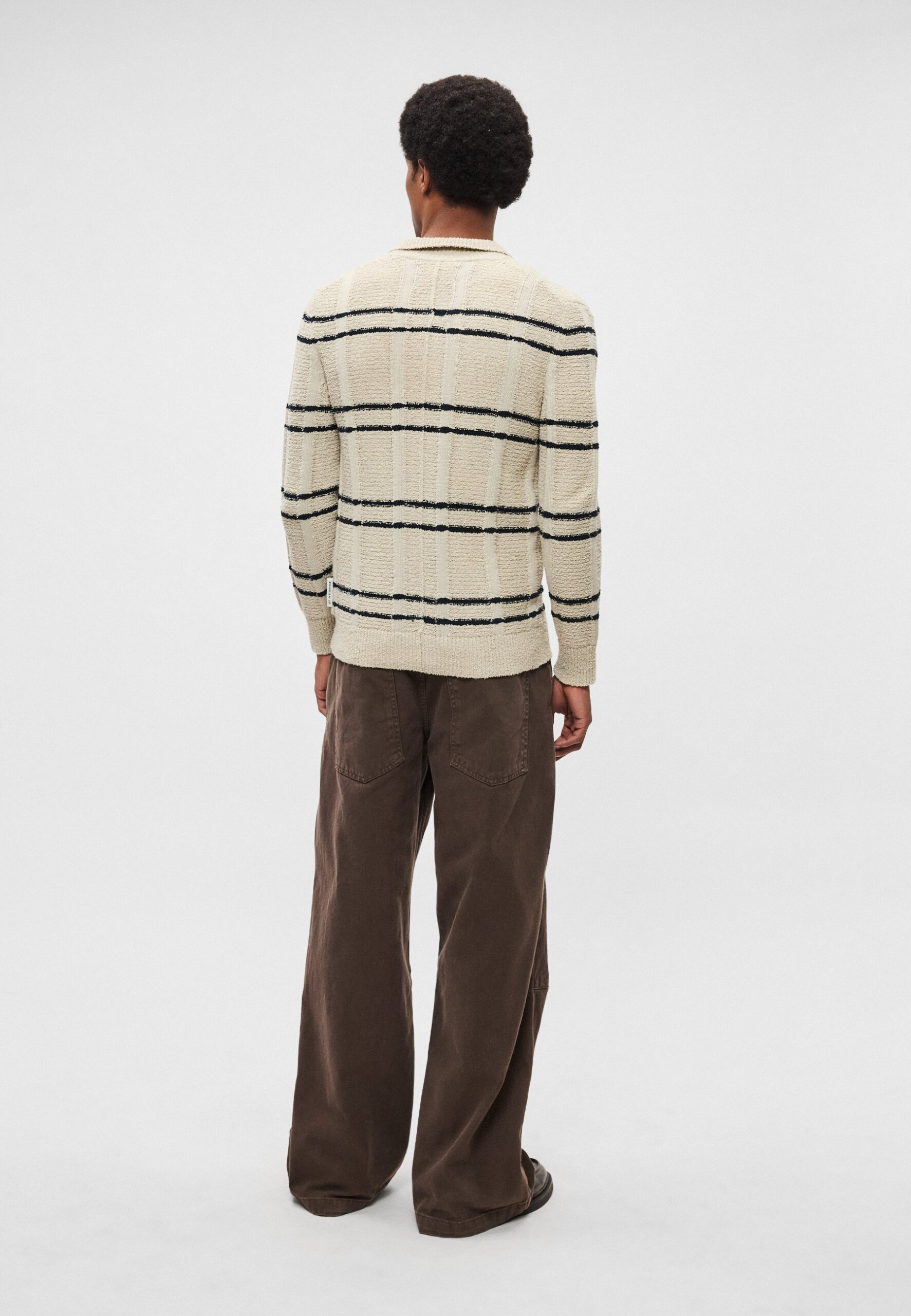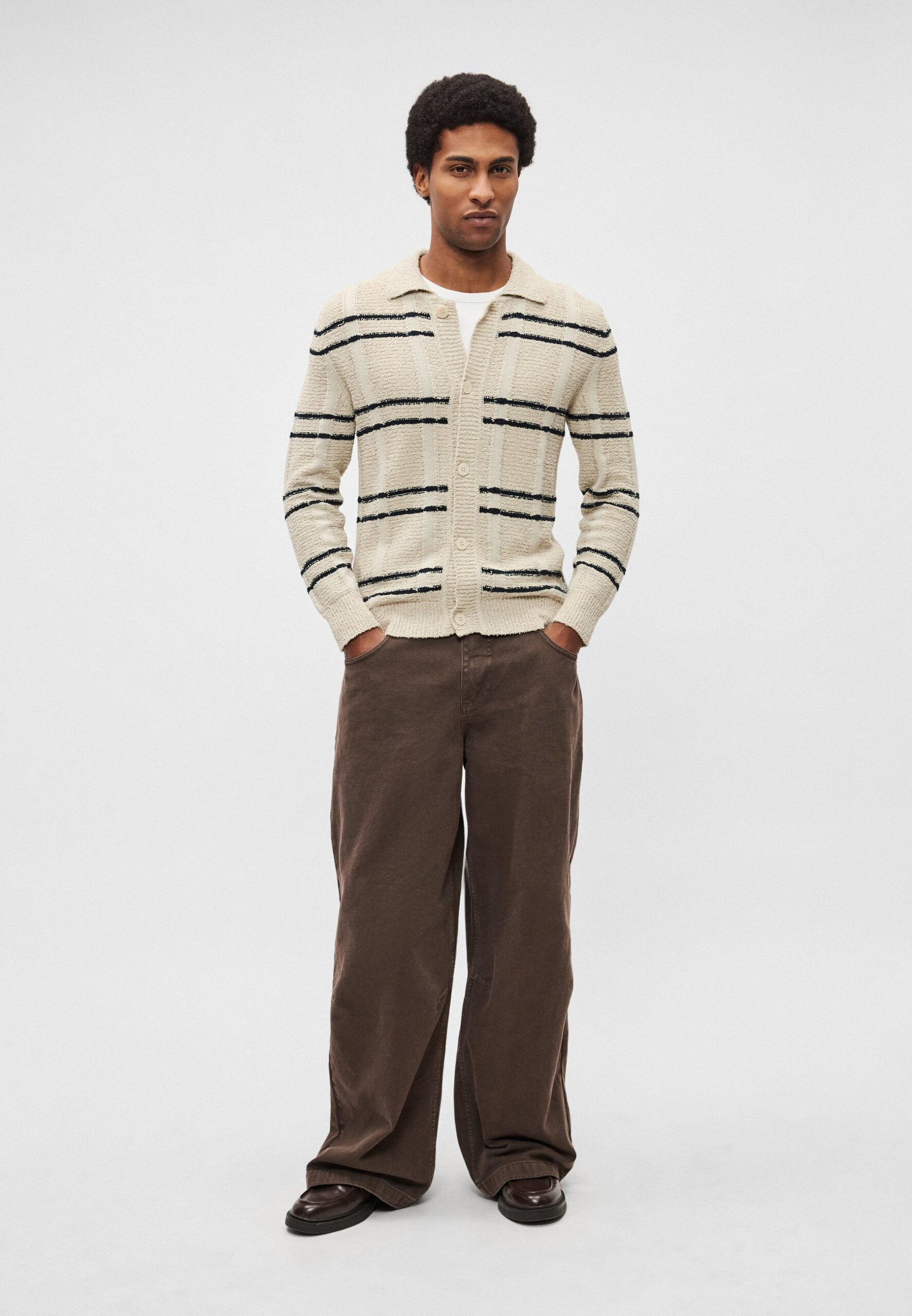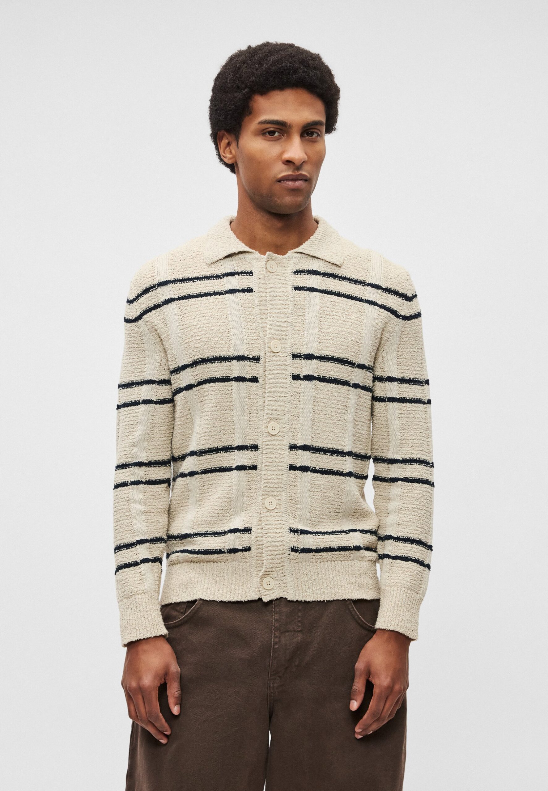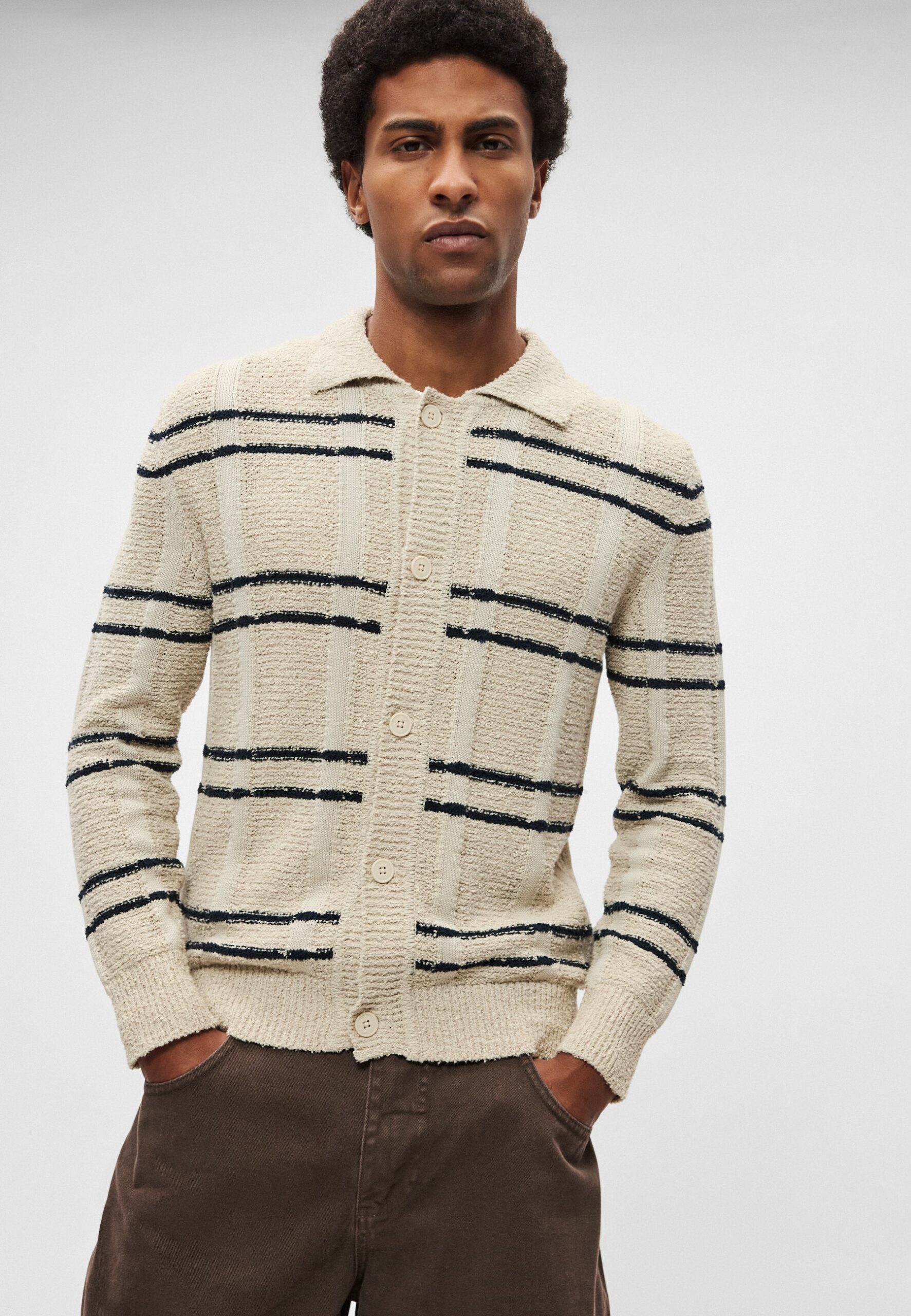 CARDIGAN WITH SHIRT COLLAR CHECK INSPIRED STRIPE – Cardigan – light oat