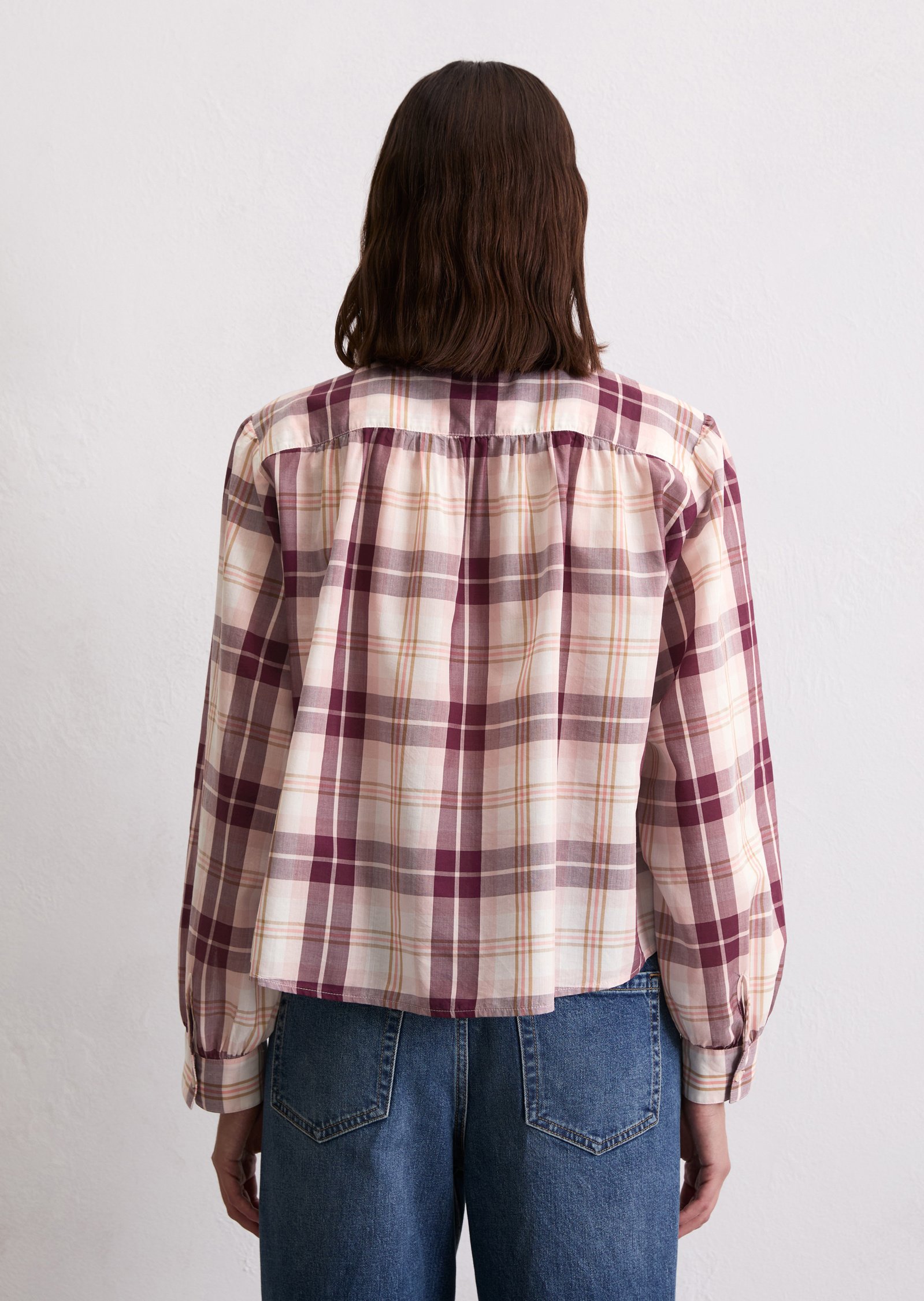 CASUAL FIT SMALL STAND UP COLLAR GATHERINGS LONG SLEEVE CHECKS – Button-down blouse – multi/pastel rose