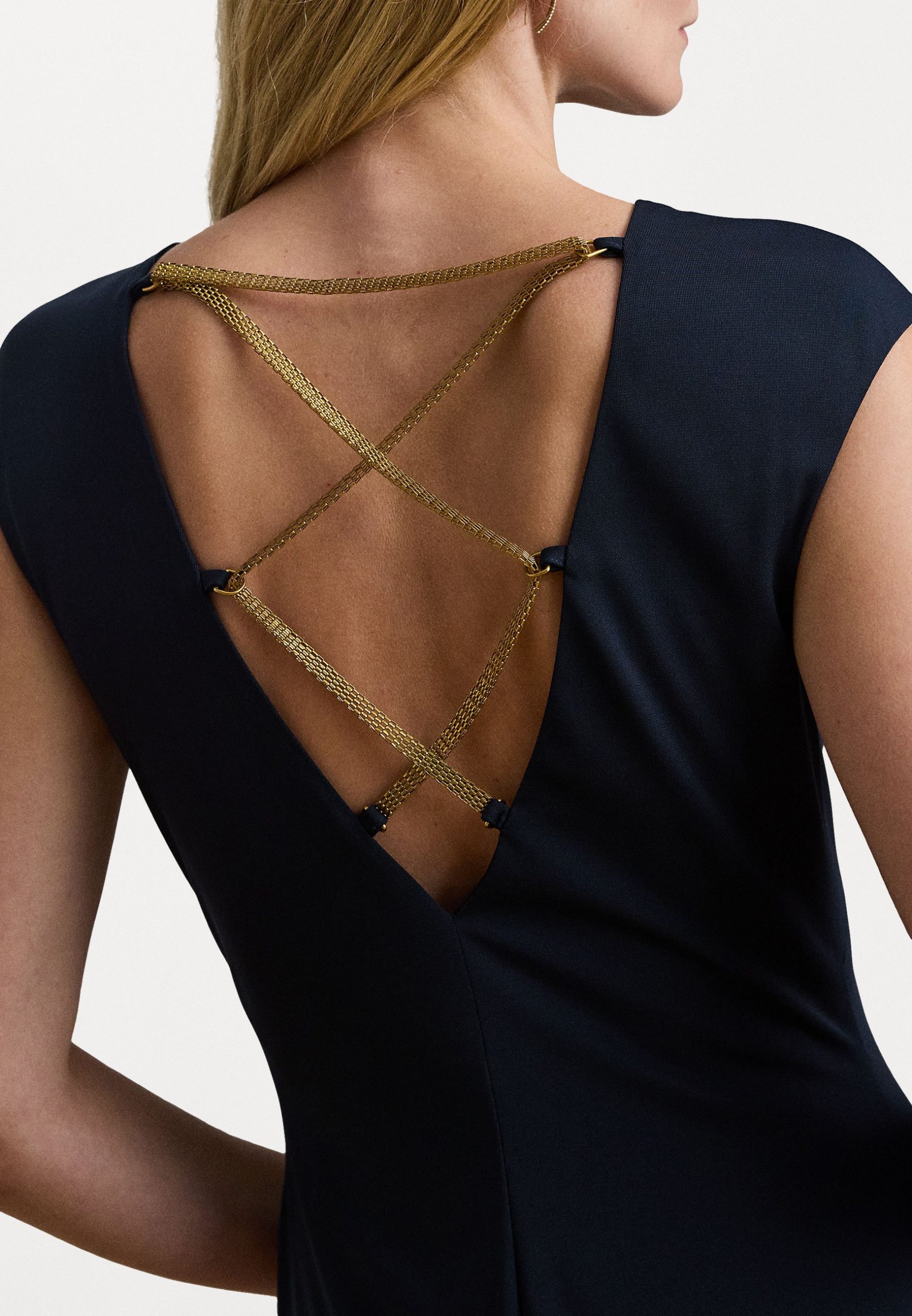 CHAIN TRIM JERSEY GOWN – Occasion wear – lauren navy