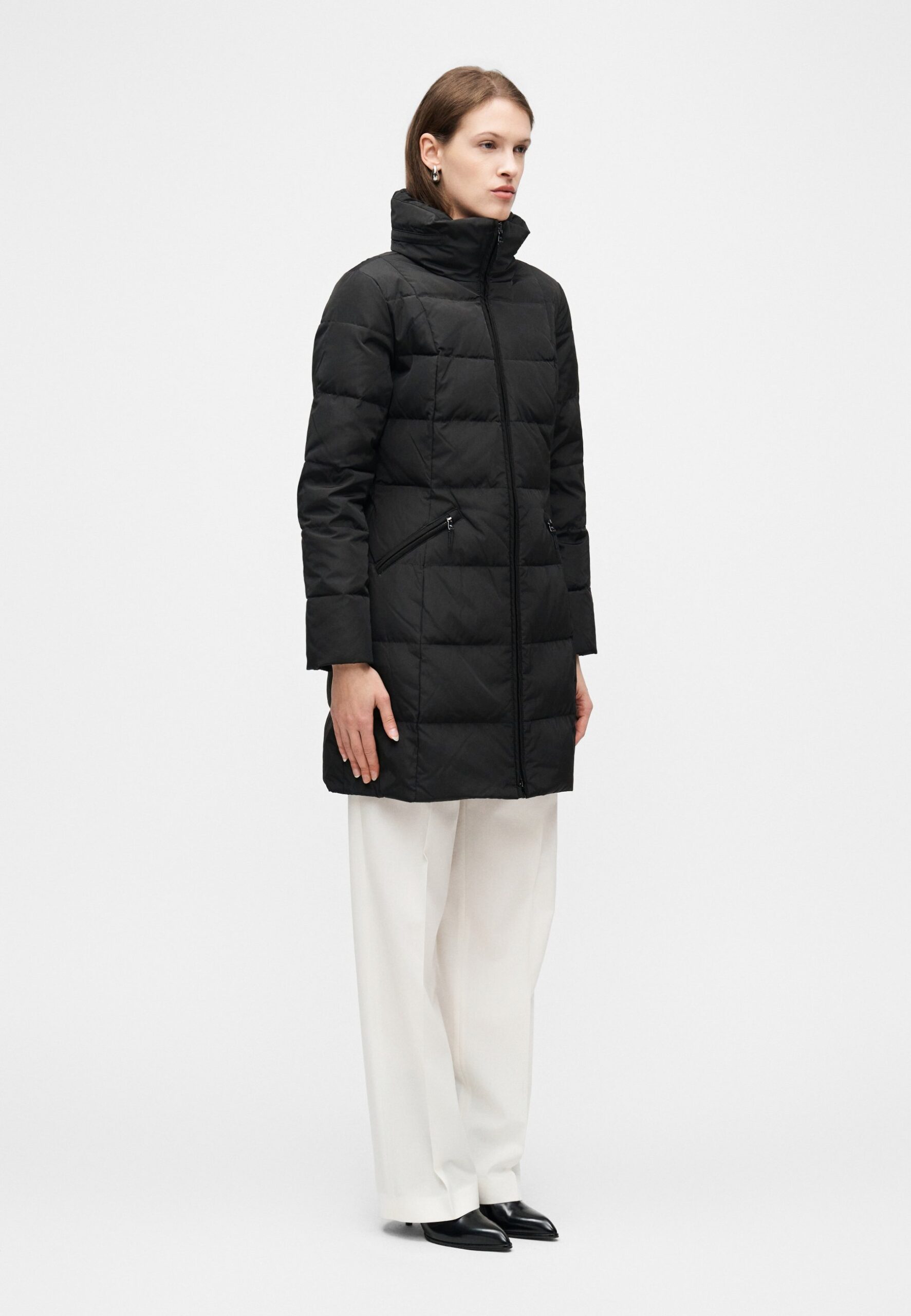 CHANNEL QUILTED FUNNELNECK DOWN COAT – Down coat – black