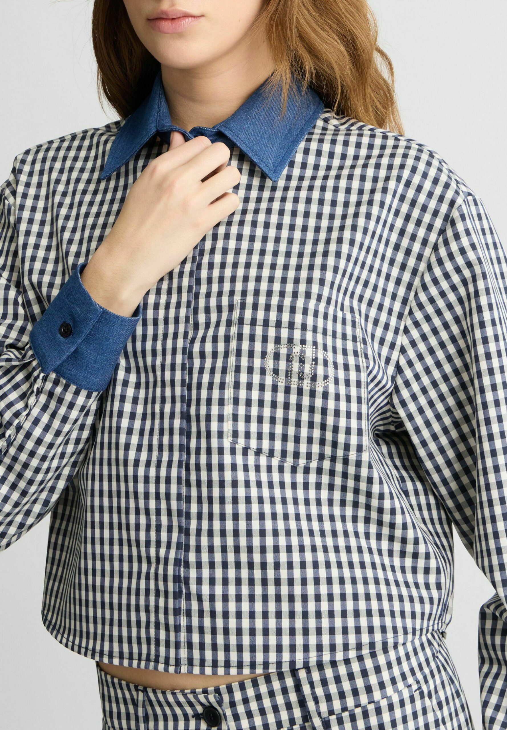 CHECK – Button-down blouse – black white