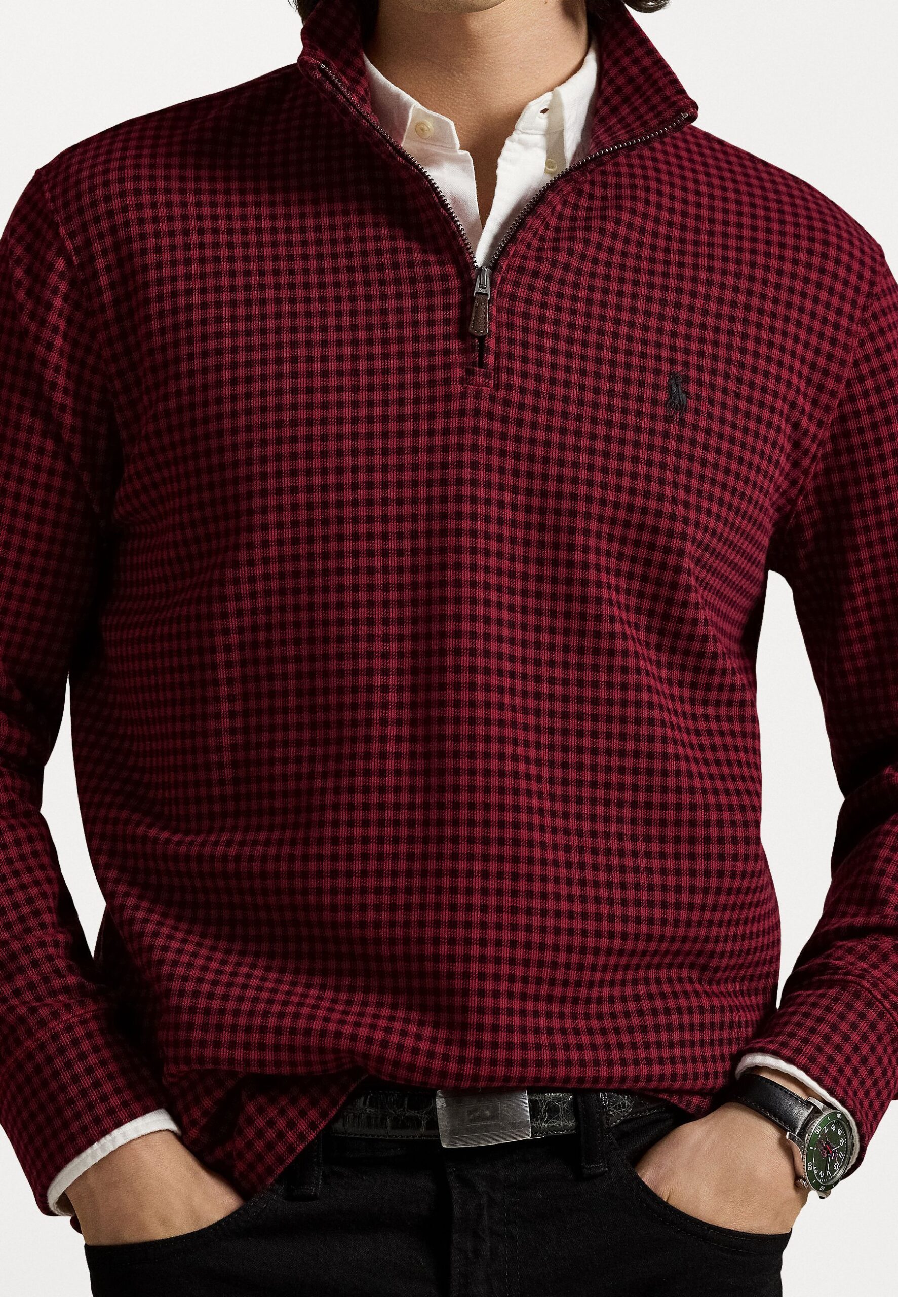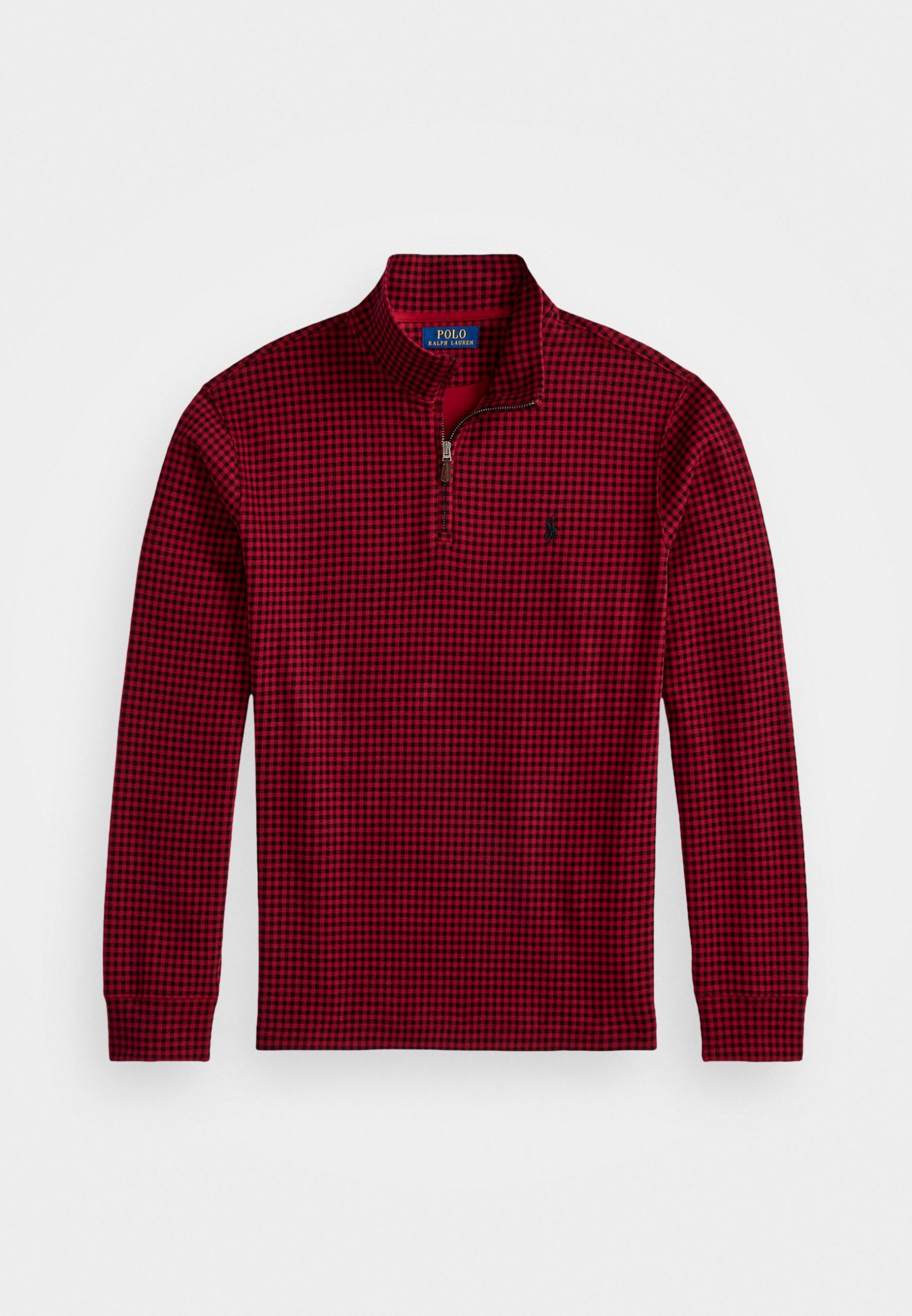 CHECKED ESTATE RIB QUARTER ZIP PULLOVER – Sweatshirt – red/black