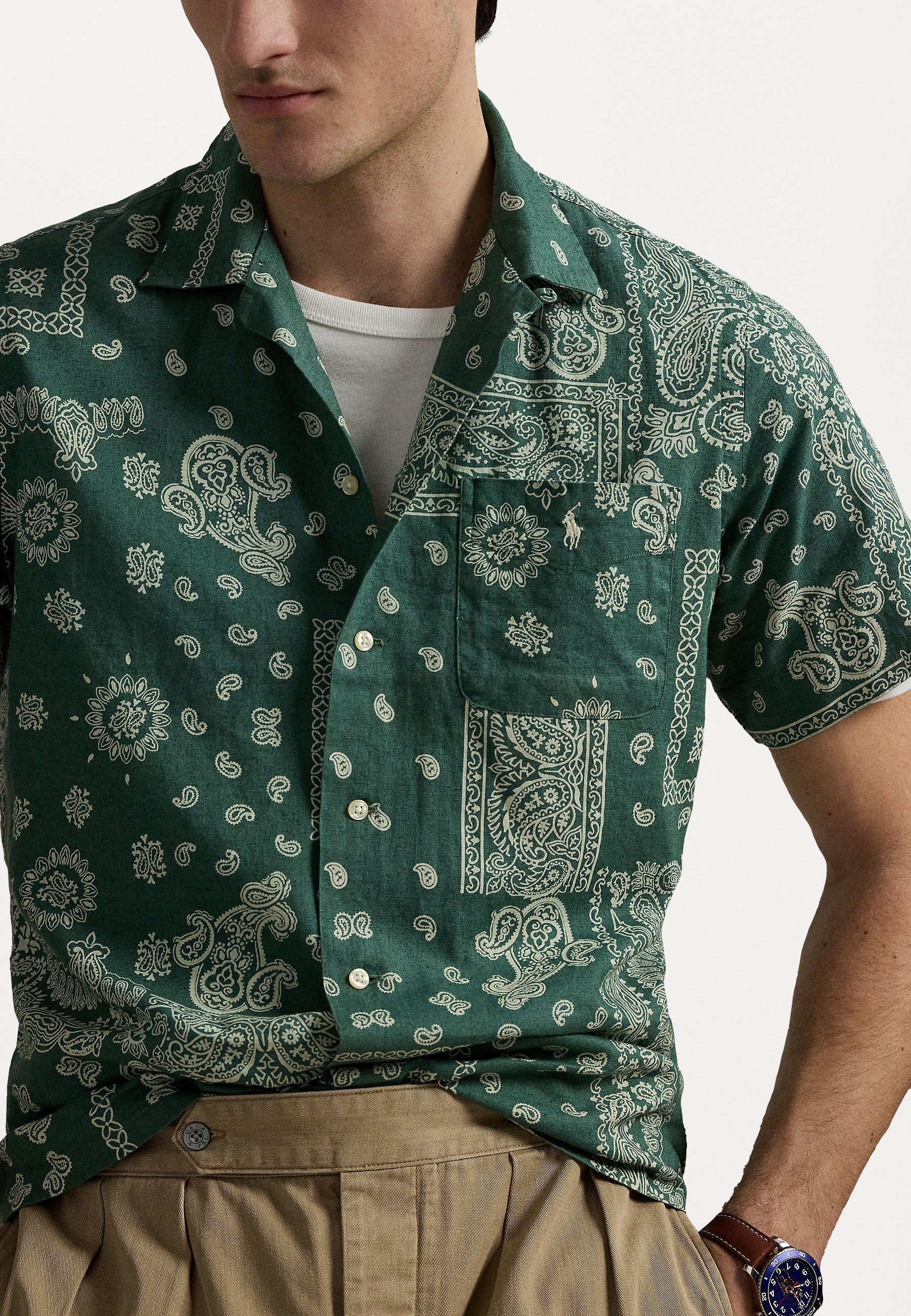 Classic Fit Bandanna Print Camp Shirt – Shirt – green