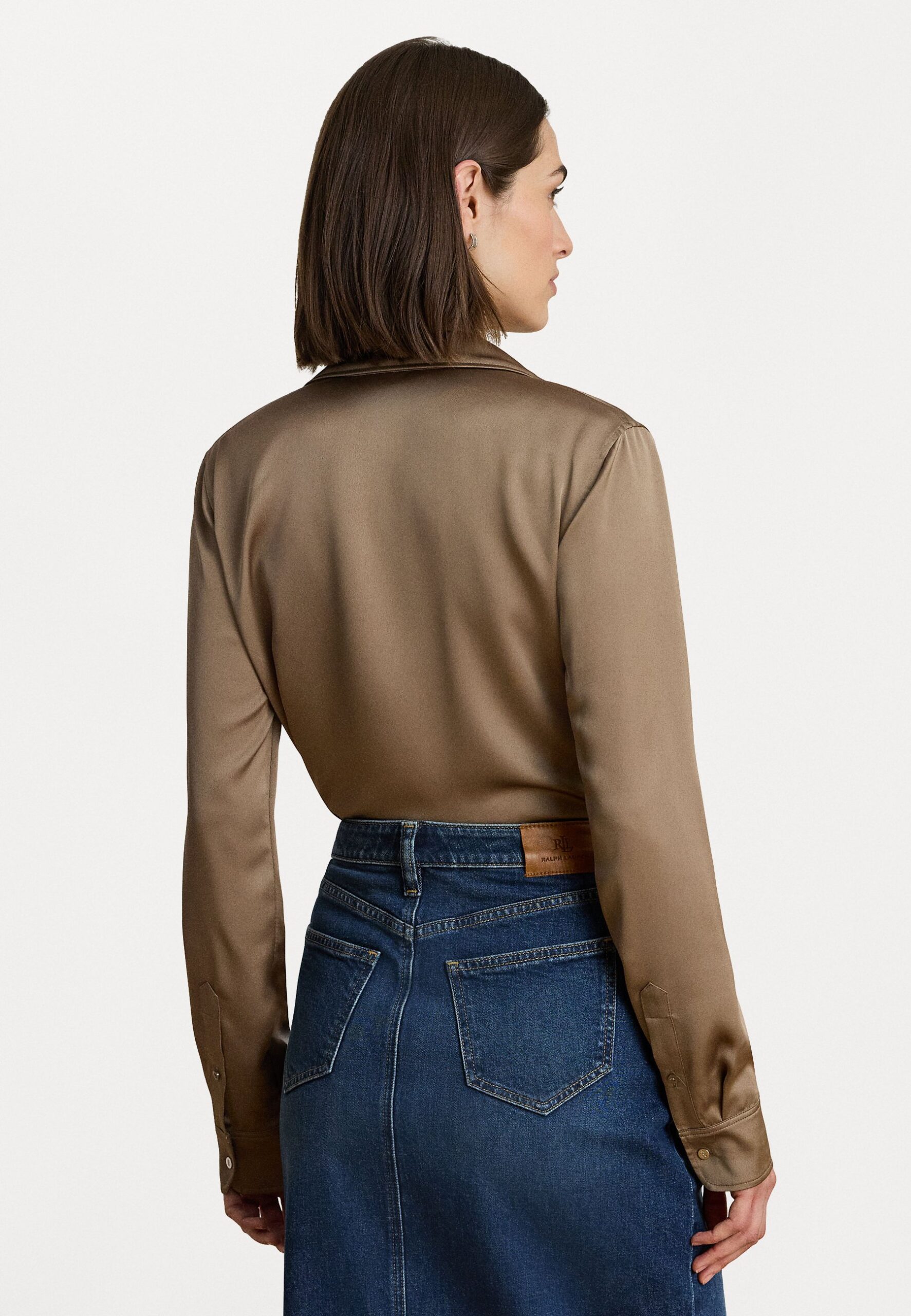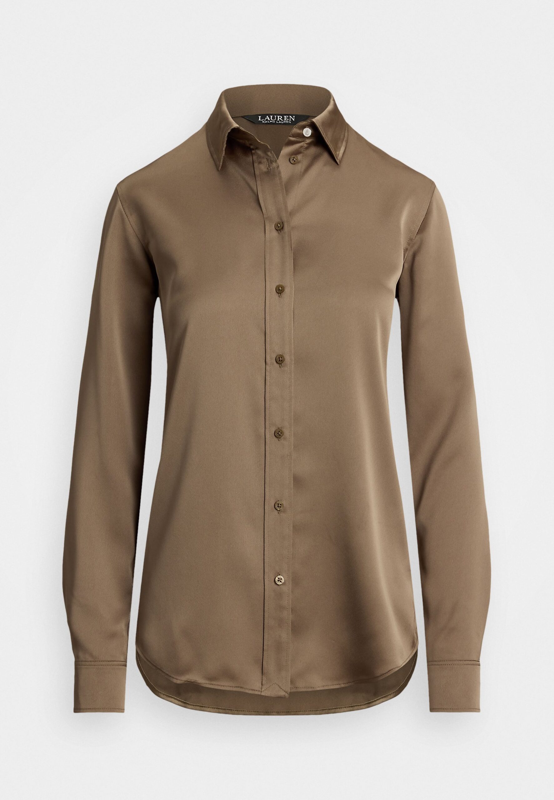 CLASSIC FIT SATIN CHARMEUSE SHIRT – Button-down blouse – taupe brown