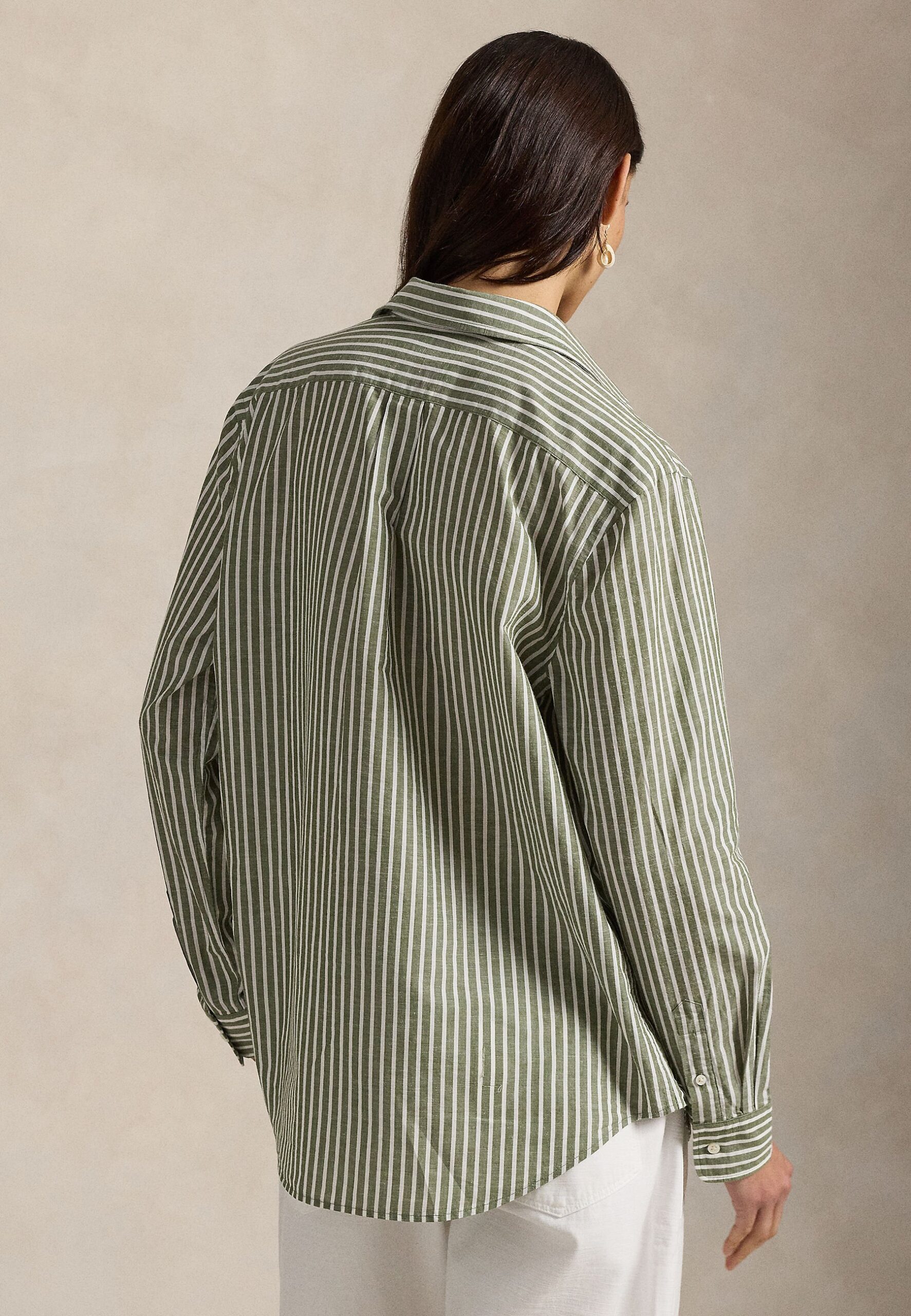 CLASSIC FIT STRIPED COTTON-LINEN SHIRT – Button-down blouse – supply olive/white