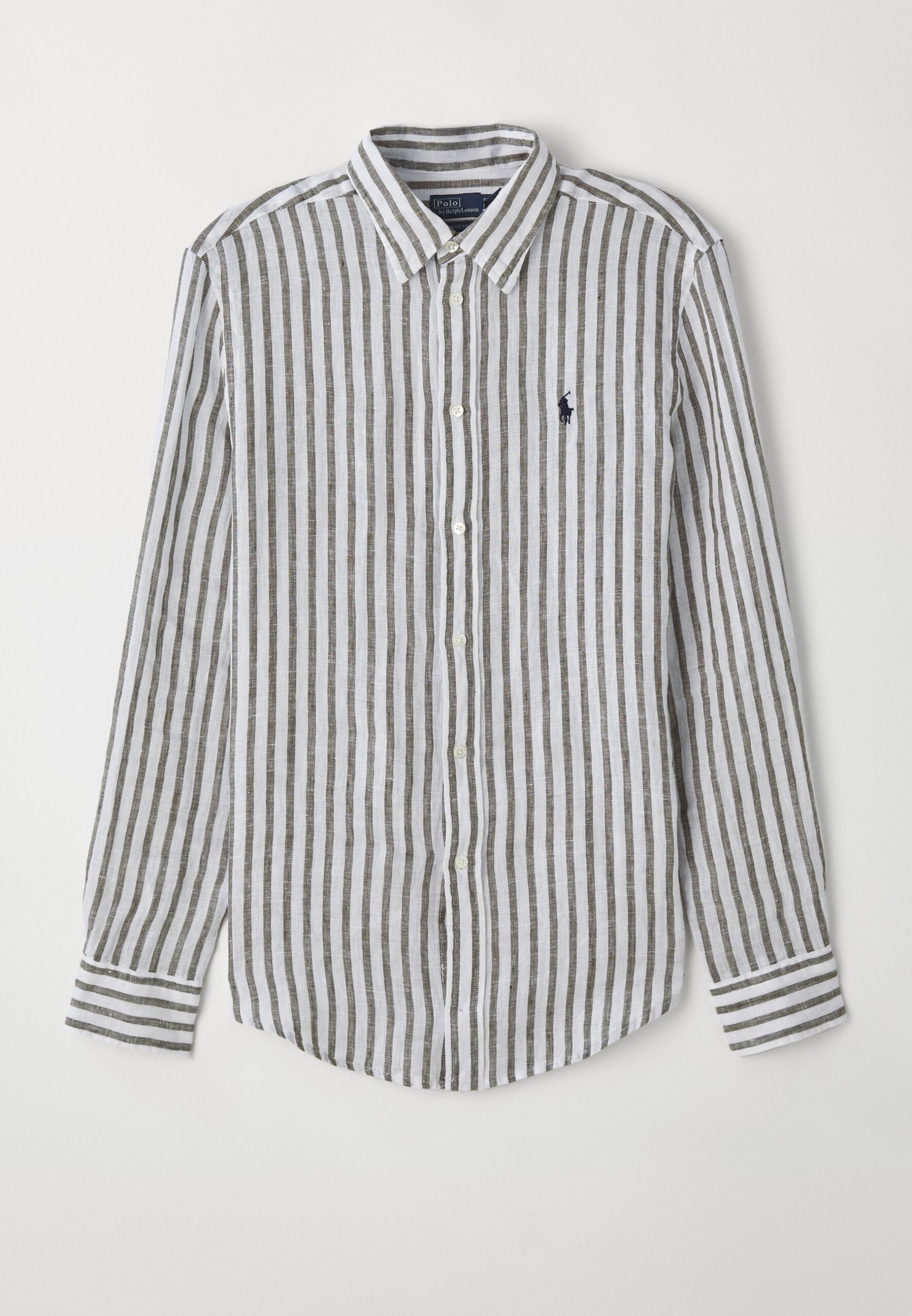 CLASSIC FIT STRIPED LINEN SHIRT – Button-down blouse – dark sage/white