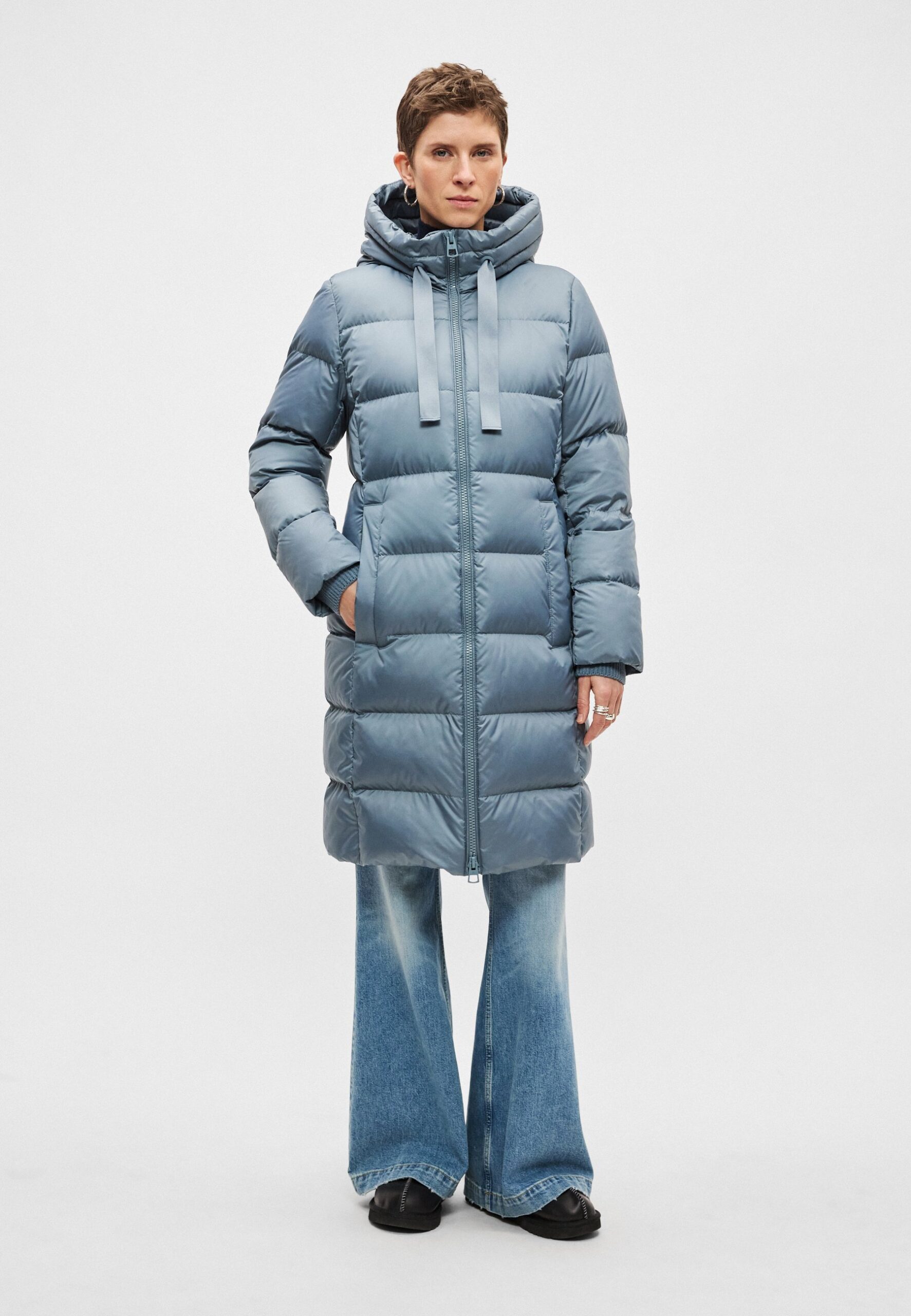 COAT WITH HOOD WELT POCKETS – Down coat – slate blue