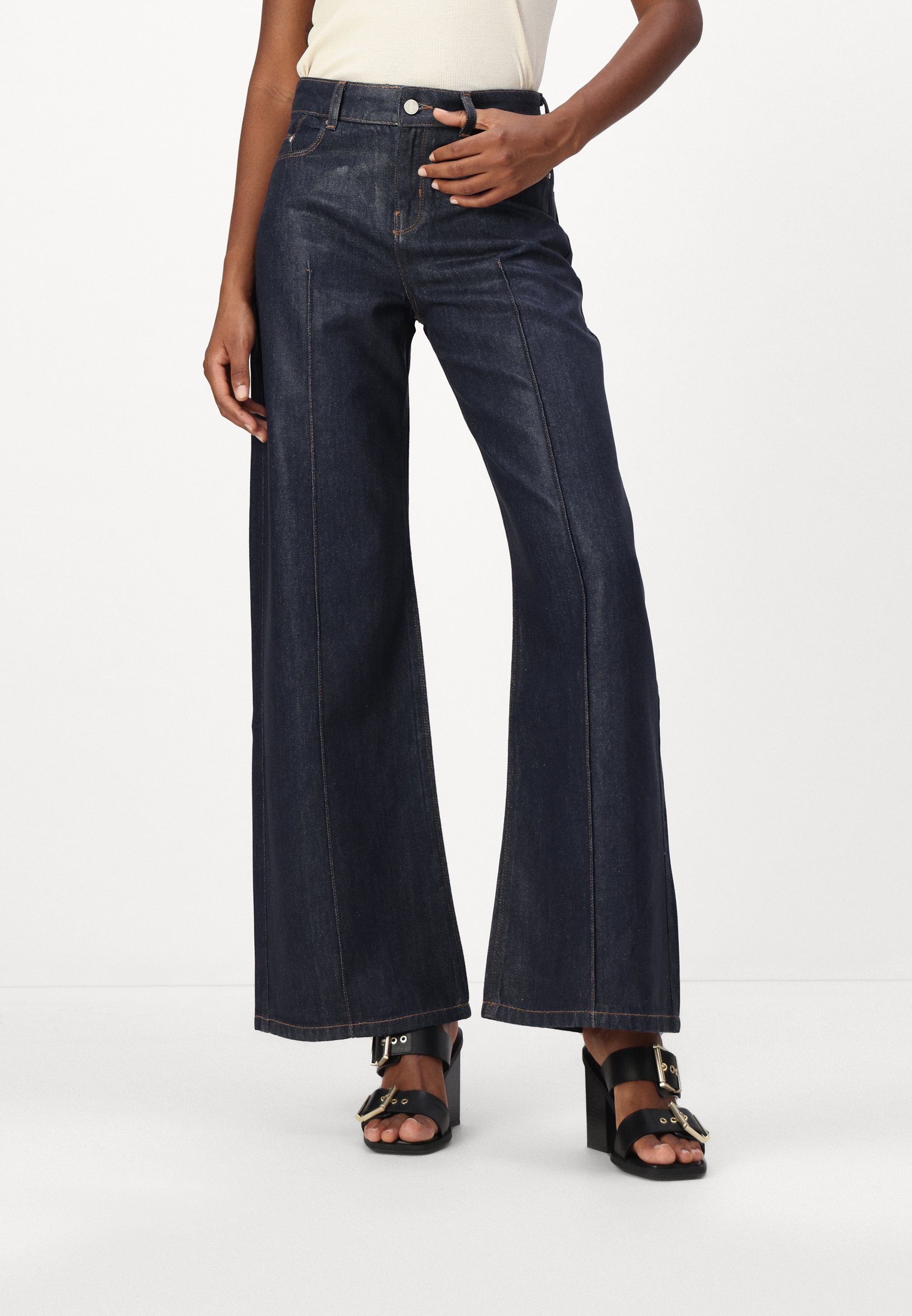 COATED WIDE LEG PANTS – Wide Leg – dark blue denim