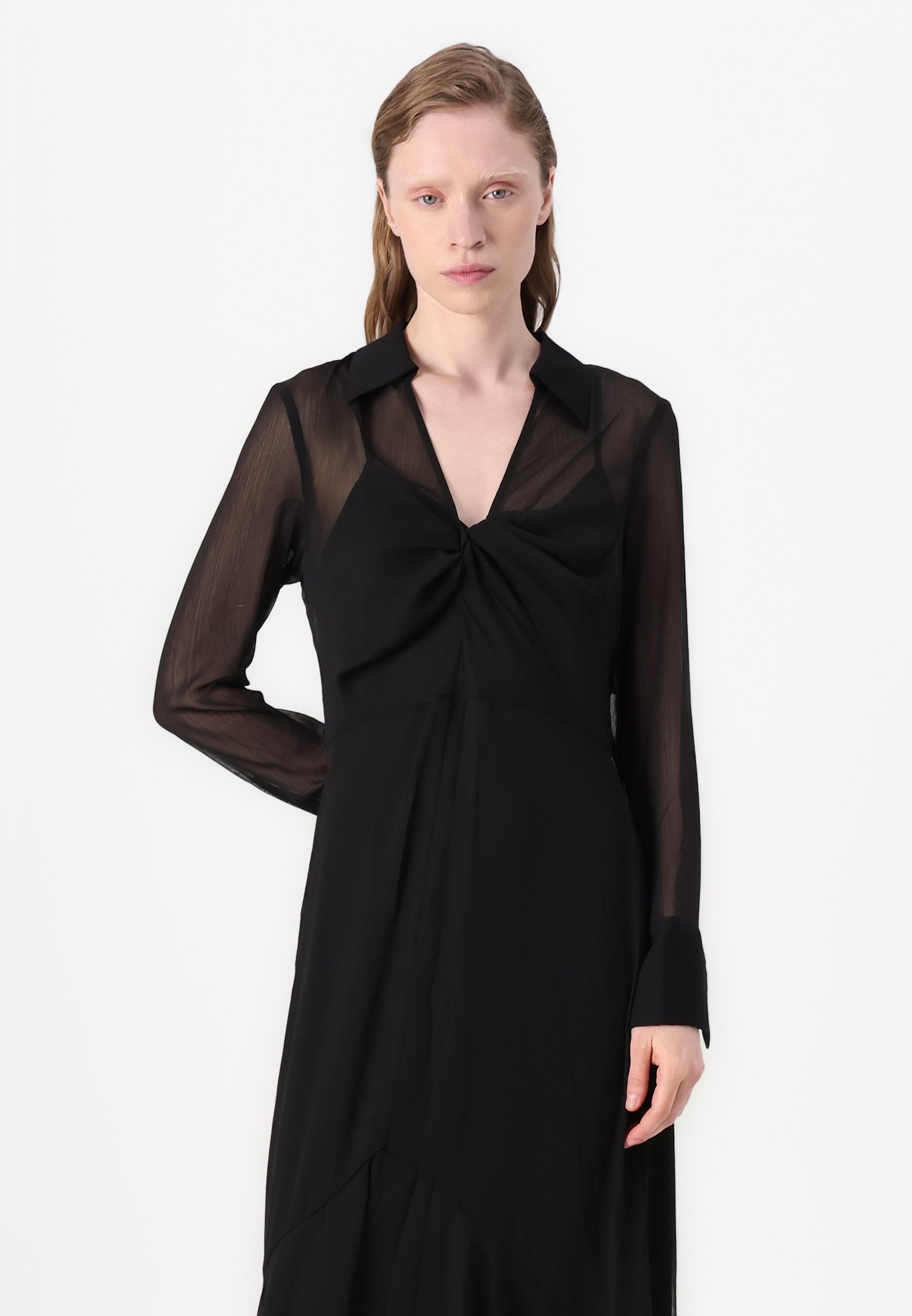 COLLAR KNOT FRONT MIDI – Day dress – black