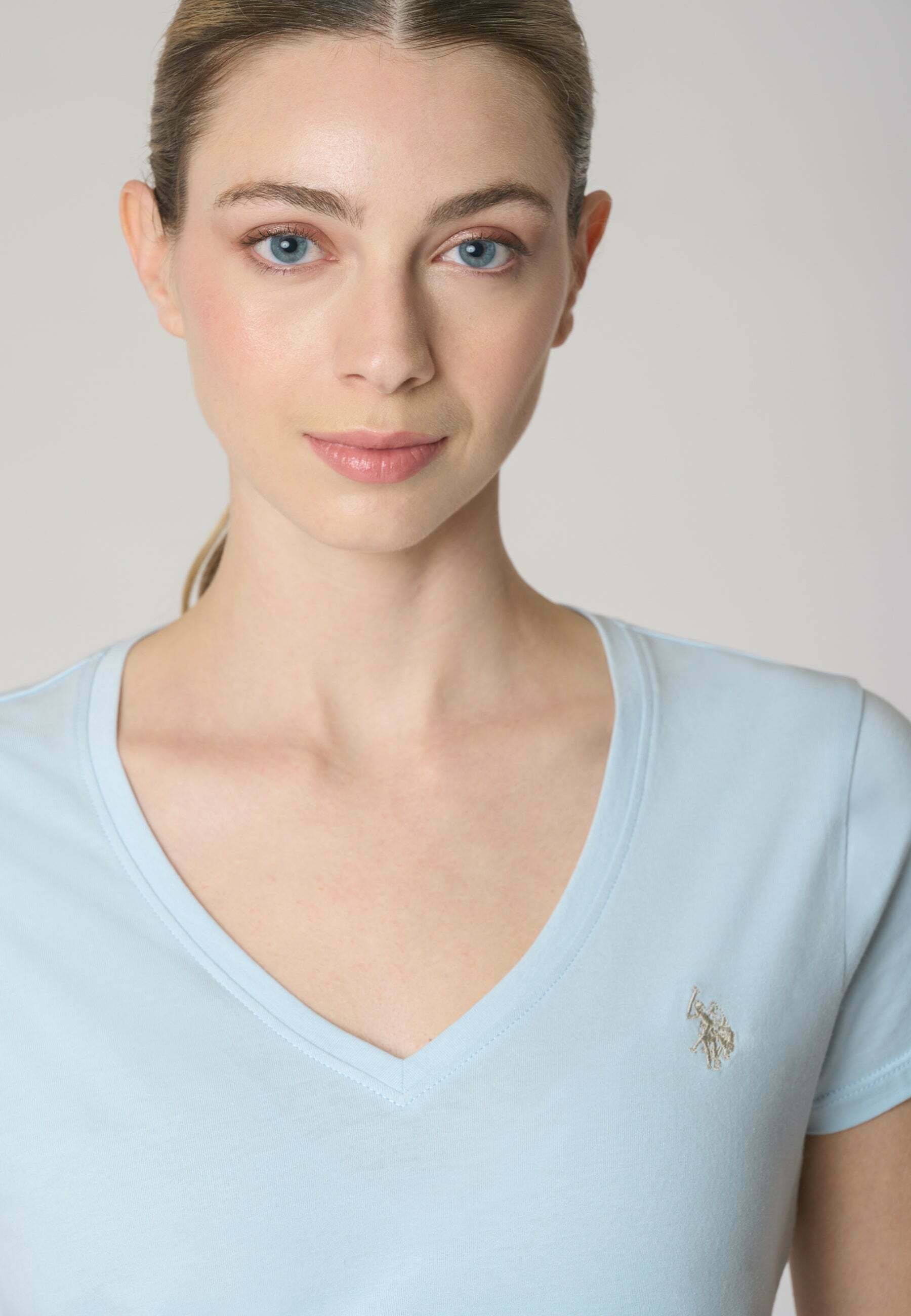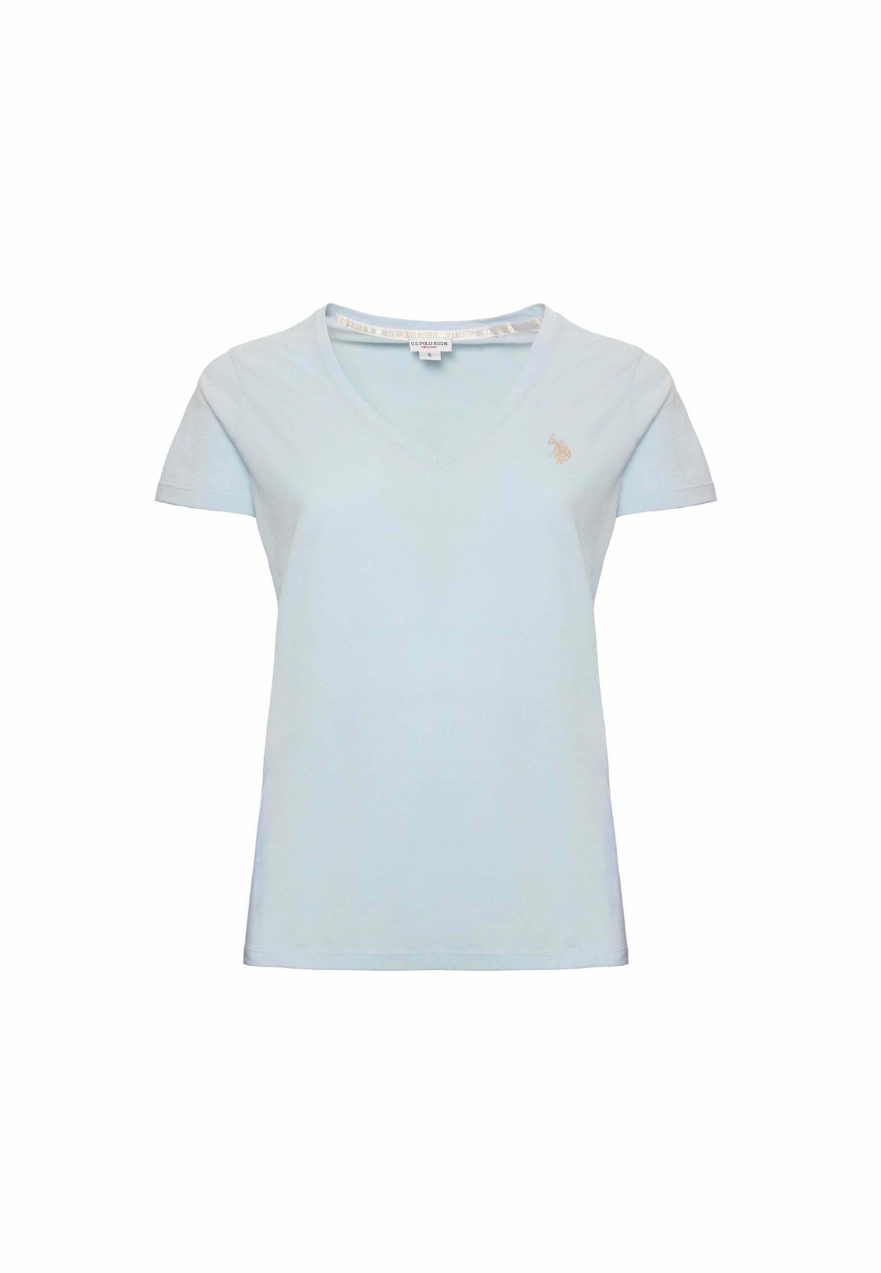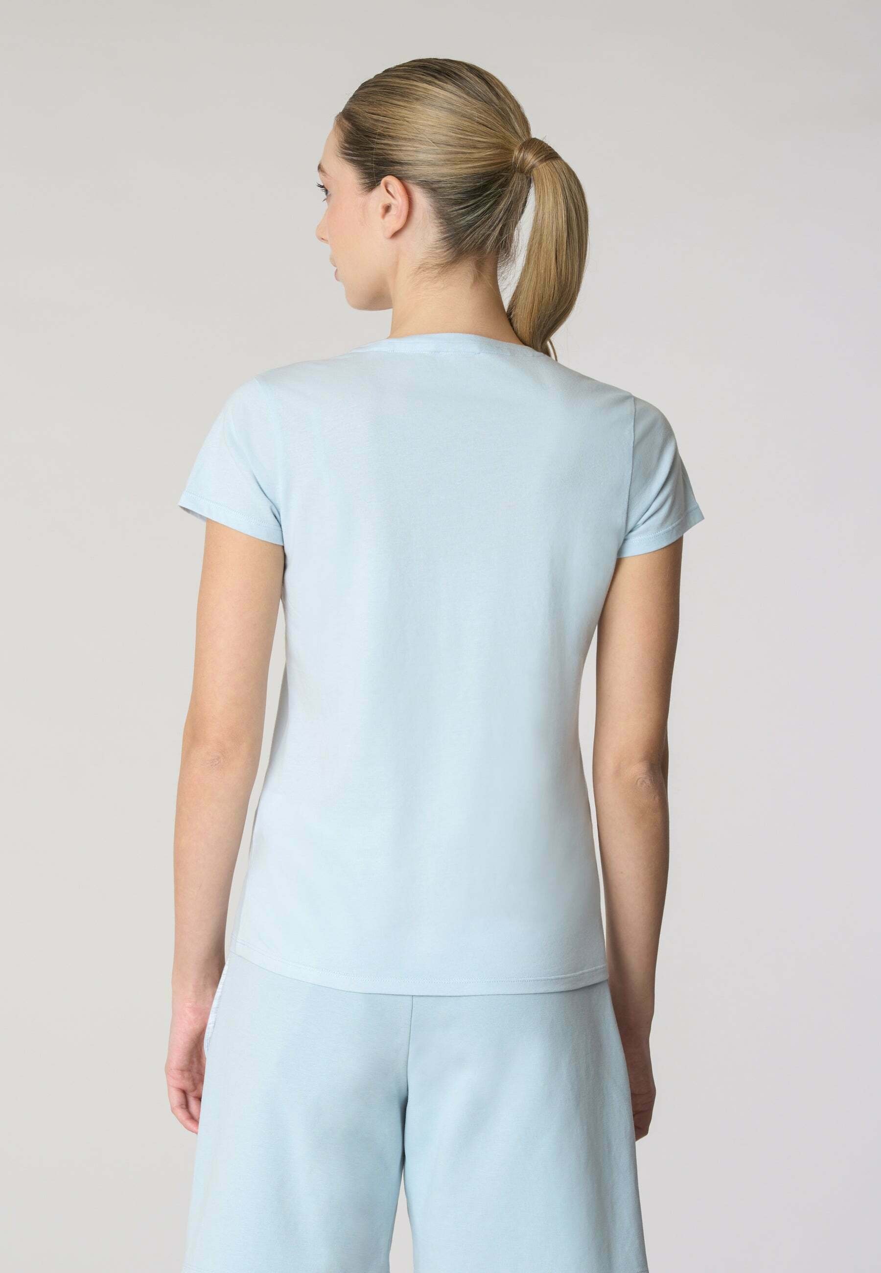 CON SCOLLO A V A MANICHE CORTE IN LIGHT – Basic T-shirt – blue