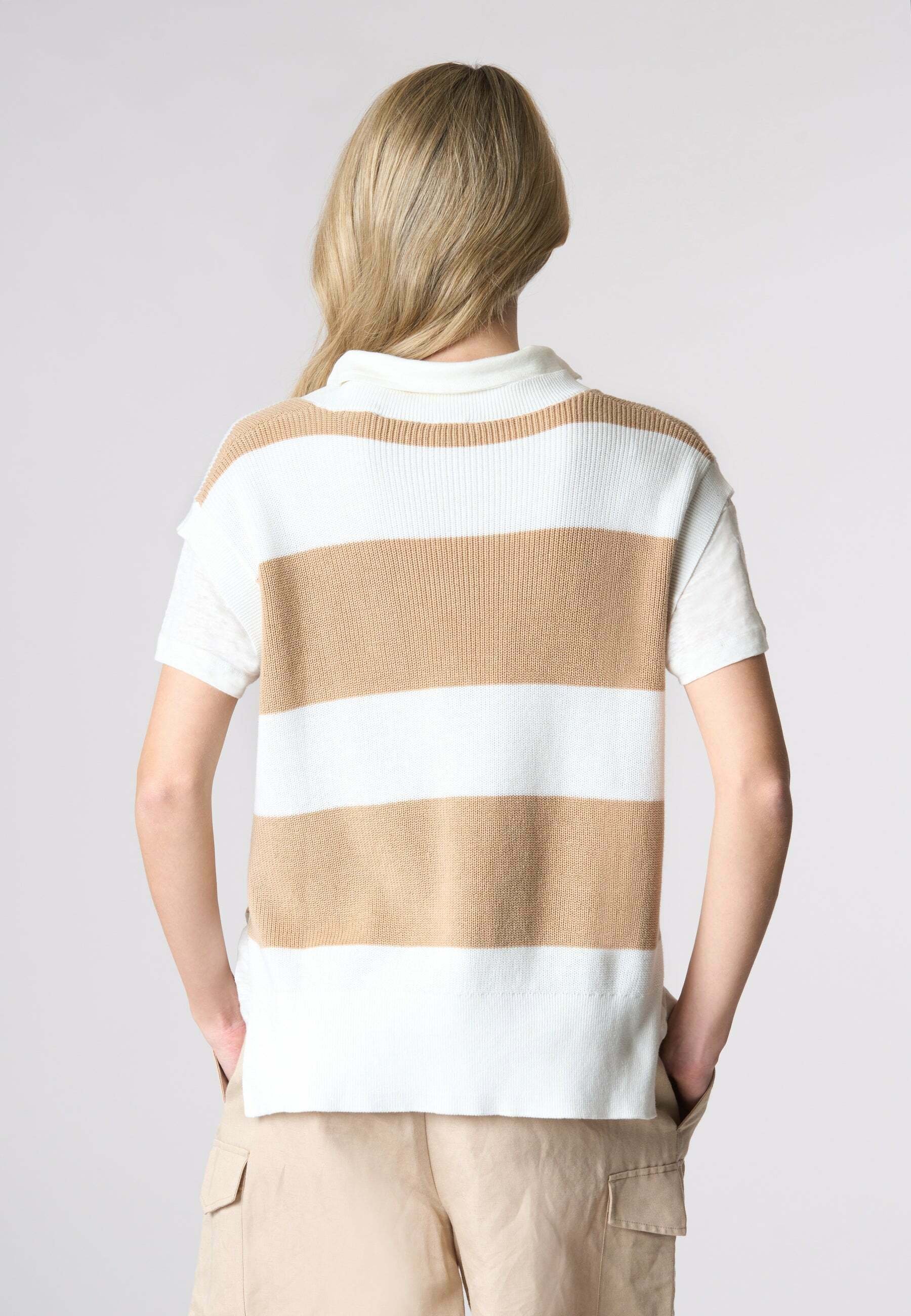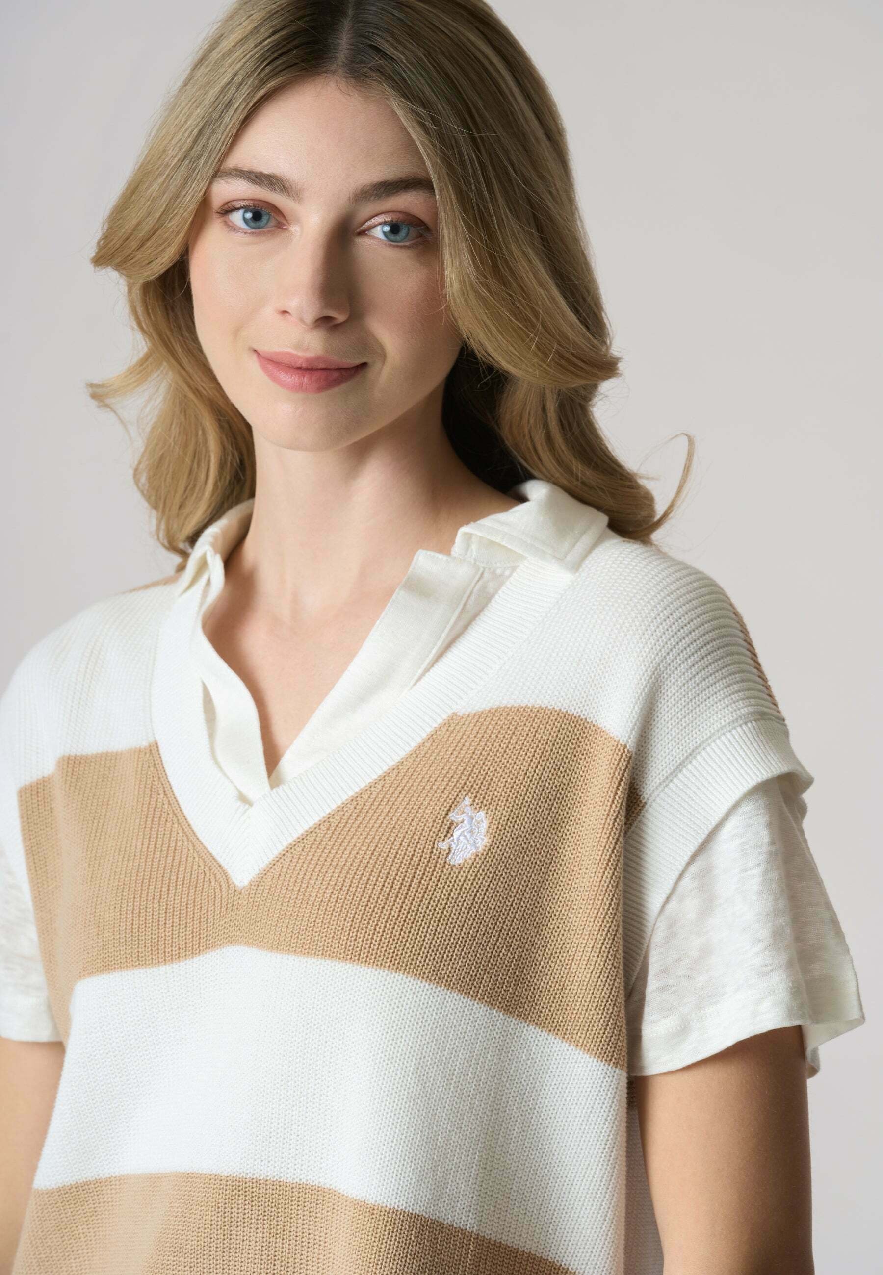 CON SCOLLO A V – Print T-shirt – beige