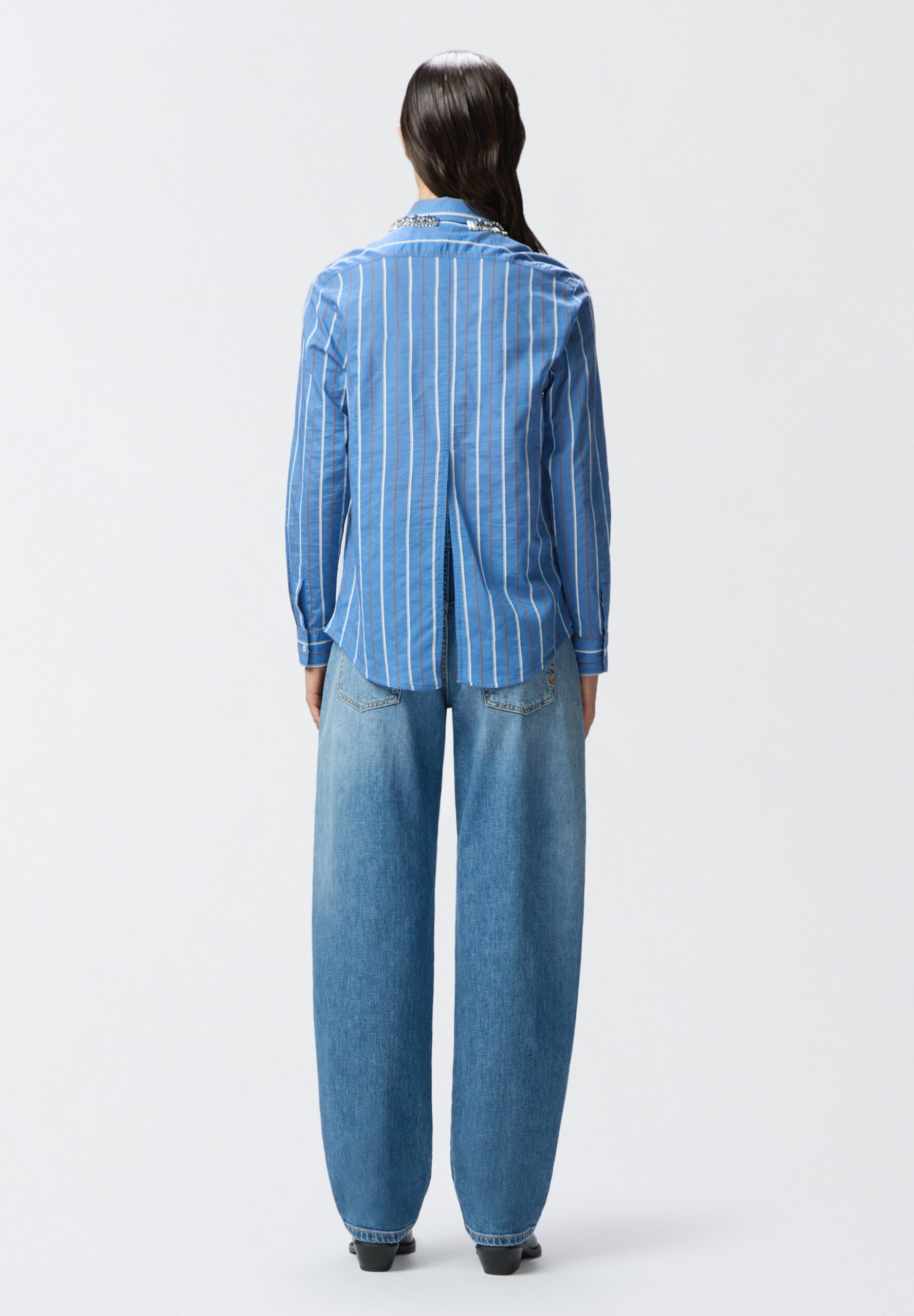 CONTINUA – Button-down blouse – cornflower blue white