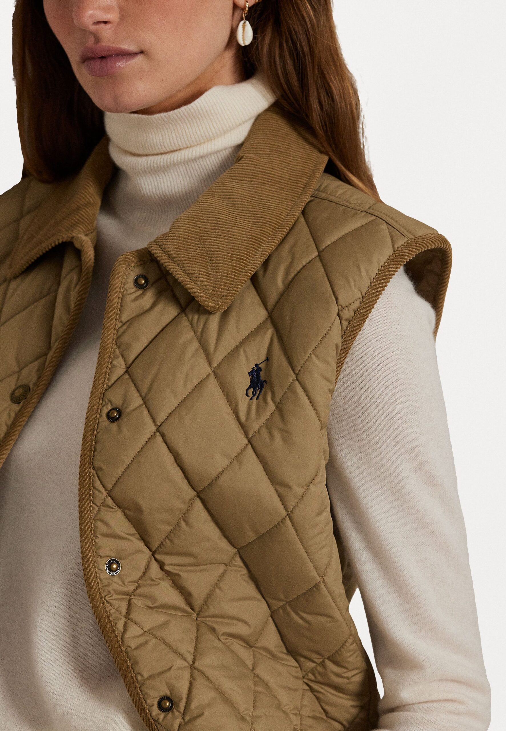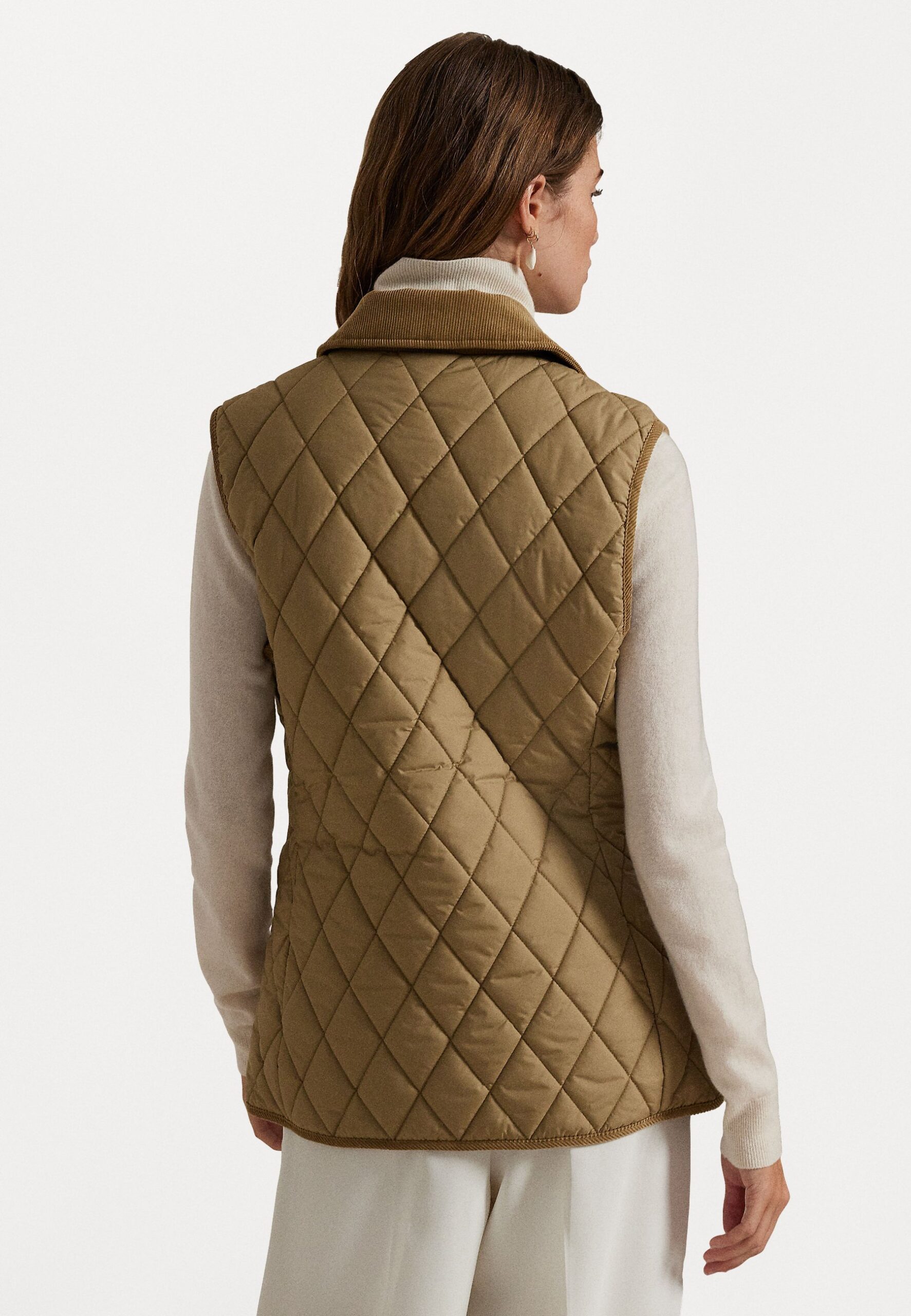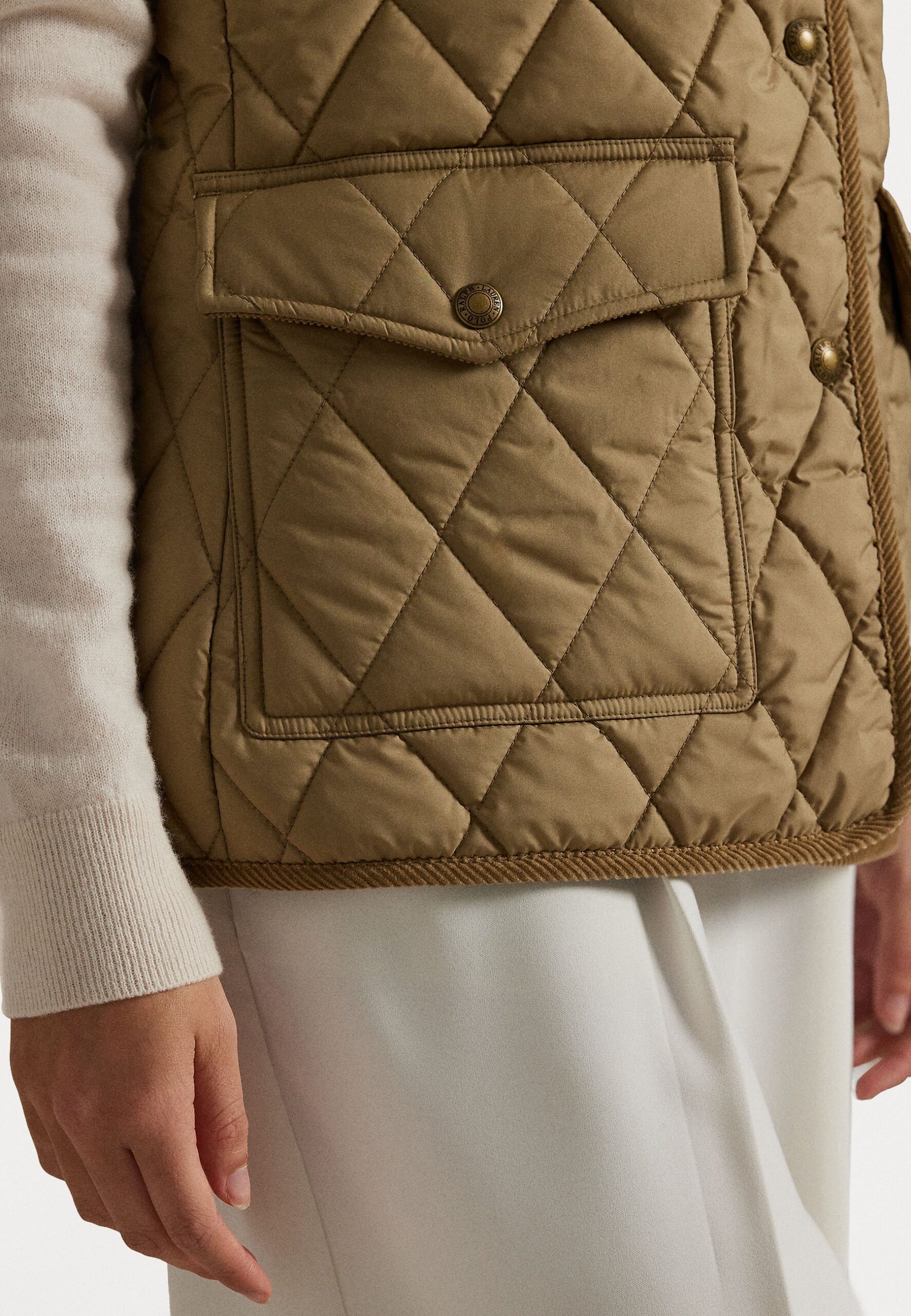 CORDUROY TRIM QUILTED VEST – Waistcoat – desert khaki