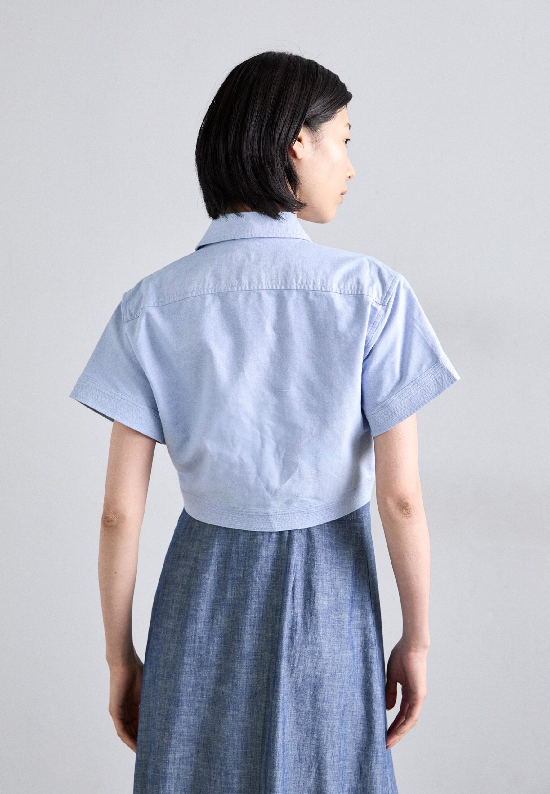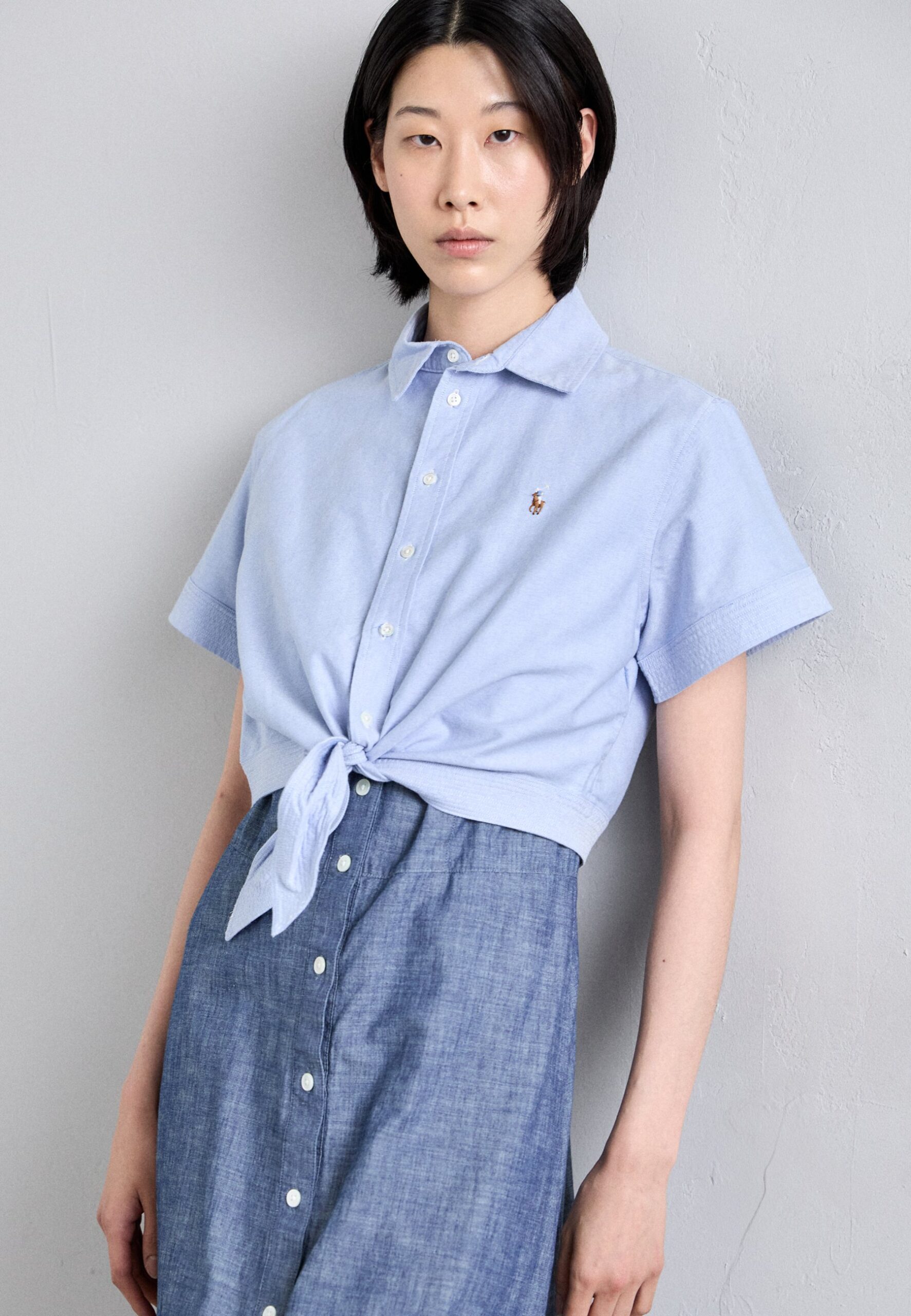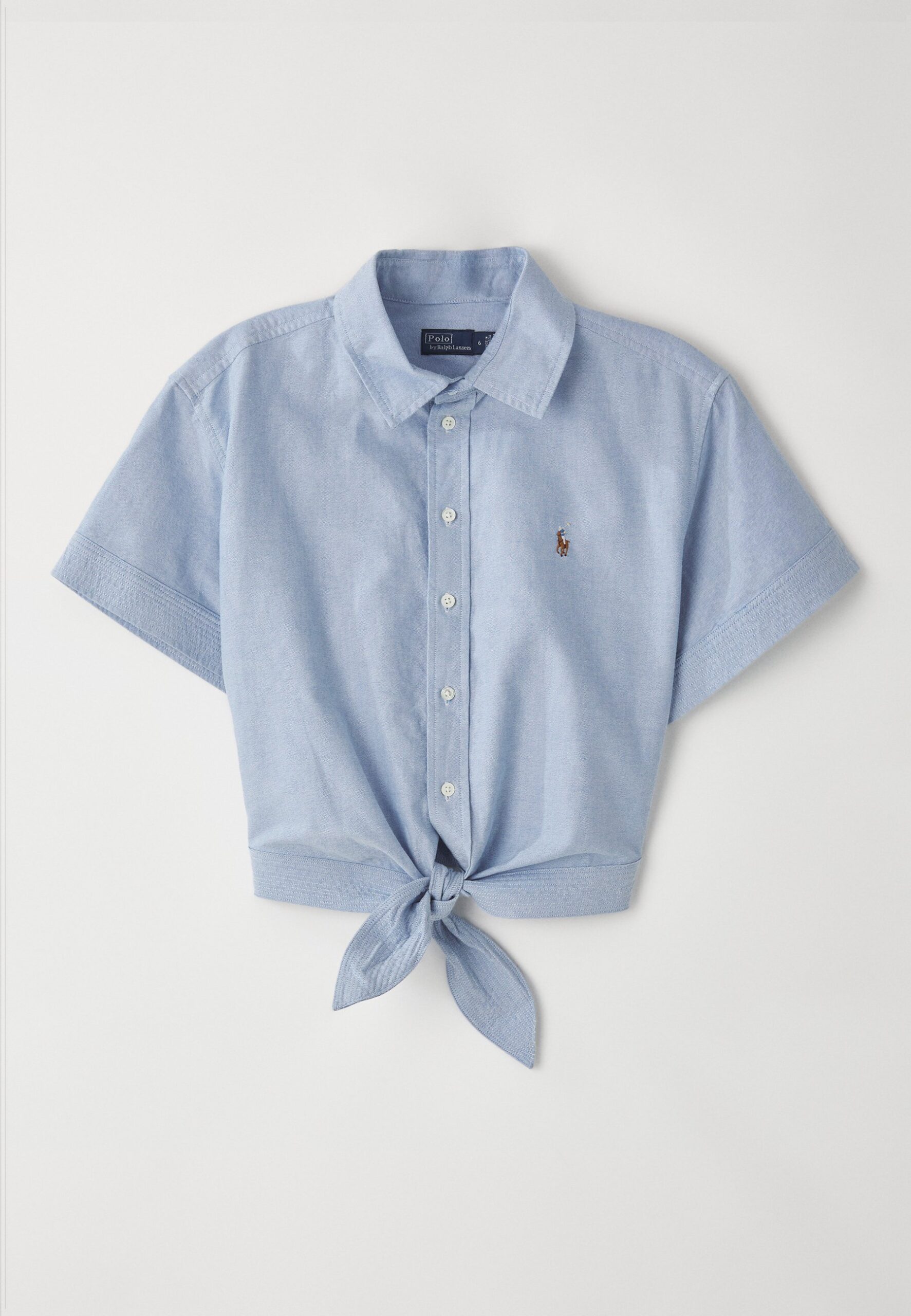 COTTON OXFORD TIE FRONT CROPPED SHIRT – Button-down blouse – blue