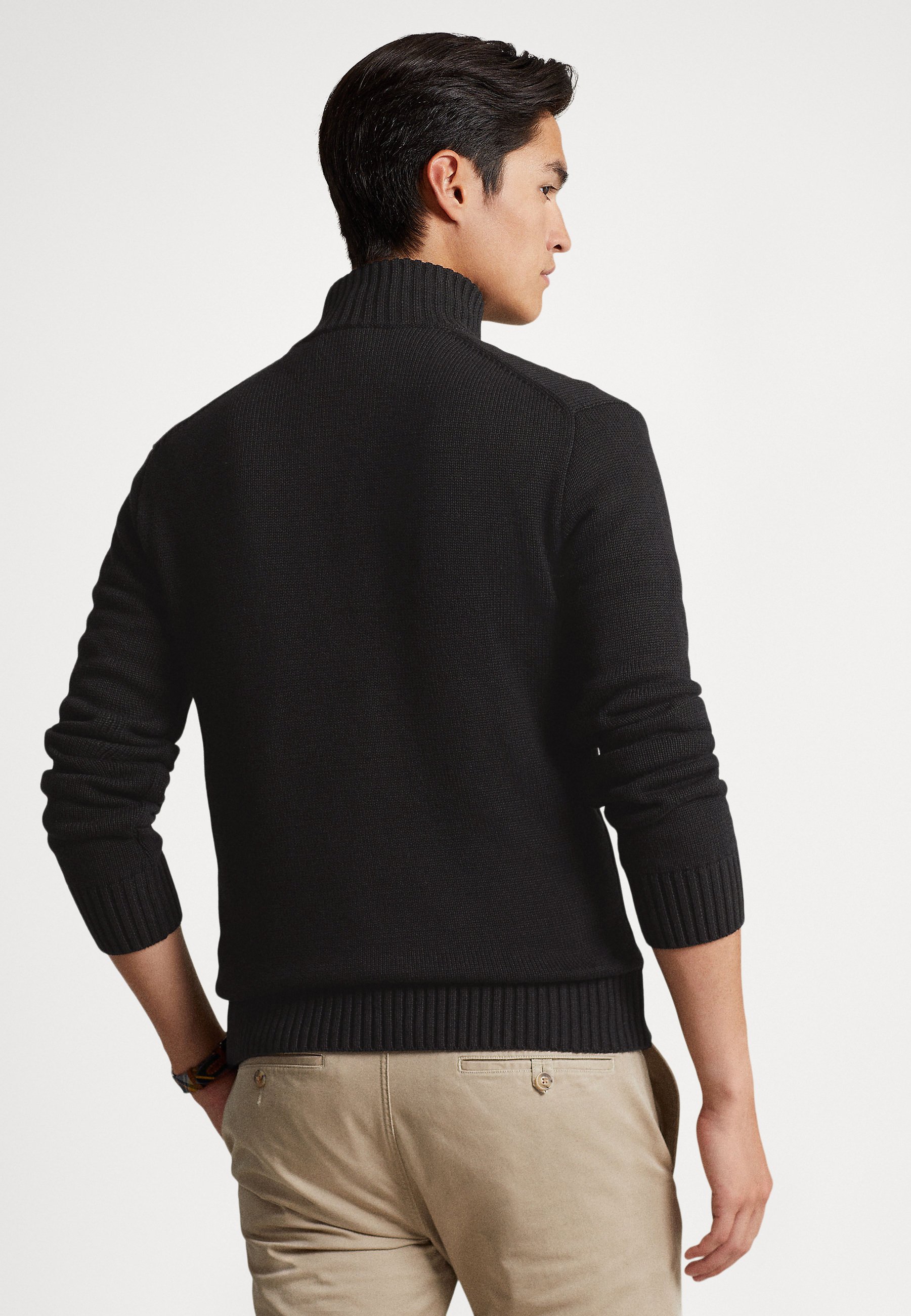 COTTON QUARTER-ZIP MOCKNECK SWEATER – Jumper – black