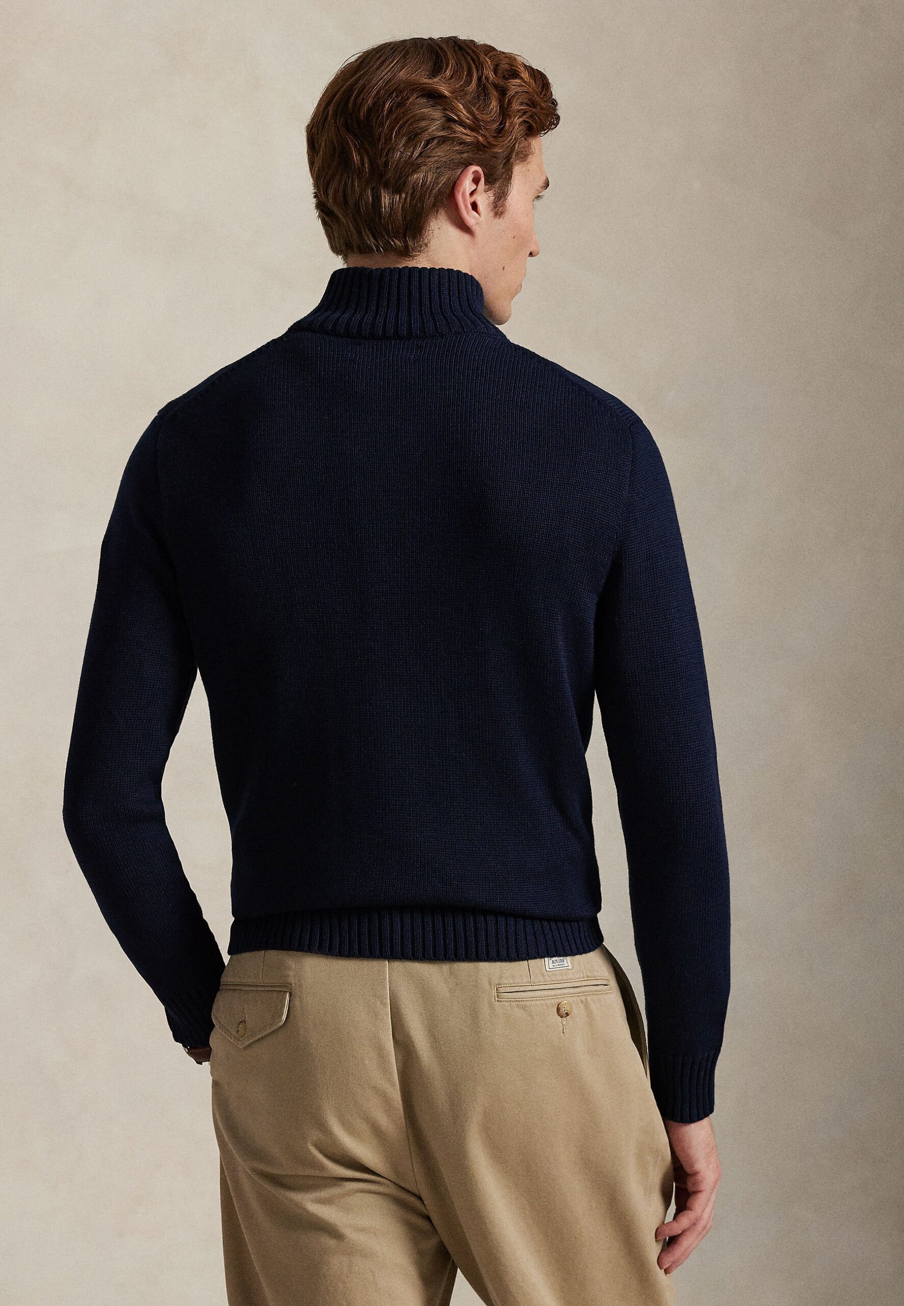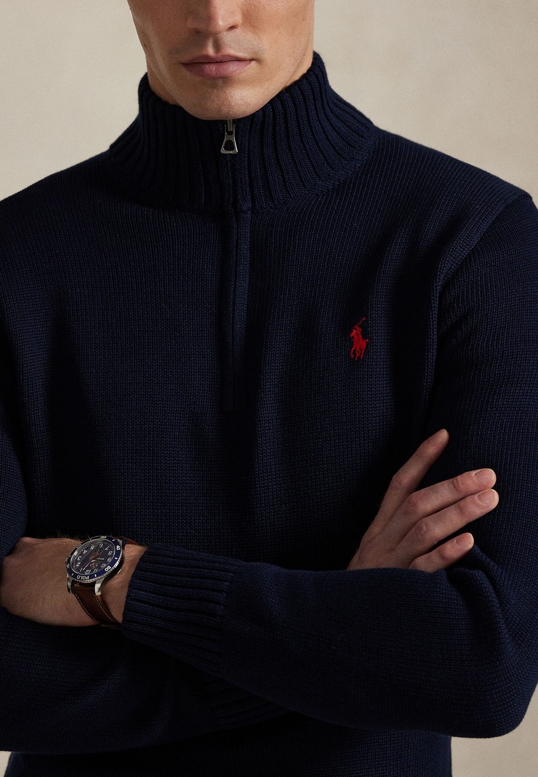 COTTON QUARTER-ZIP MOCKNECK SWEATER – Jumper – hunter navy