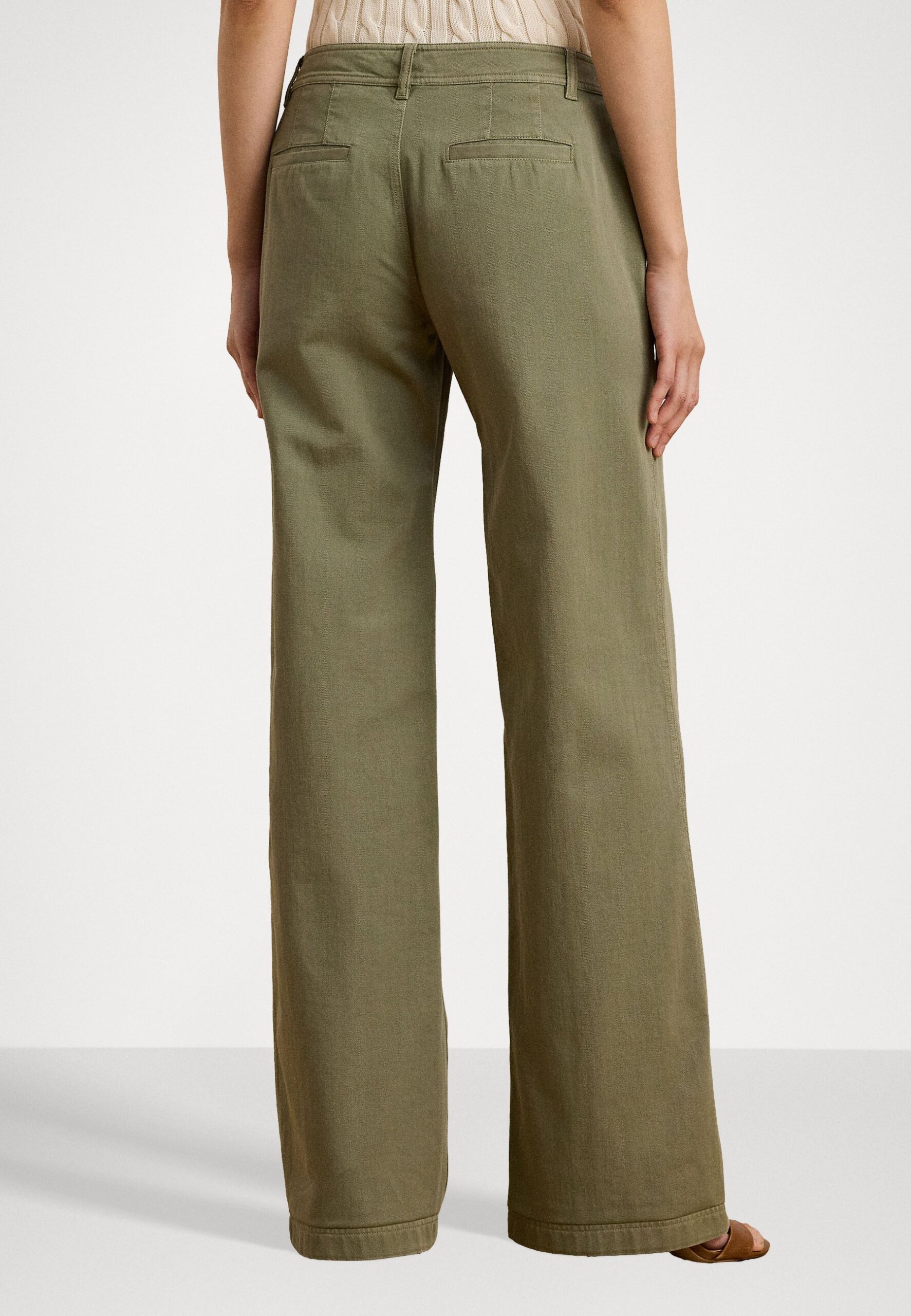 COTTON TWILL WIDE LEG PANT – Trousers – sage green