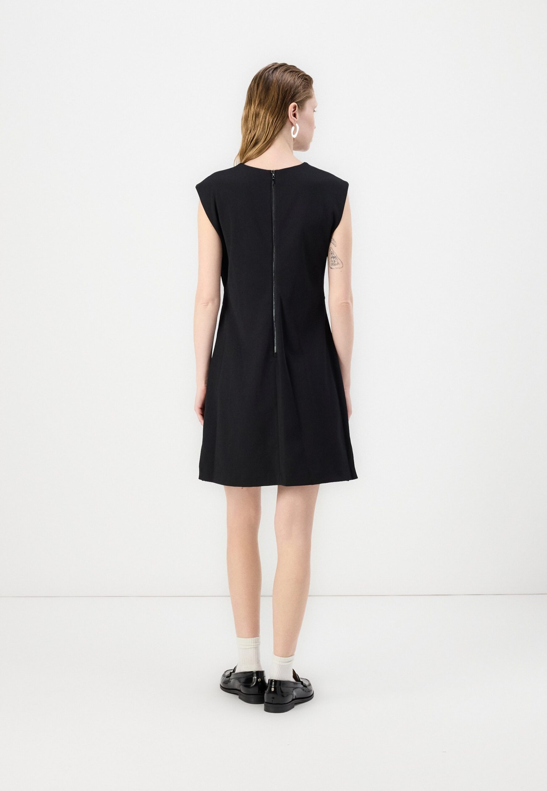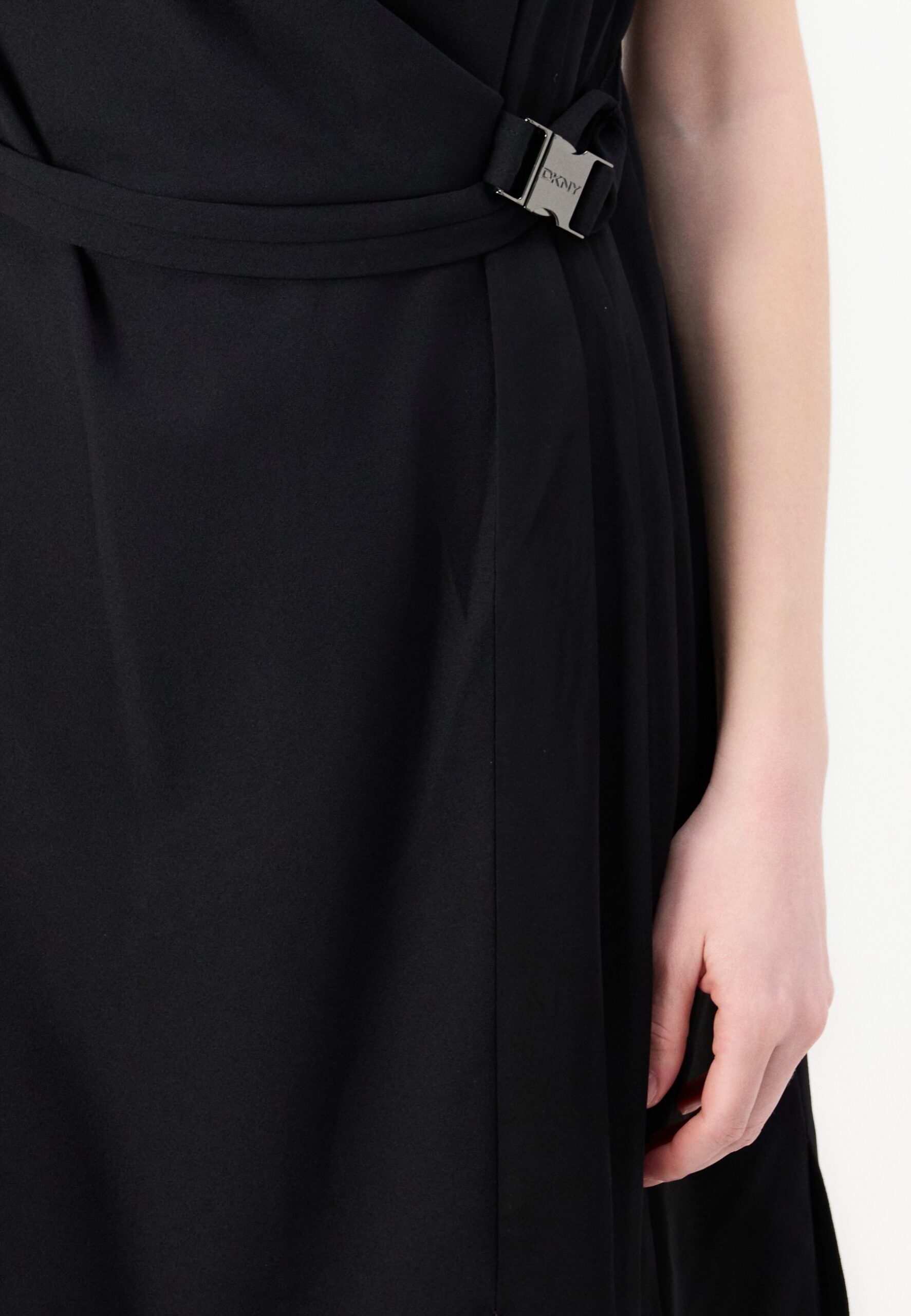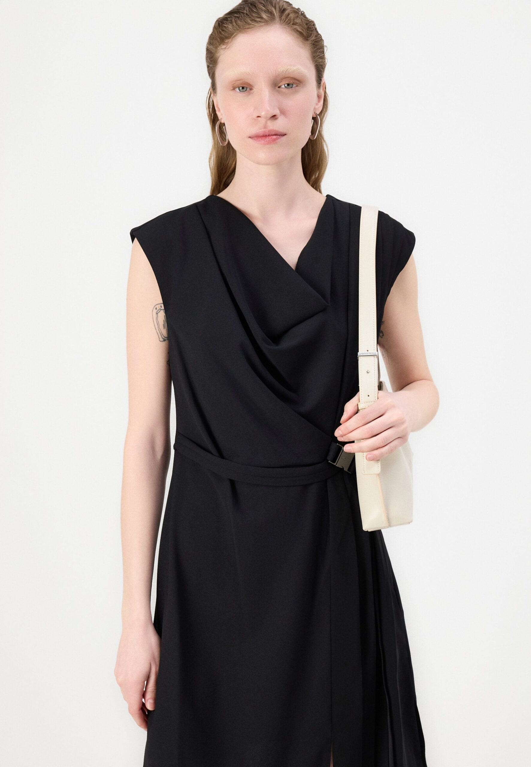 COWL NECK DRESS WITH PLEATS AND FAUX WRAP – Cocktail dress / Party dress – black/eggshell