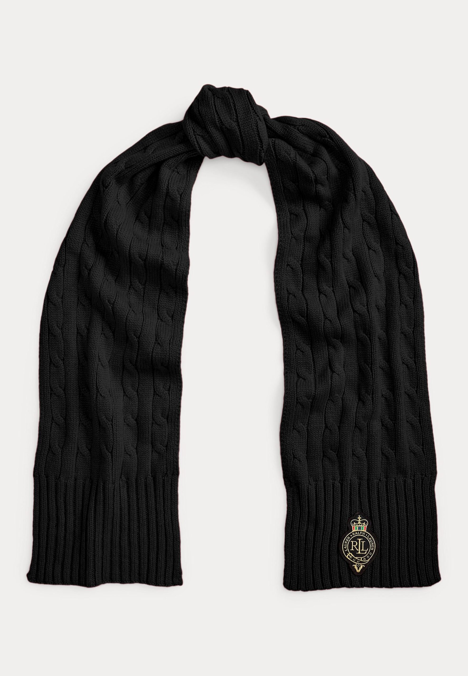 CREST PATCH CABLE KNIT SCARF – Scarf – black
