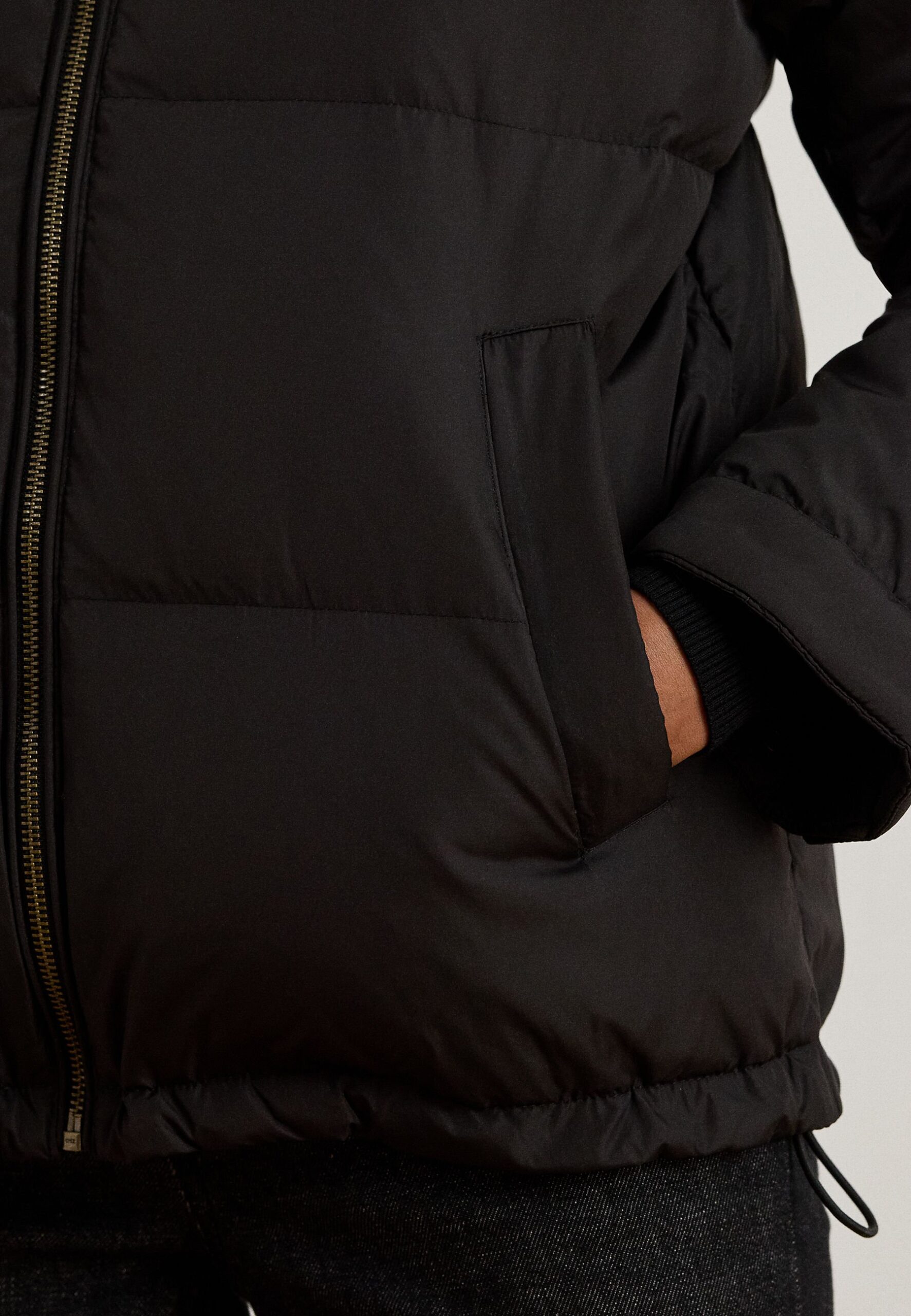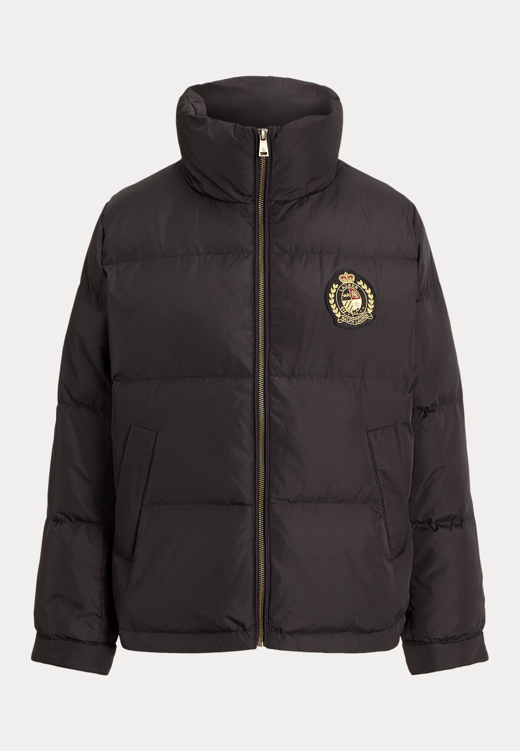 CREST-PATCH QUILTED FUNNELNECK DOWN COAT – Down jacket – black