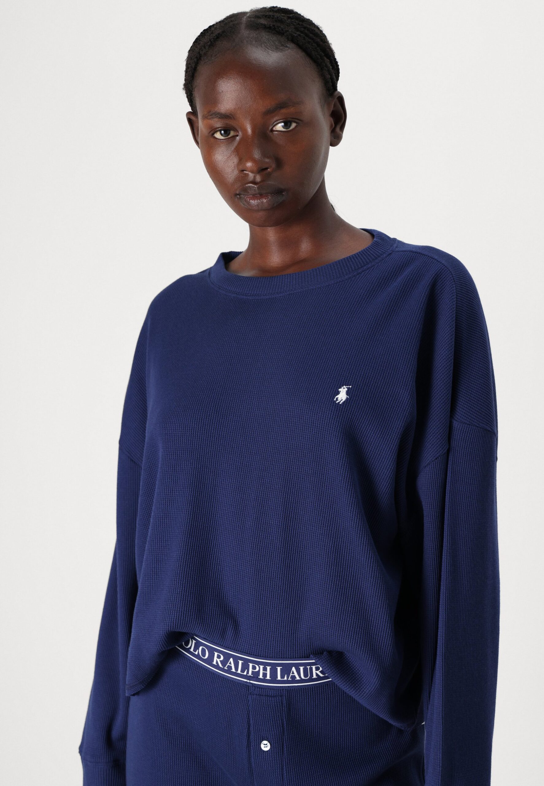 CREW NECK AND WIDE LEG PANT SET – Pyjamas – navy