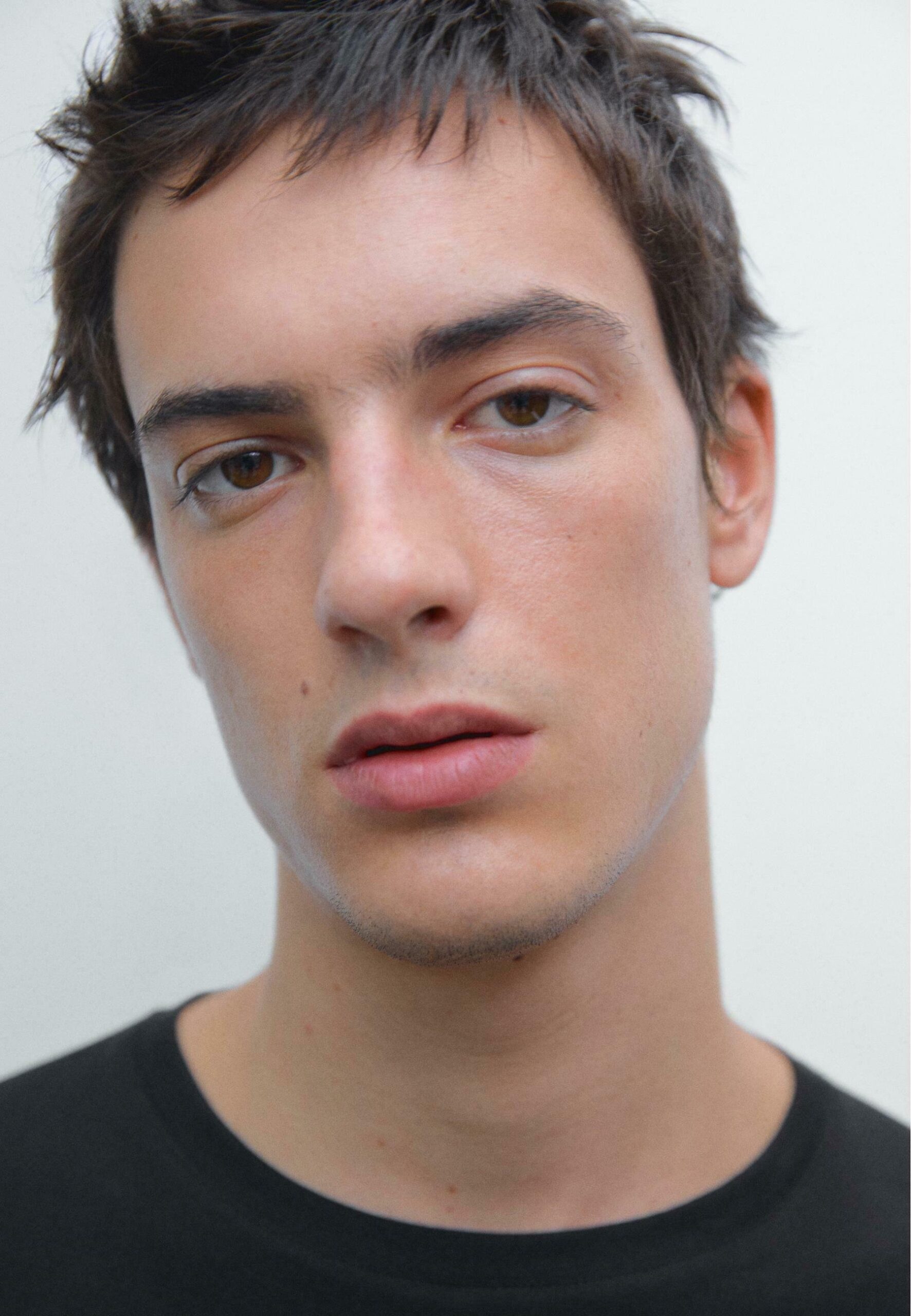 CREW NECK WITH RIBBED TRIMS – Basic T-shirt – black