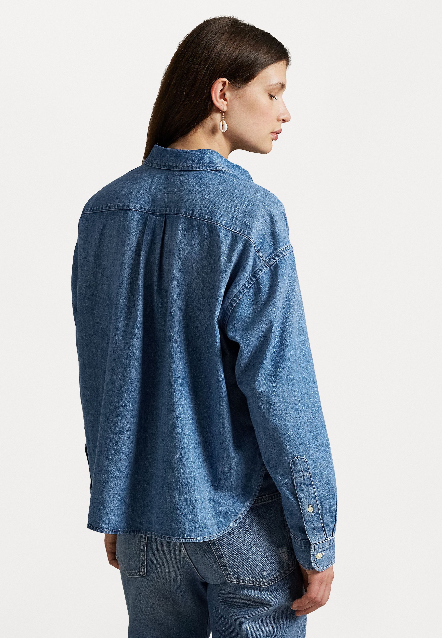 CROPPED BOXY DENIM SHIRT – Button-down blouse – zaia wash