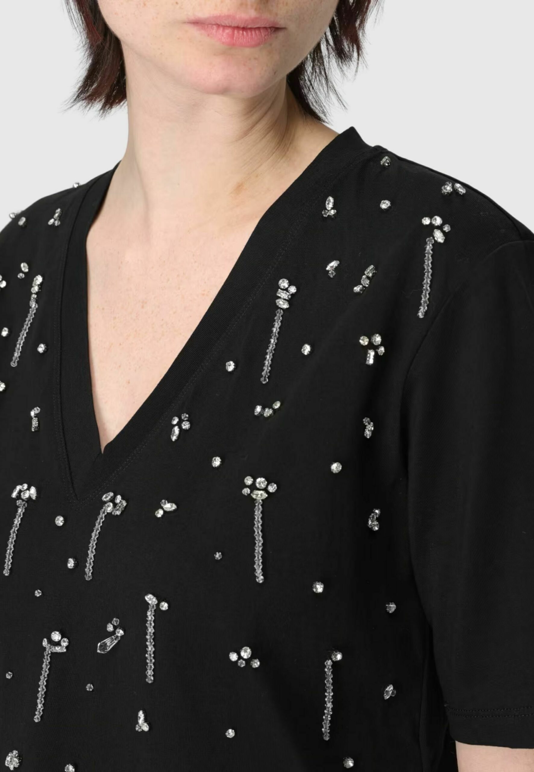 CROPPED CON RICAMI – Print T-shirt – nero