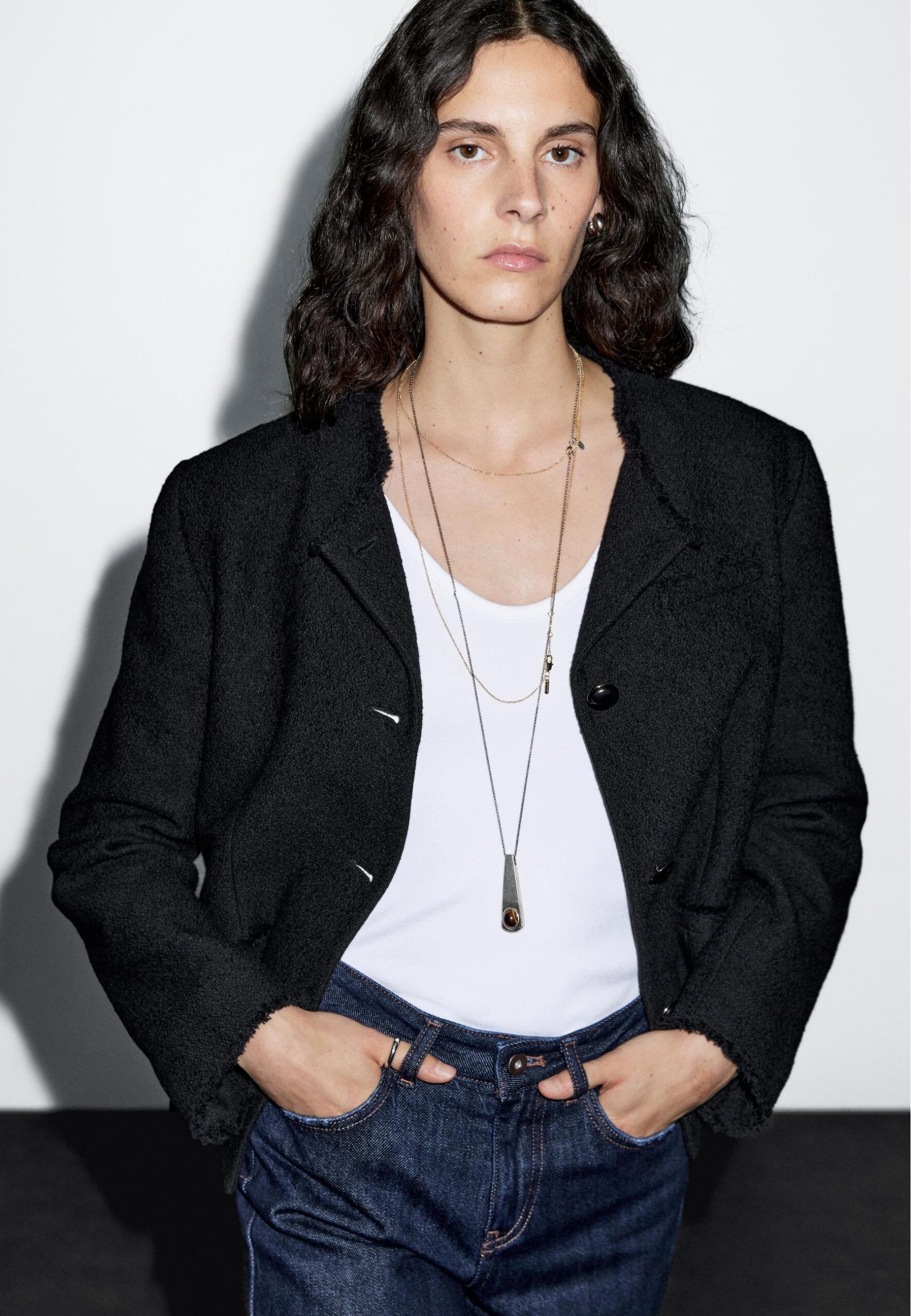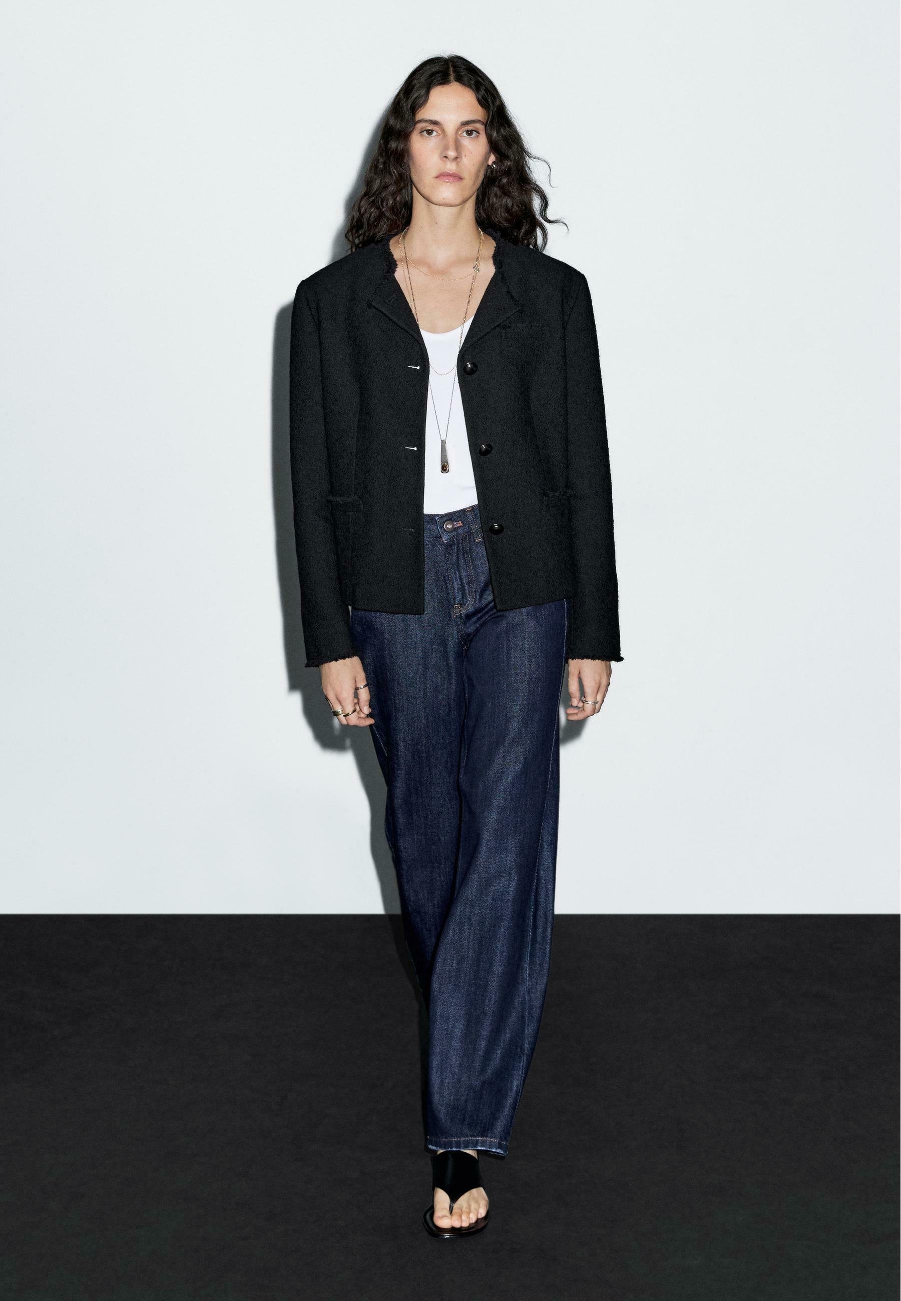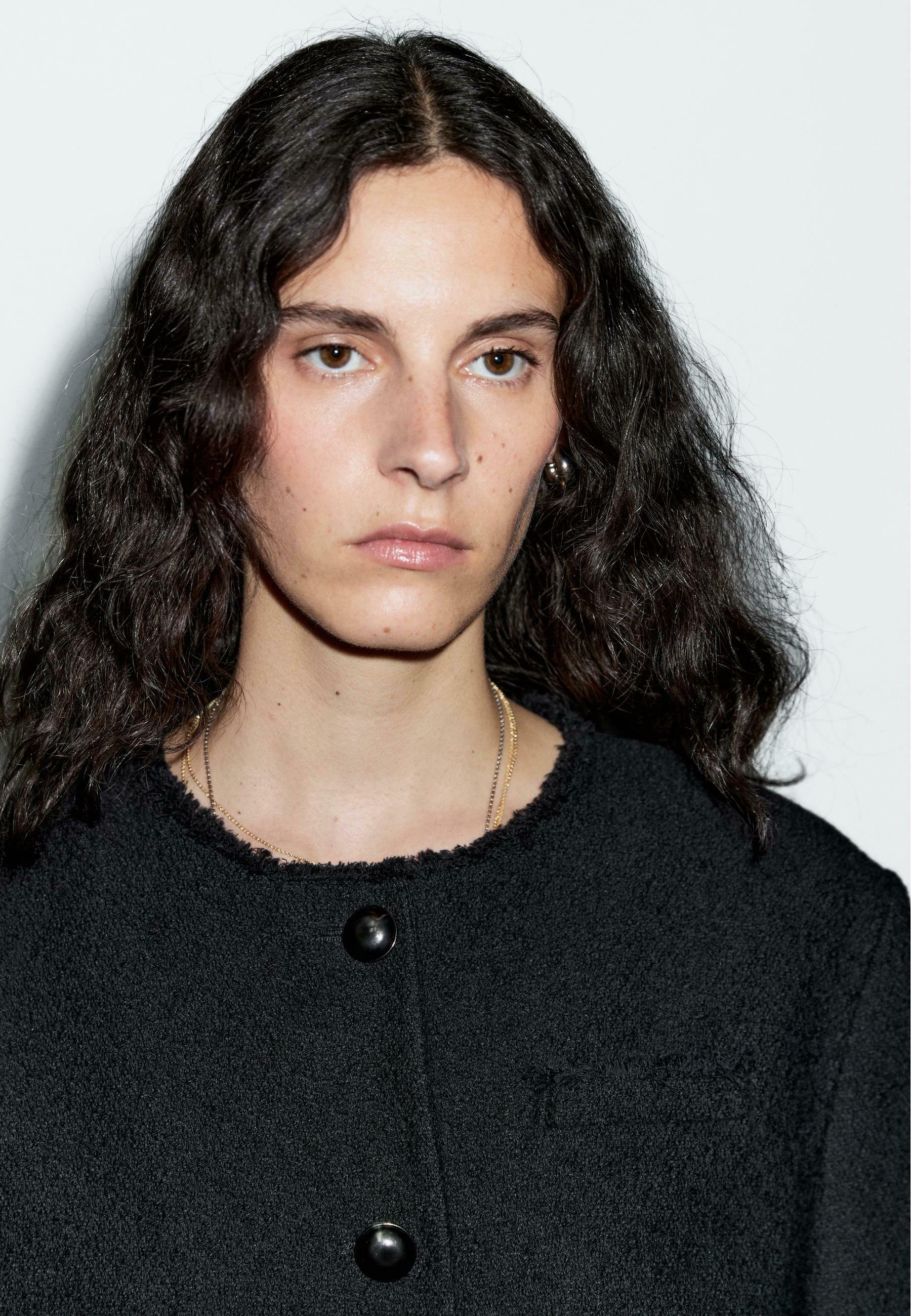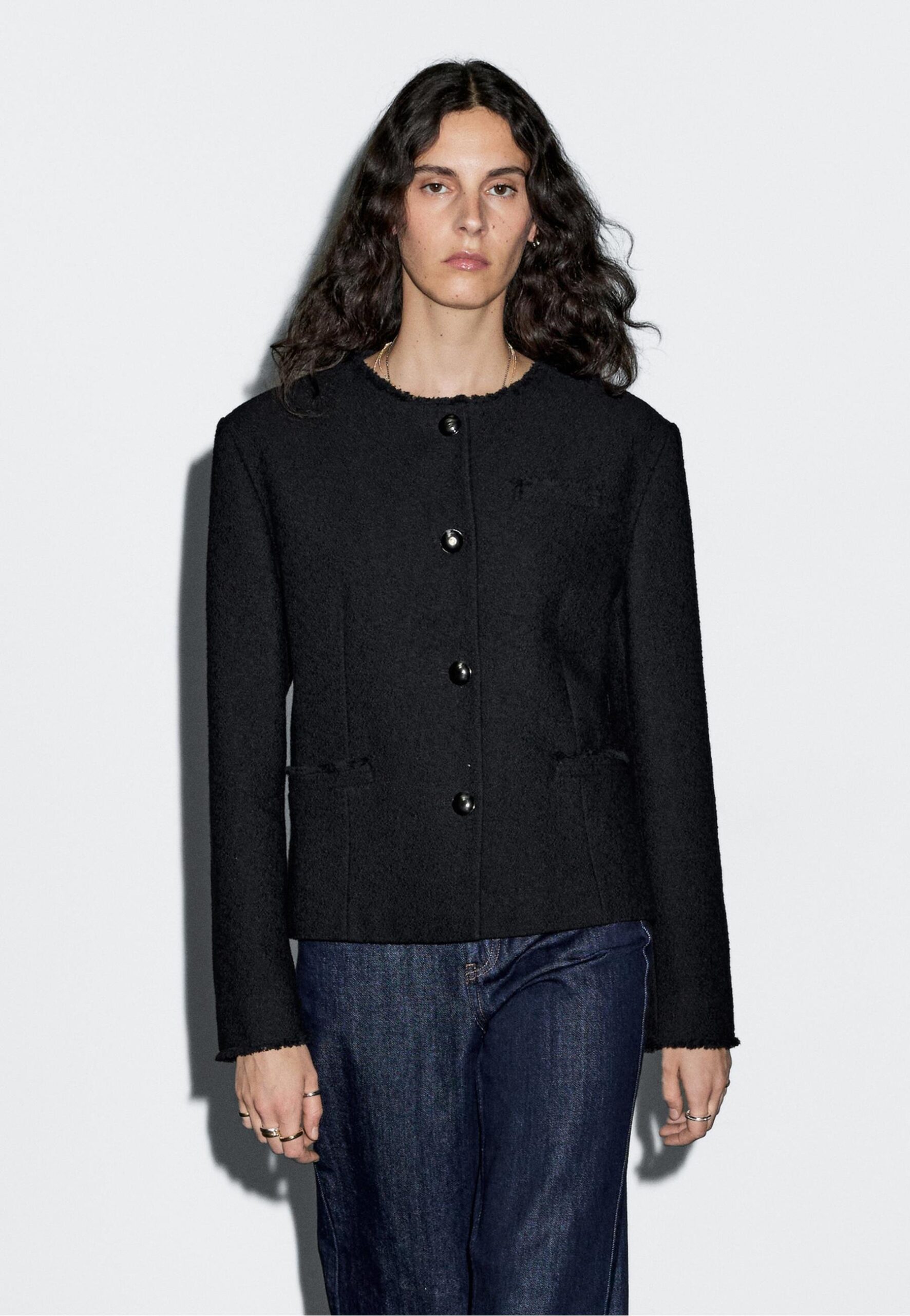 CROPPED CREW NECK WITH POCKETS – Light jacket – black