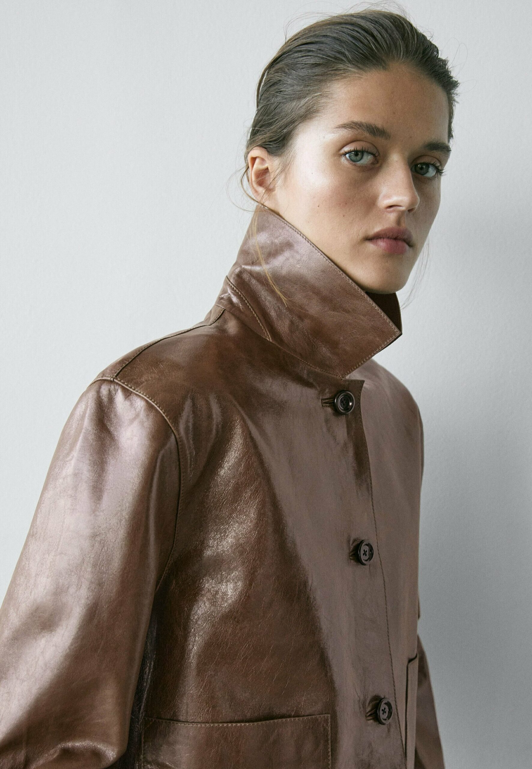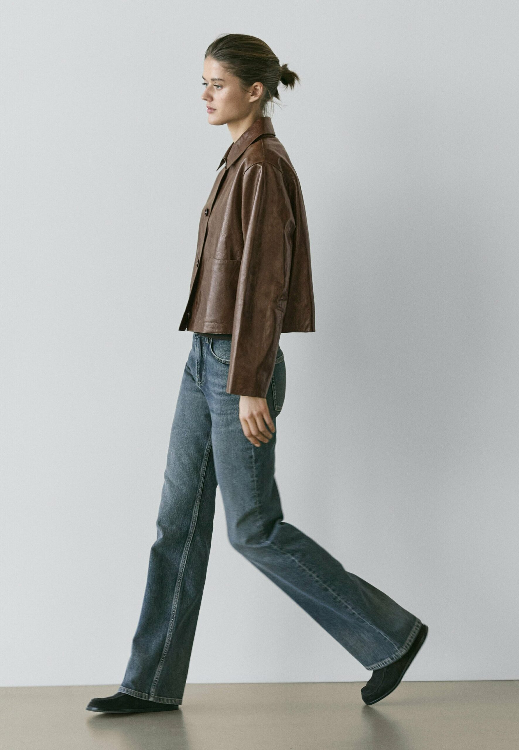 CROPPED – Leather jacket – mottled brown