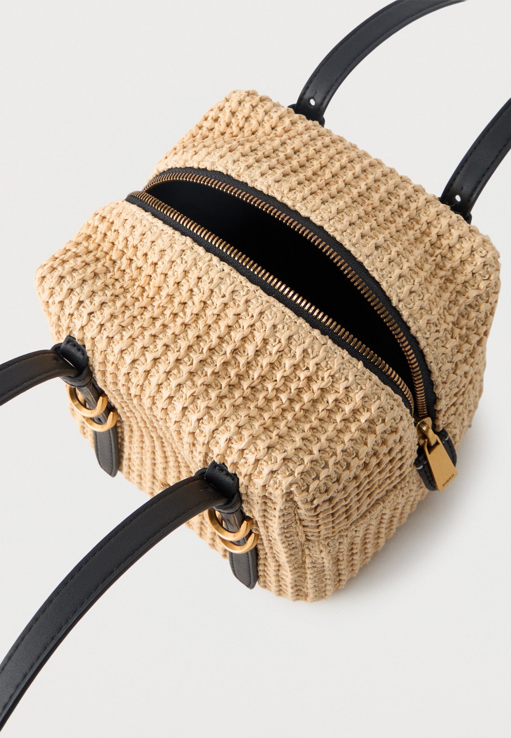 CUBIC BAG – Handbag – rafia/nero/antique gold-coloured