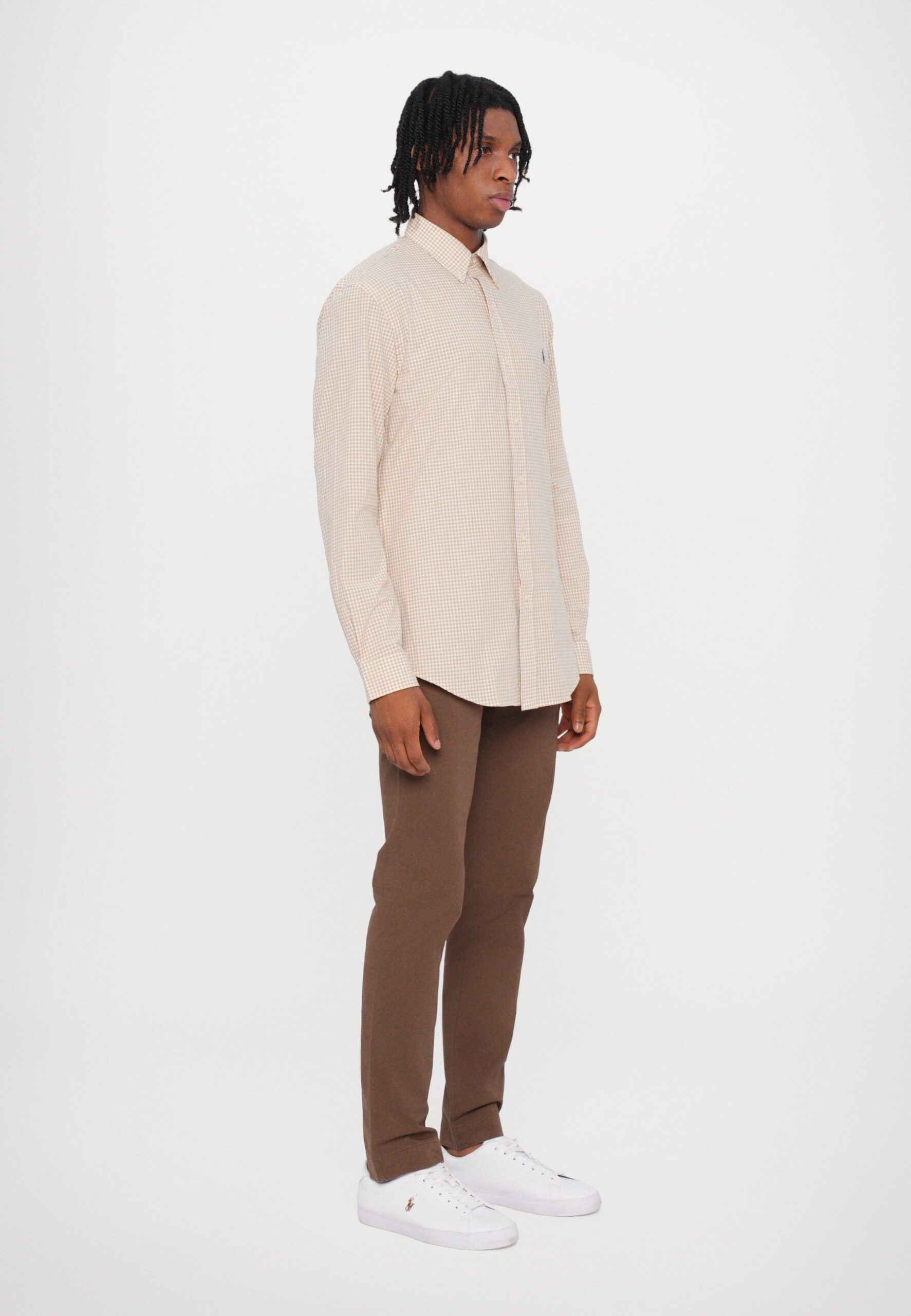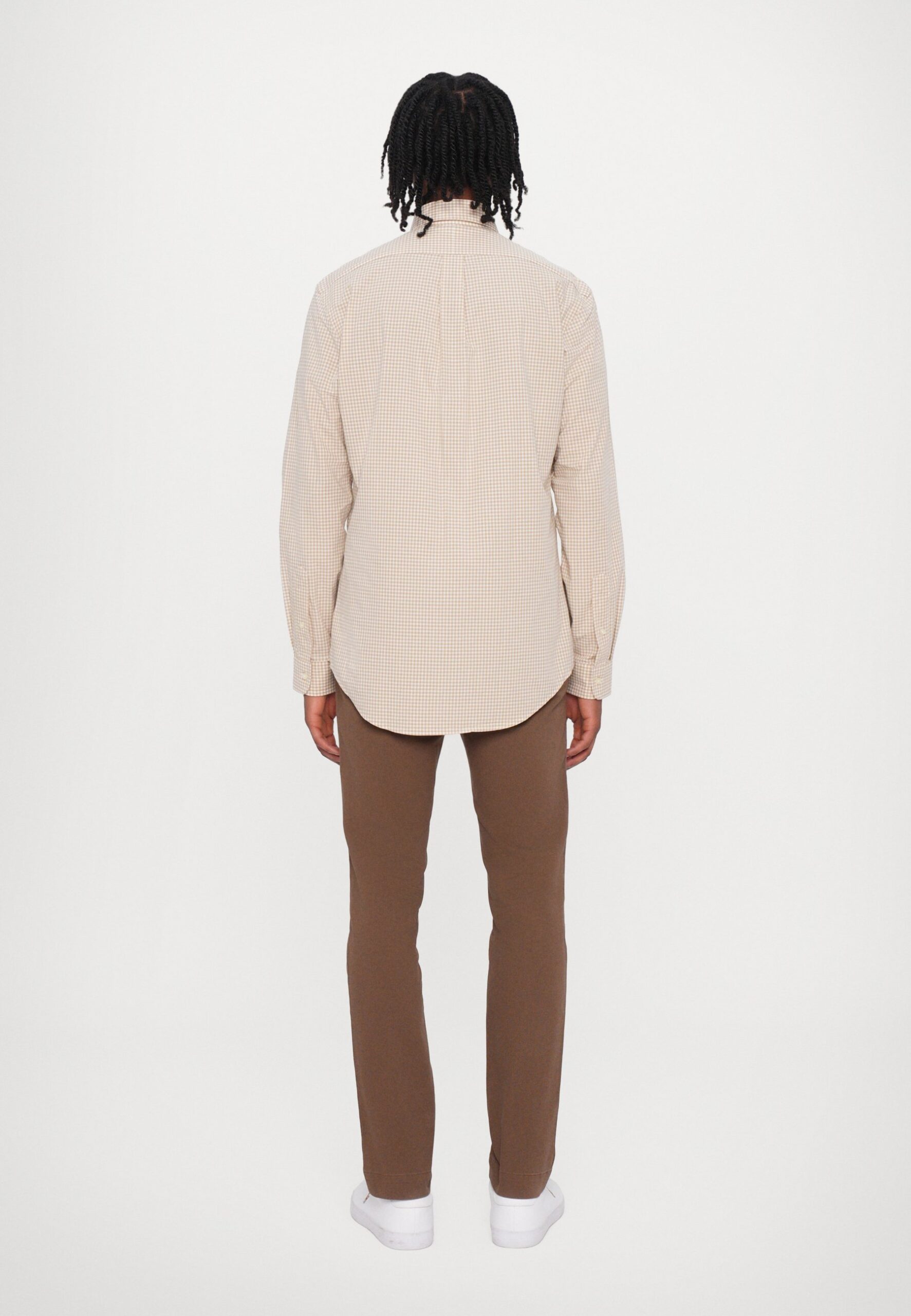 CUSTOM FIT GINGHAM STRETCH POPLIN SHIRT – Shirt – coastal beige/white