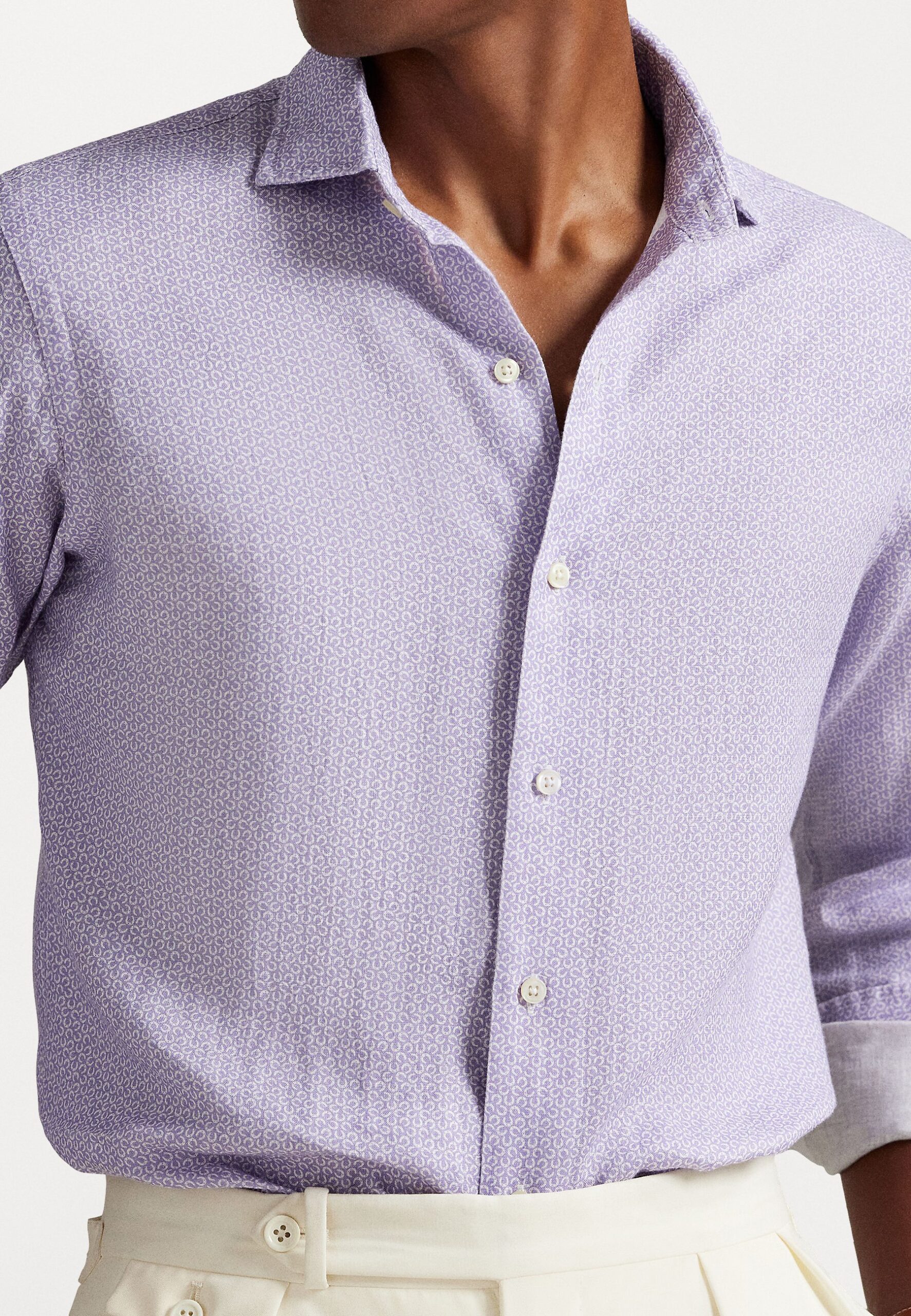 CUSTOM FIT HORSESHOE-PRINT LINEN SHIRT – Shirt – purple